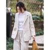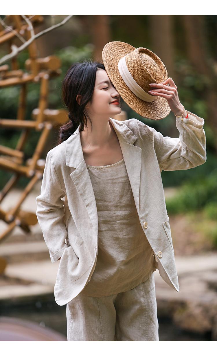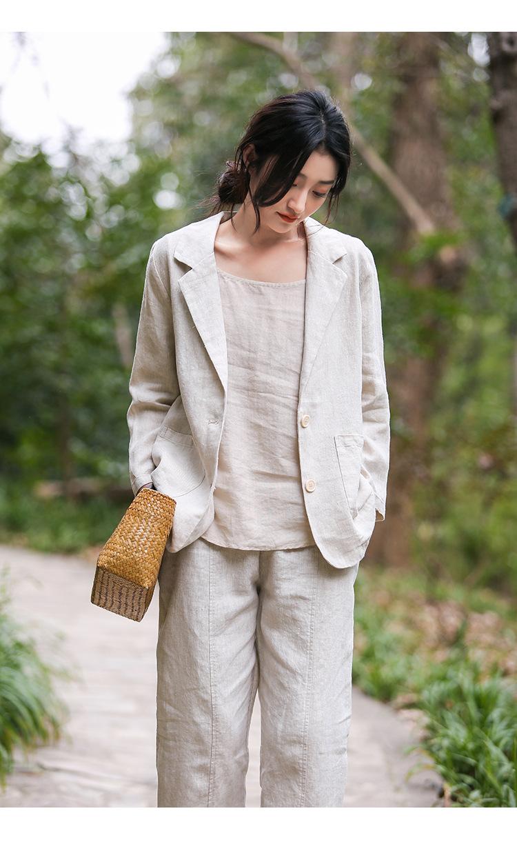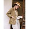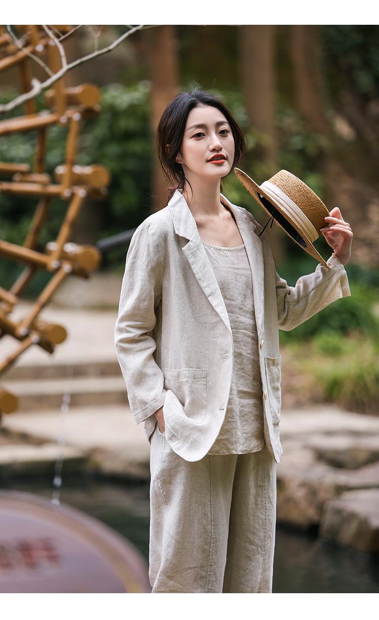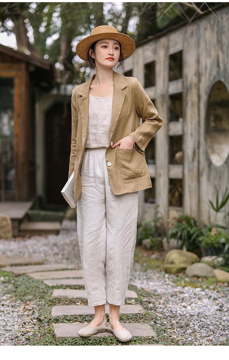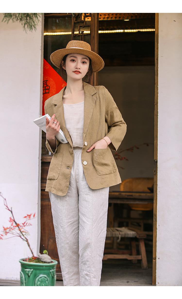 Algodón y Lino Chaqueta de Traje Pequeña de un Solo Botón para Mujer Otoño 2025 Nueva Artística Top Suelto Traje de Lino Chino de Manga Larga
