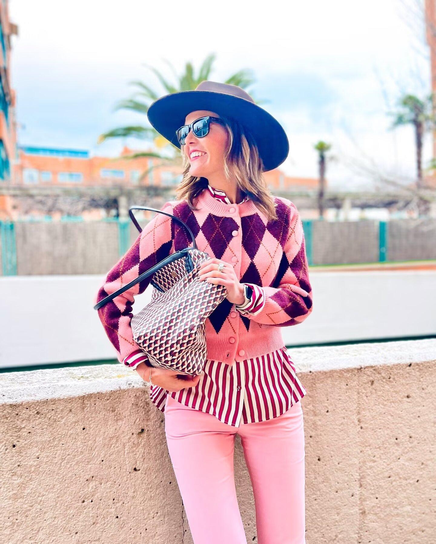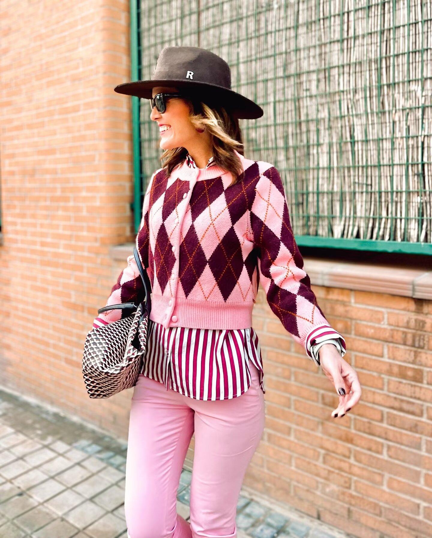 Cárdigan Suéter Tejido Jacquard Diamante de Moda Ins para Mujer Europeo y Americano Transfronterizo Primavera Cuello Redondo Manga Larga Abrigo Corto
