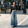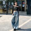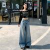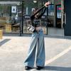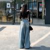 Jeans Azules de Pierna Ancha para Mujer Primavera Nuevo Cintura Alta Holgados Corte Slim Look Estilo Americano Retro Pantalones Rectos