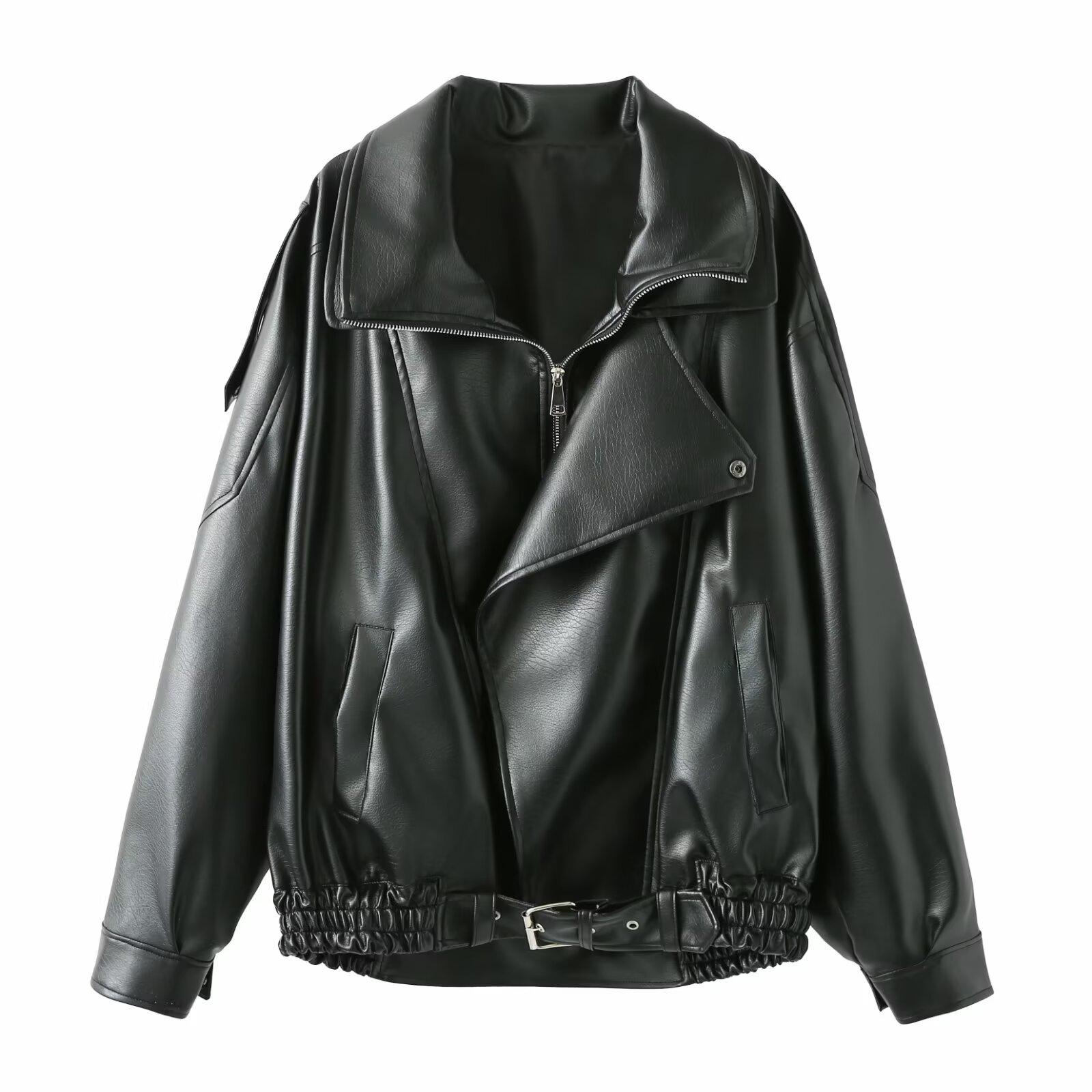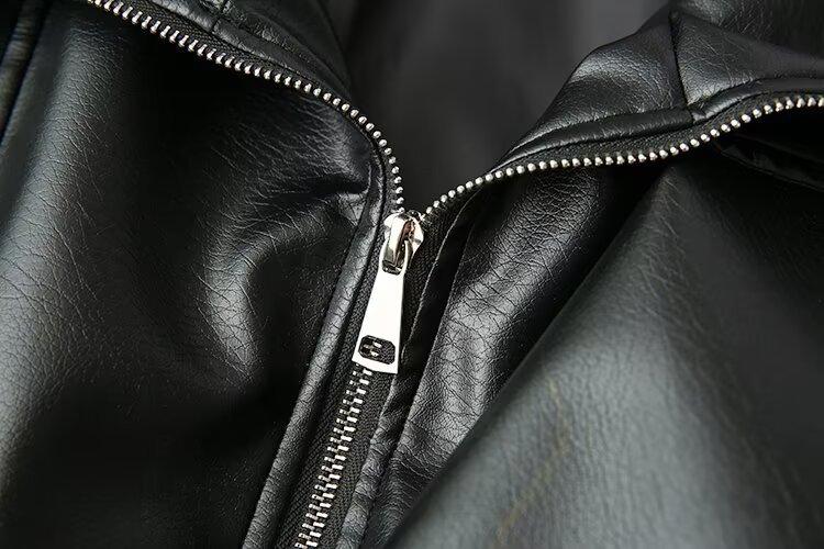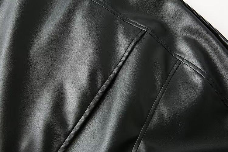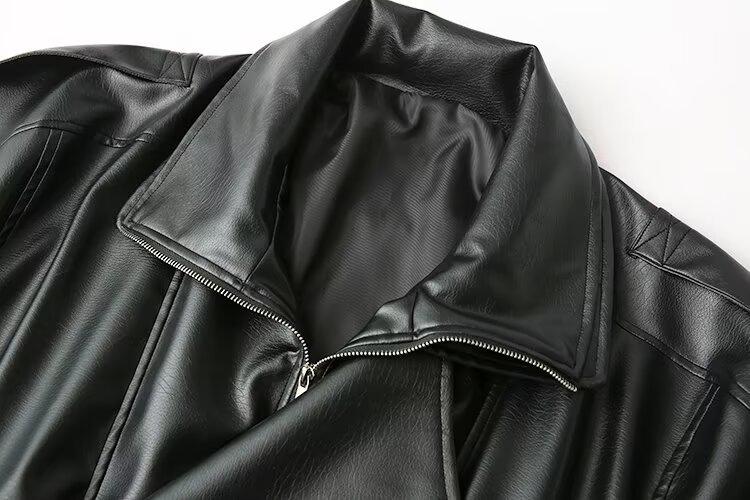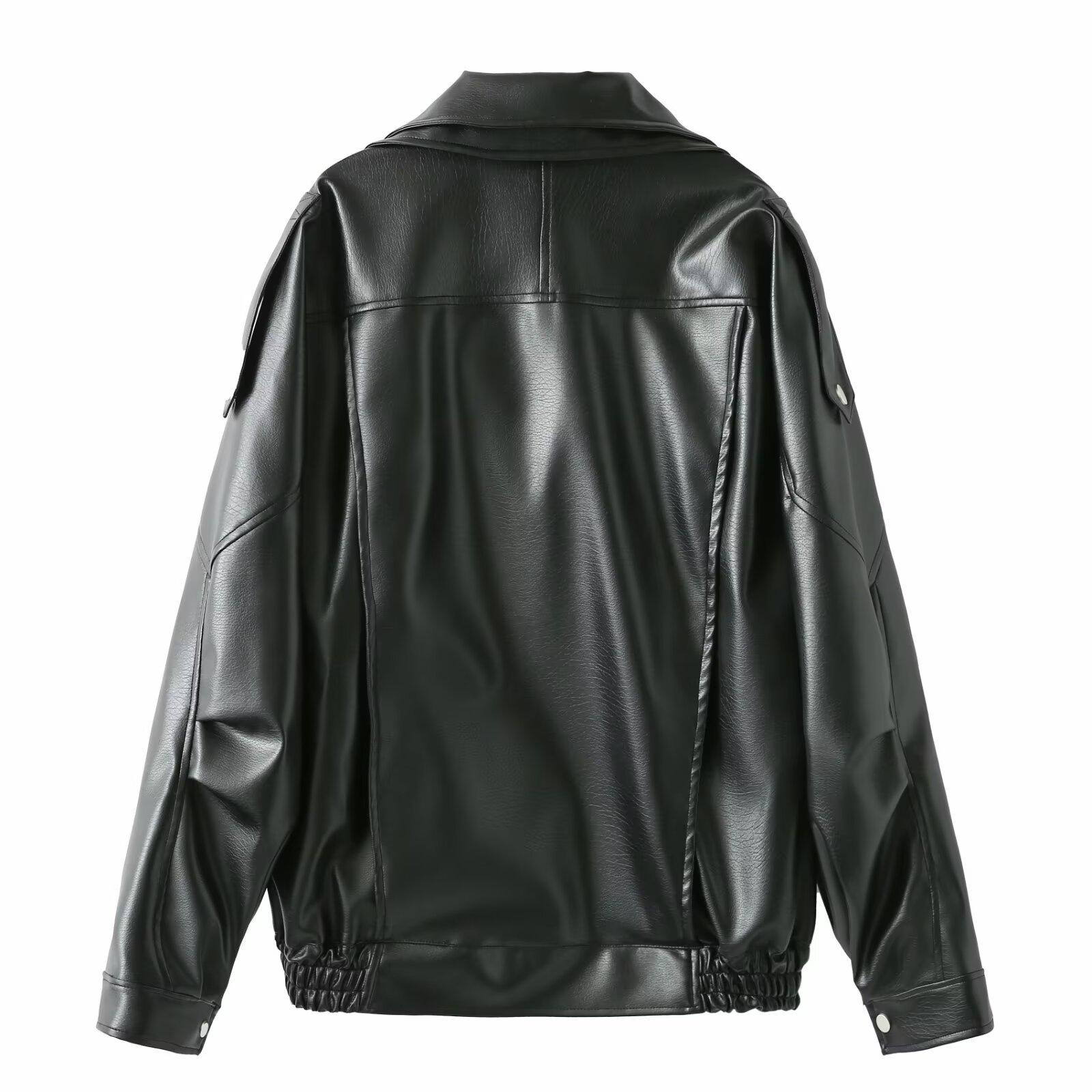 2024 Nueva Ropa de Invierno para Mujer Estilo Europeo y Americano Moda Versátil Holgada Chaqueta de Cuero de Manga Larga