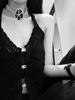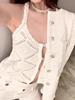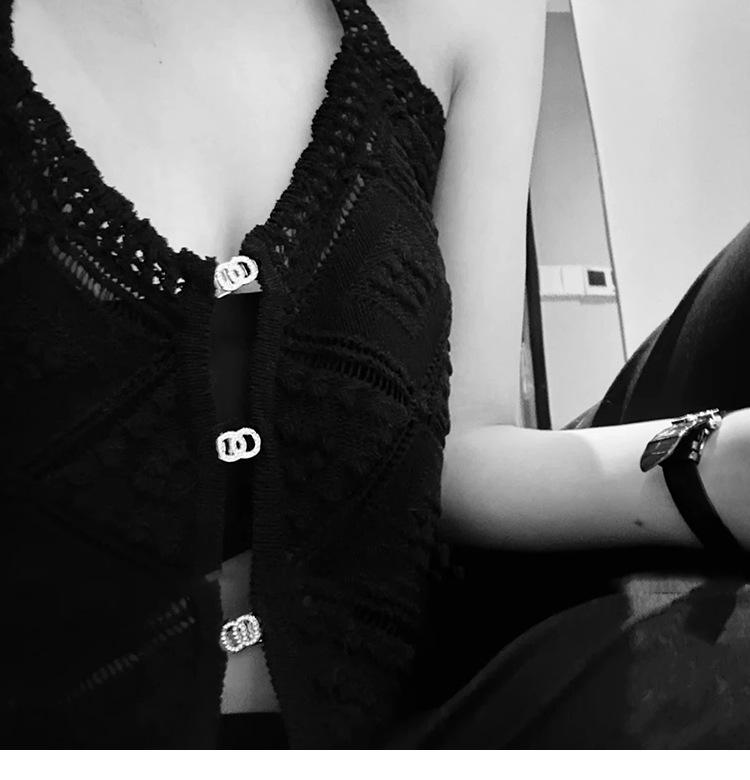 El cuello no usa botones ordinarios sino que se conecta con hebillas de diamante con sentido del diseño.
