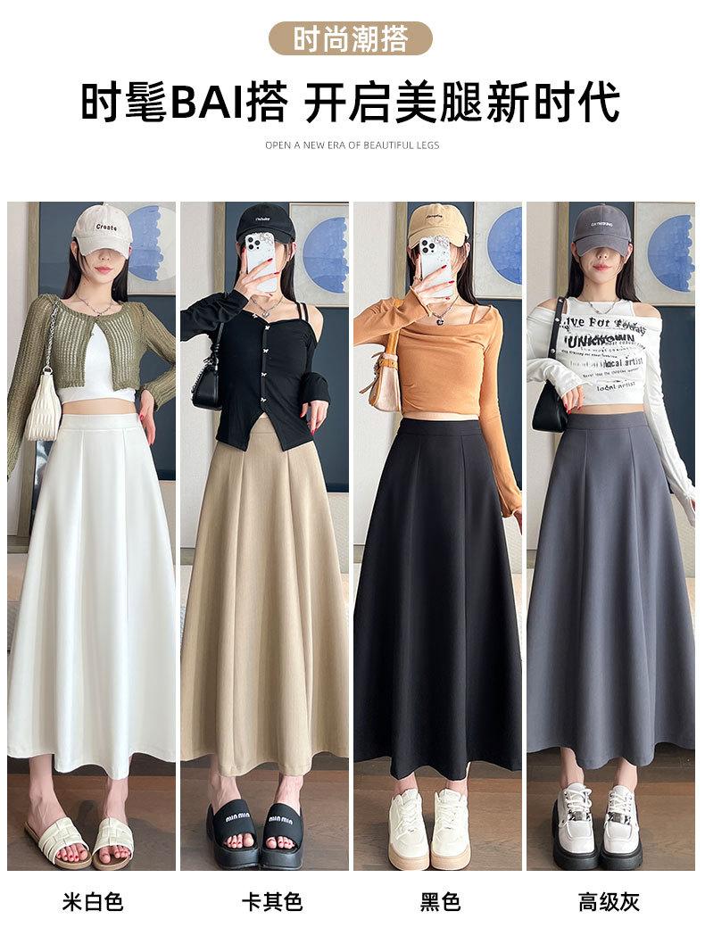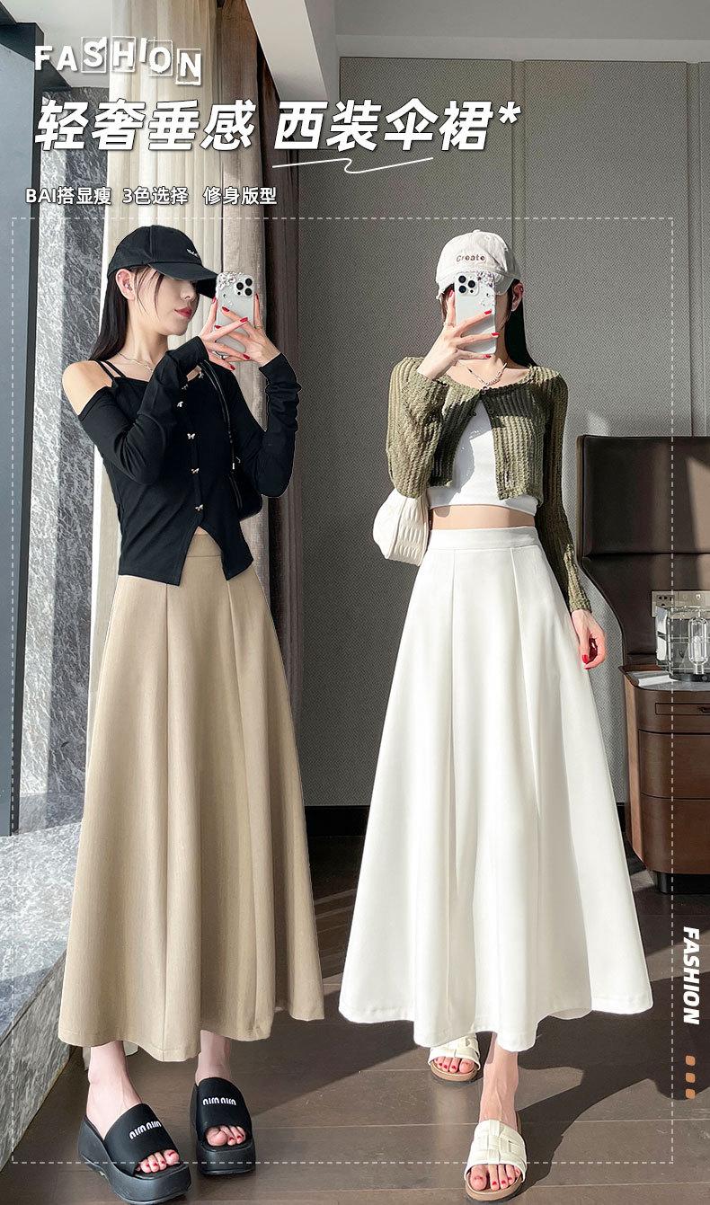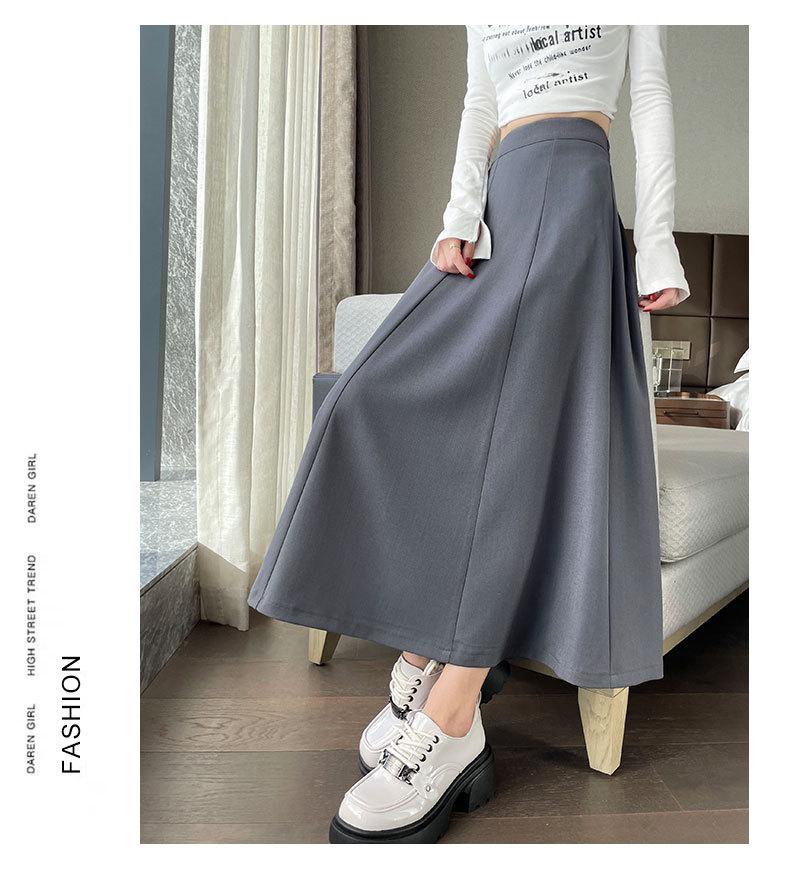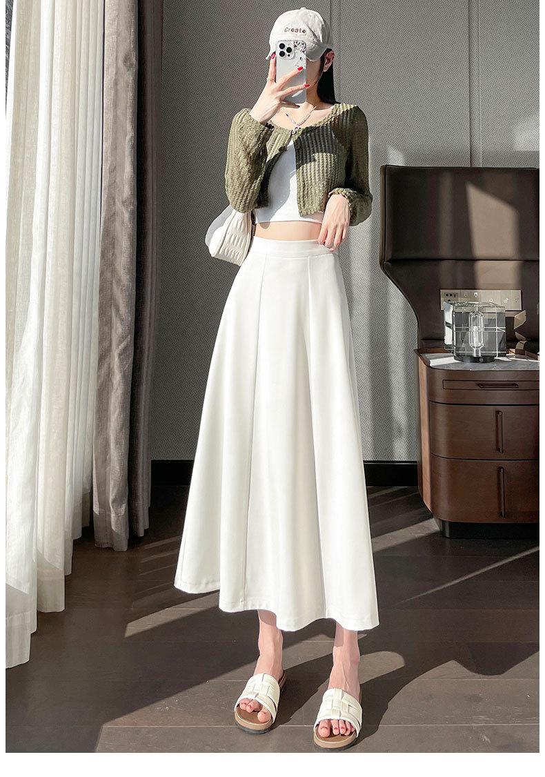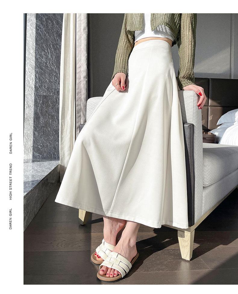 Falda Paraguas Acampanada de Línea A Blanca de Moda Adelgazante de Cintura Alta para Mujer Otoño Nuevo A3062