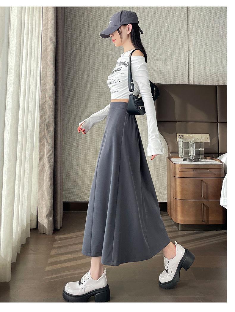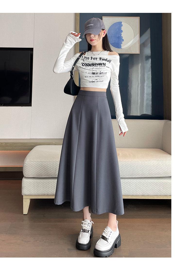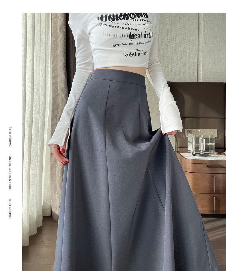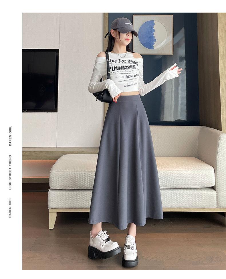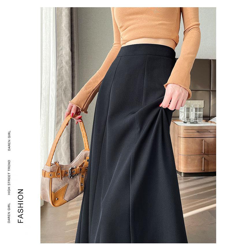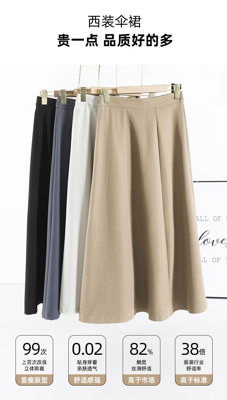 Falda Paraguas Acampanada de Línea A Blanca de Moda Adelgazante de Cintura Alta para Mujer Otoño Nuevo A3062