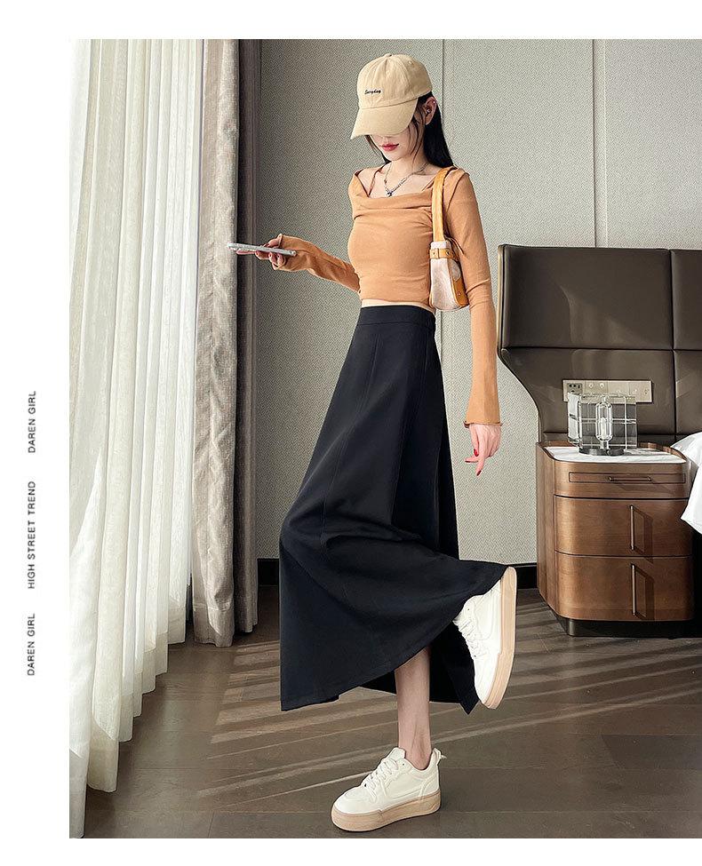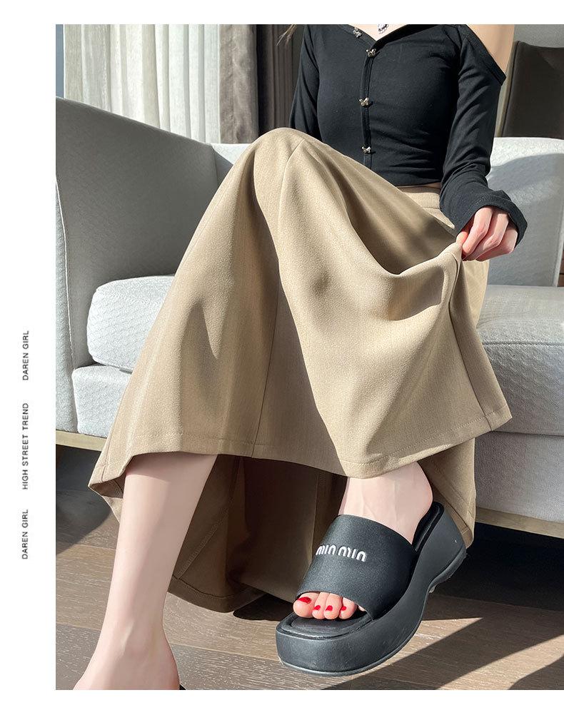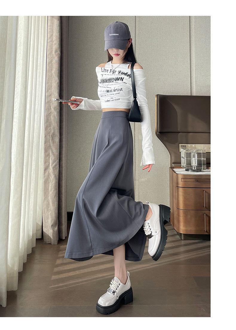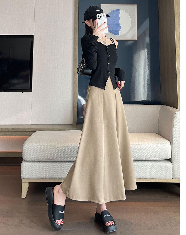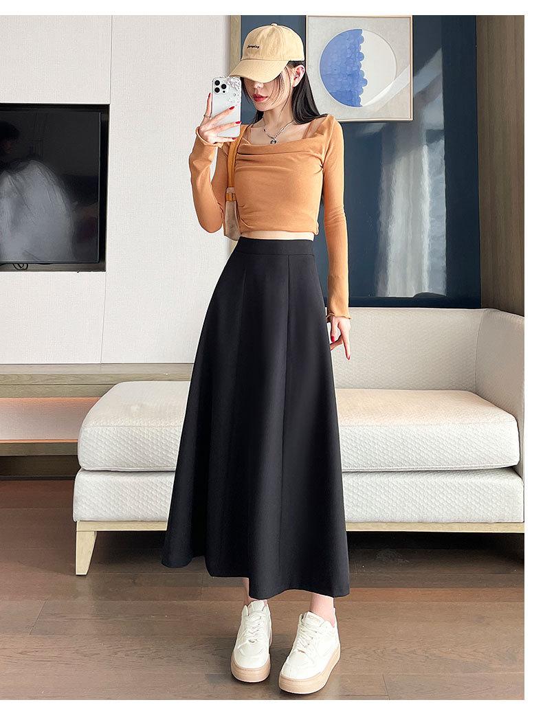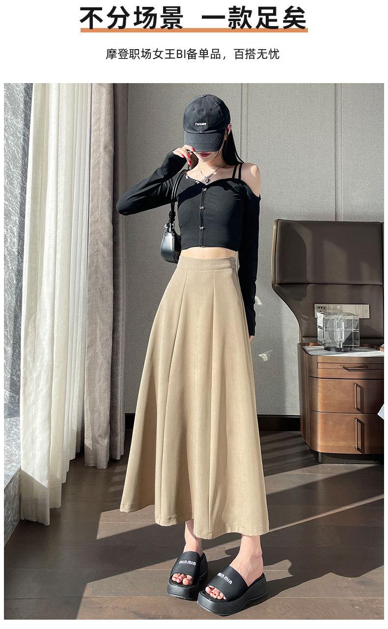 Falda Paraguas Acampanada de Línea A Blanca de Moda Adelgazante de Cintura Alta para Mujer Otoño Nuevo A3062