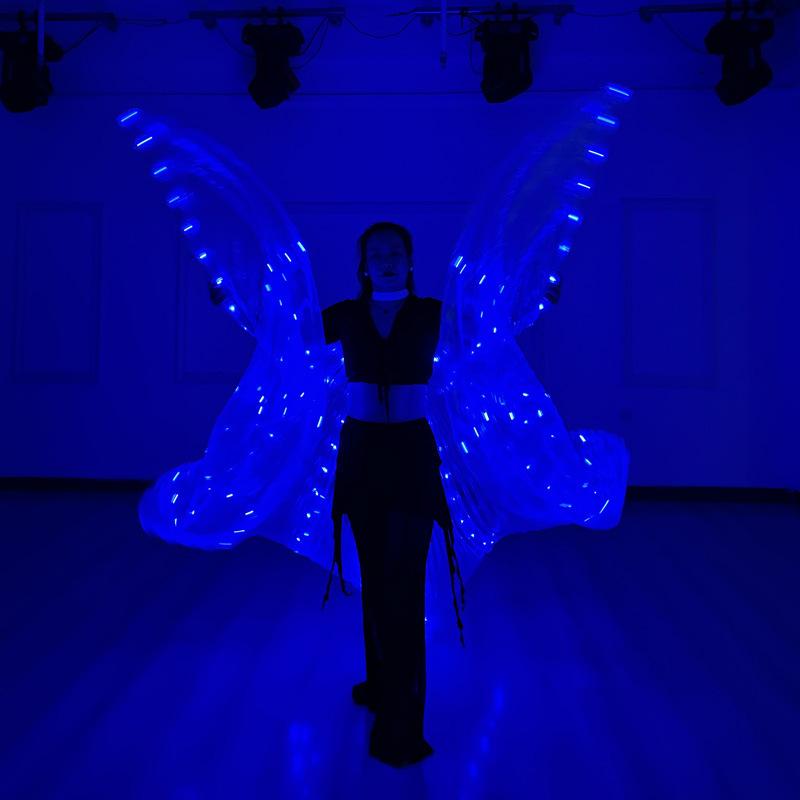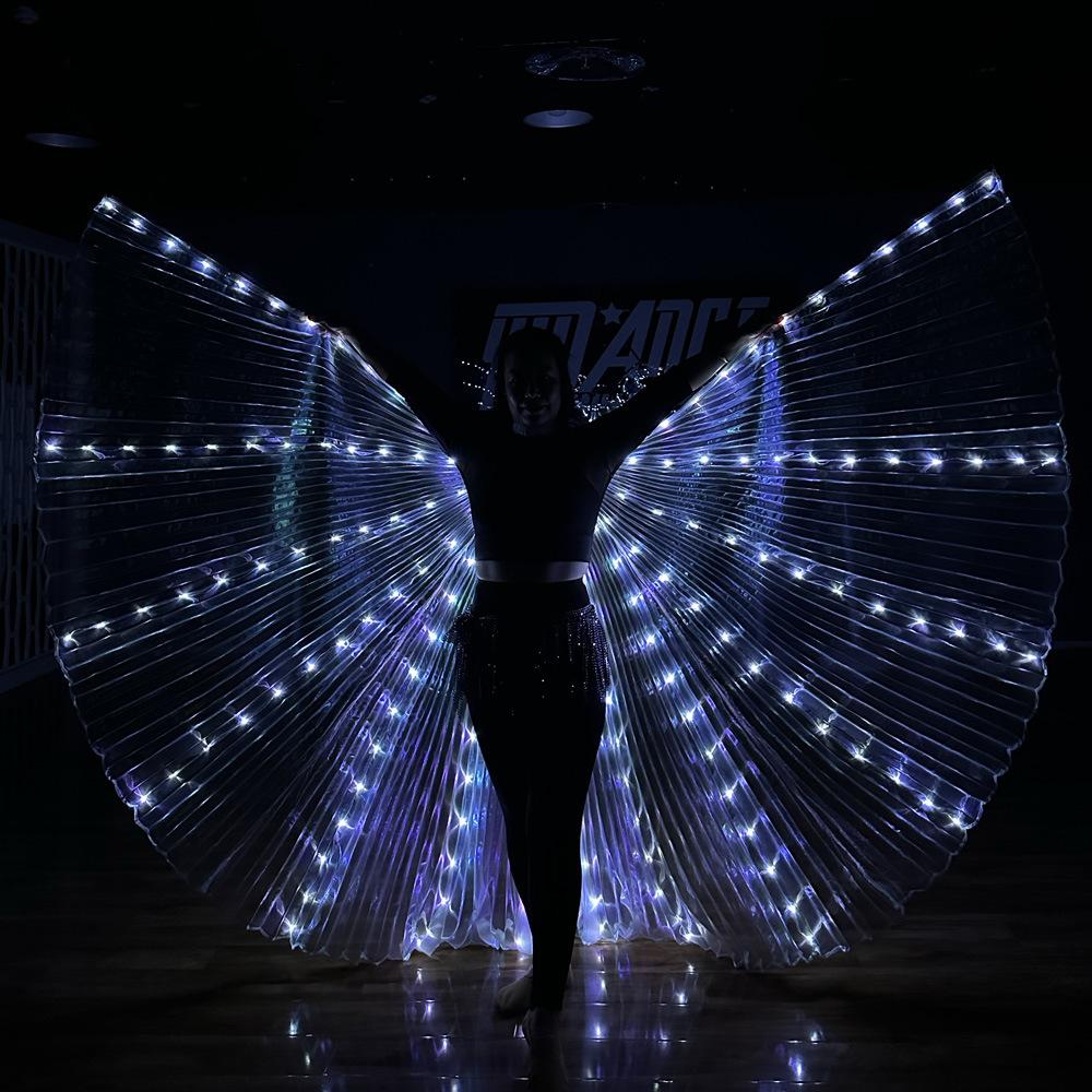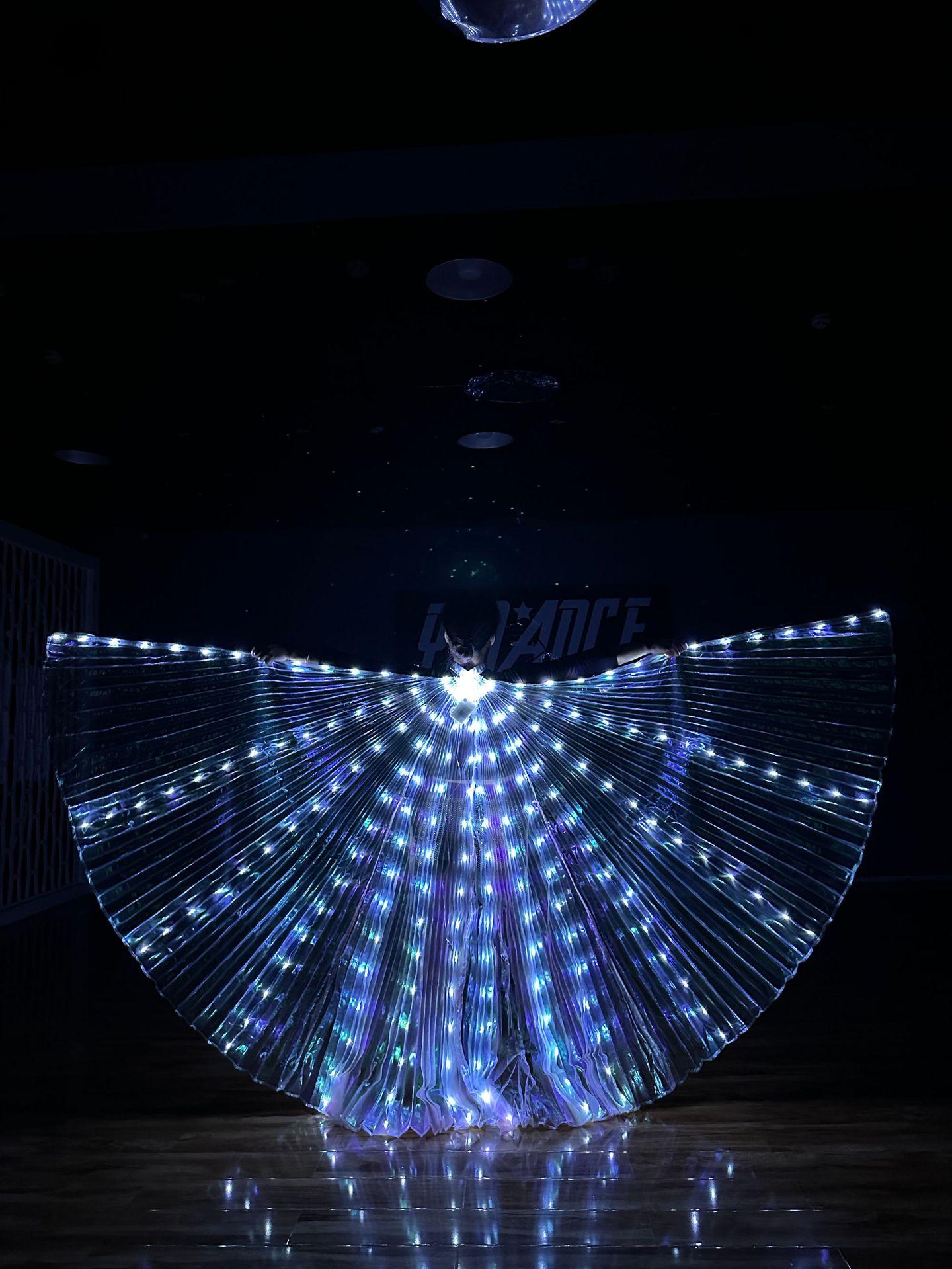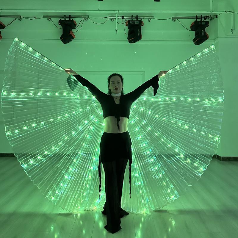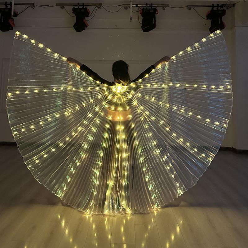 Nuevos Accesorios de Escenario para Danza del Vientre Alas de Mariposa Luminosas LED Capa de Alas Doradas Actuación Navideña Fluorescente Suministro del Fabricante