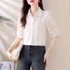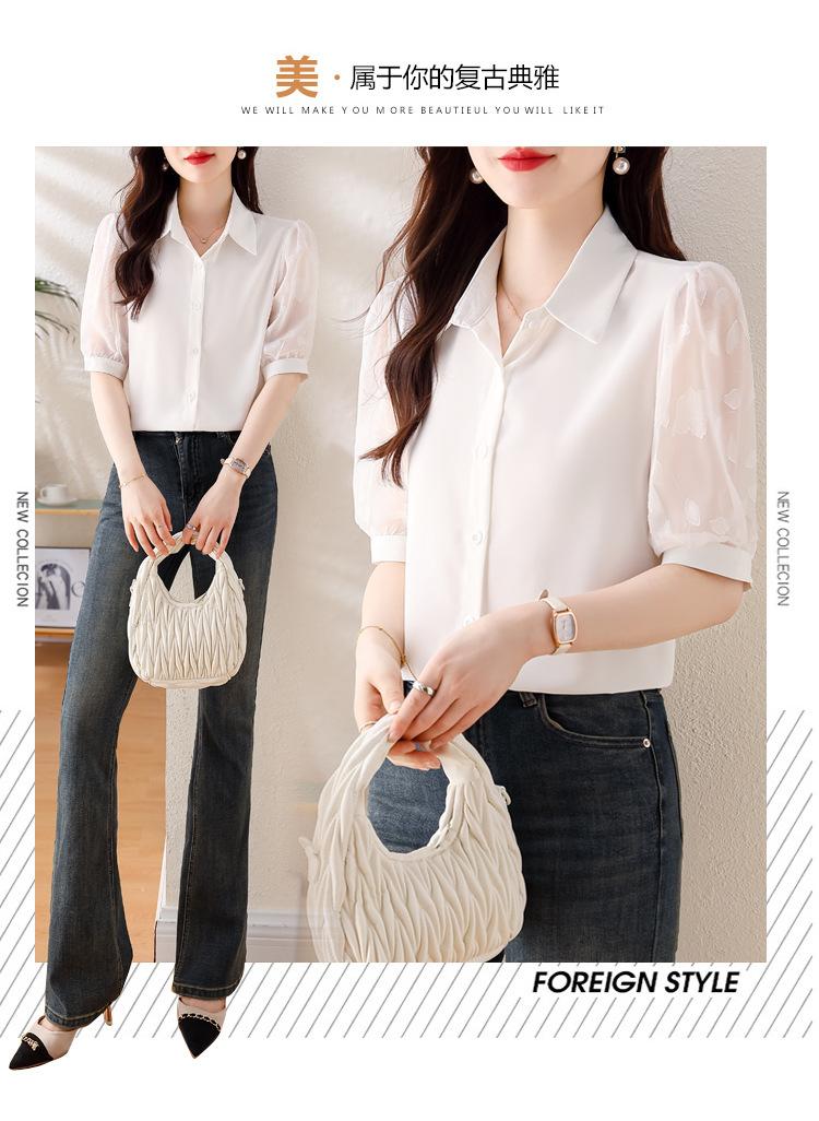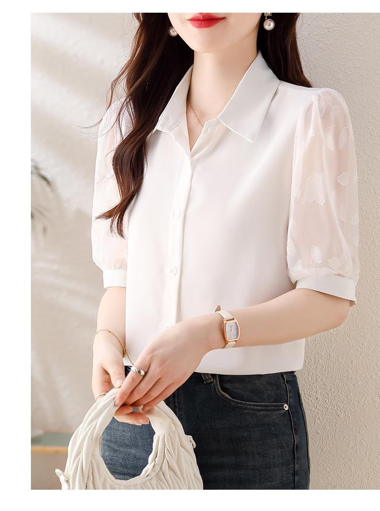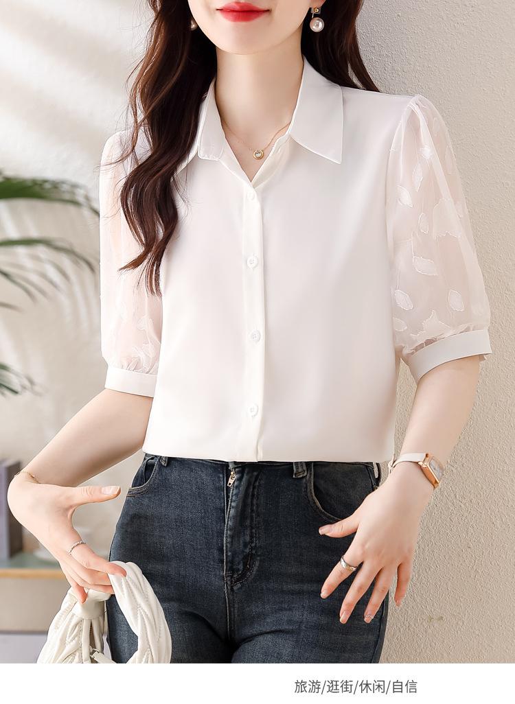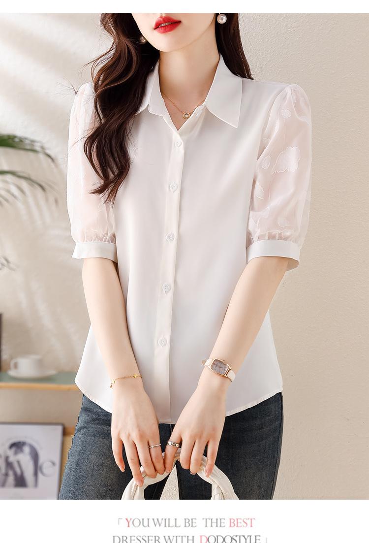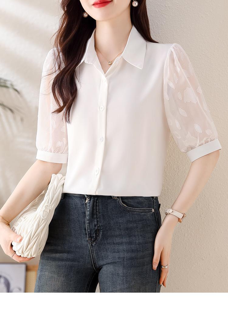 Camisa de Gasa Blanca para Mujer Manga Corta Verano 2025 Nueva Camisa Sensorial Profesional Sencilla Elegante Top