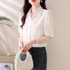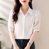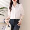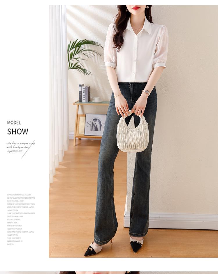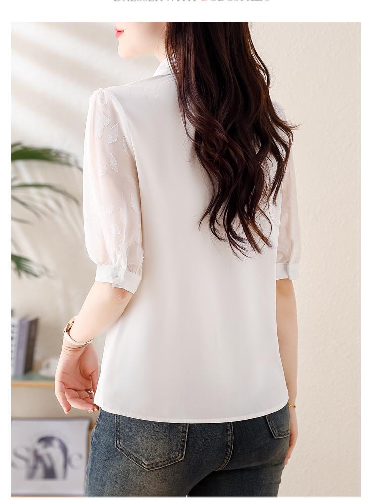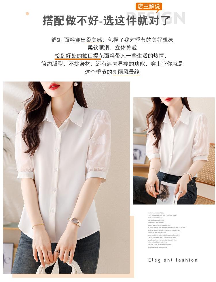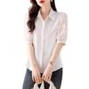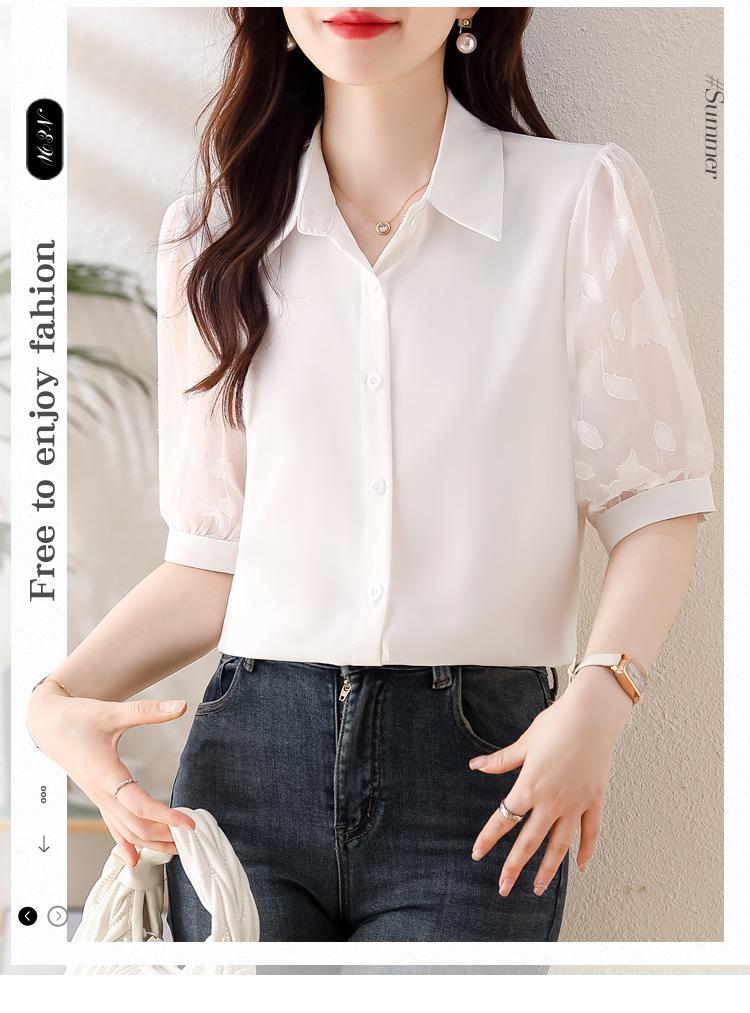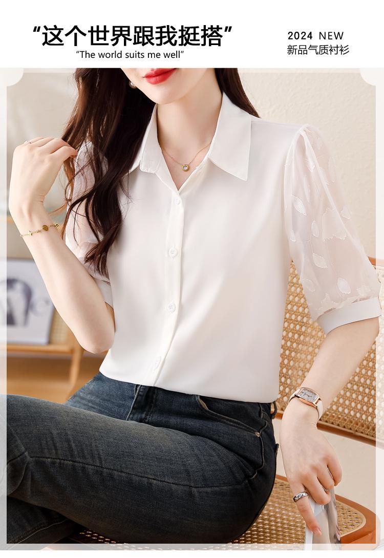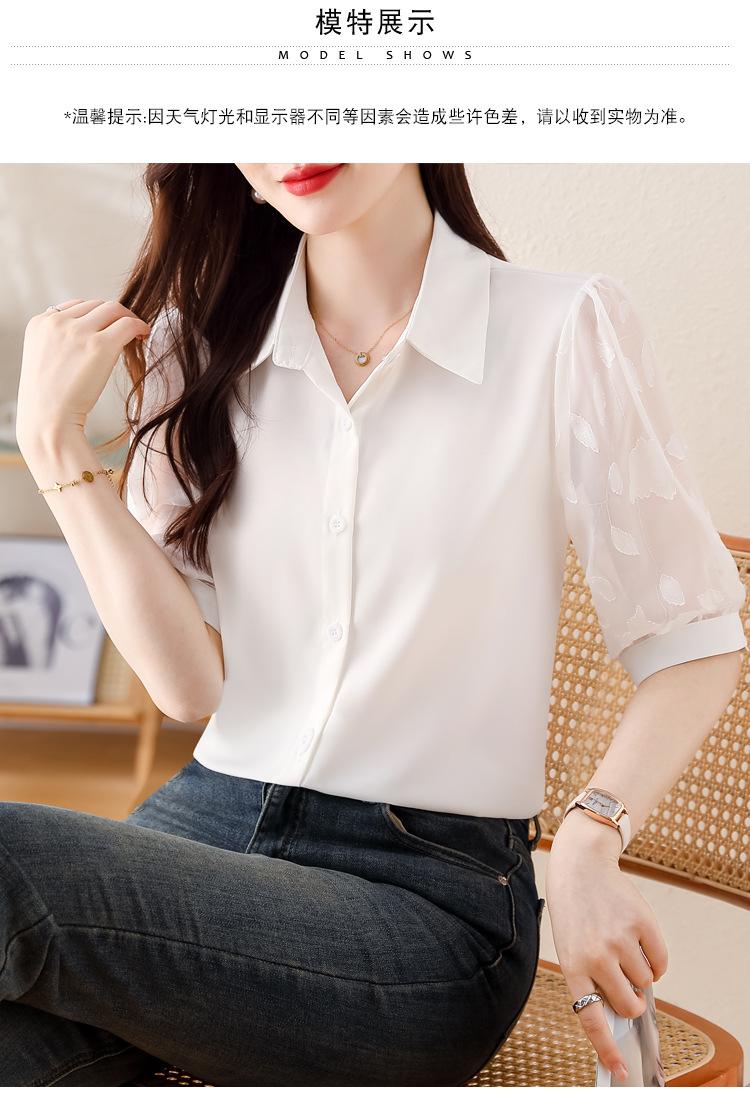 Camisa de Gasa Blanca para Mujer Manga Corta Verano 2025 Nueva Camisa Sensorial Profesional Sencilla Elegante Top