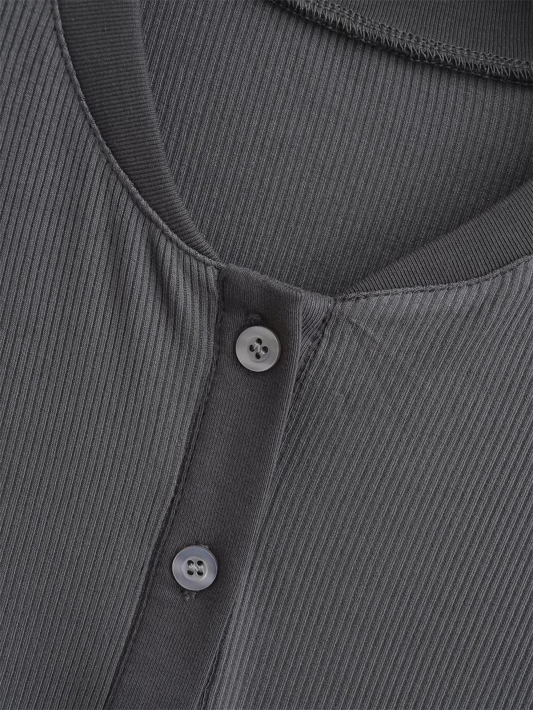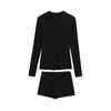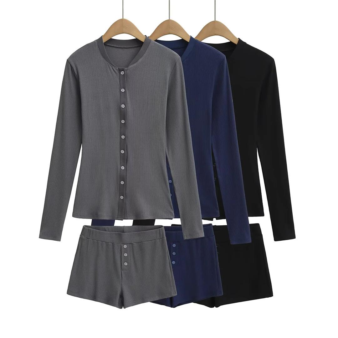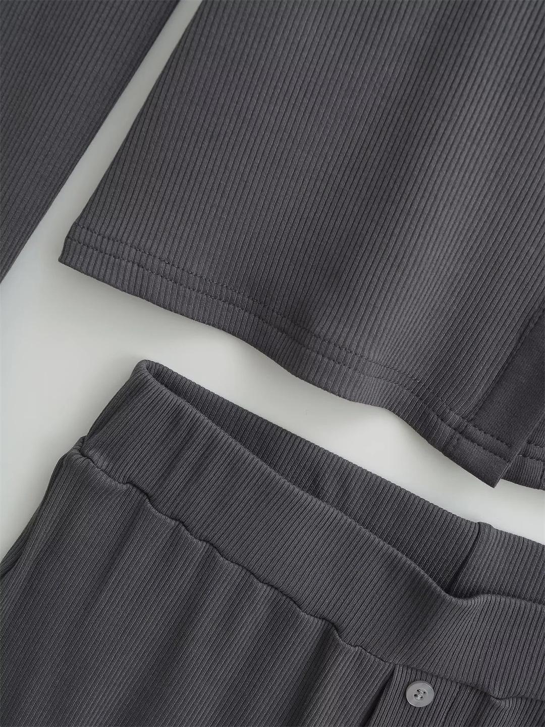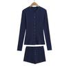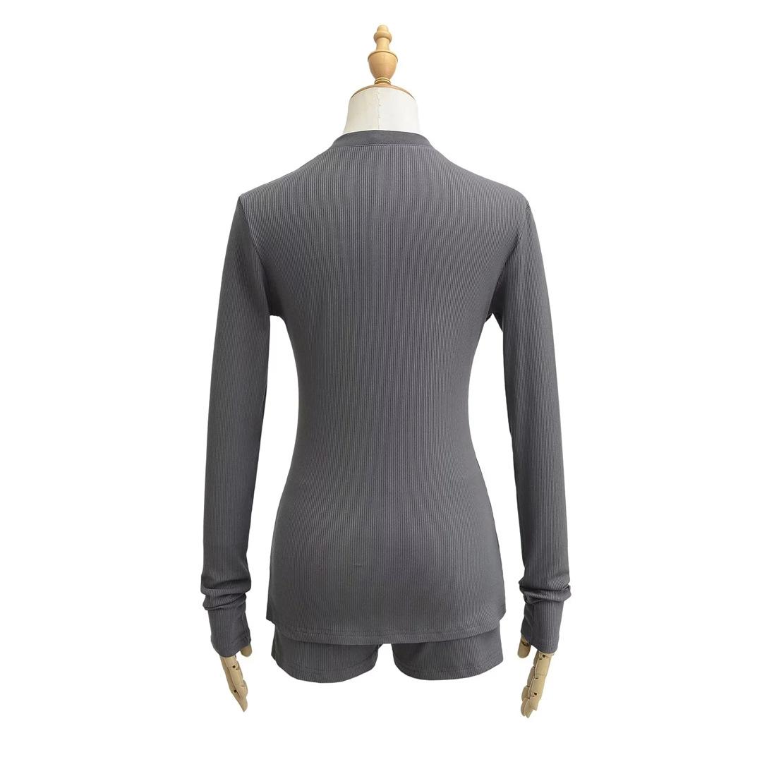 Top Camiseta Cárdigan Slim de Punto con Cuello Redondo y Abotonadura Sencilla con Bloques de Color Personalizado, Pantalones Cortos Tipo Traje con Cintura Elástica y Botones que Cubren la Cadera