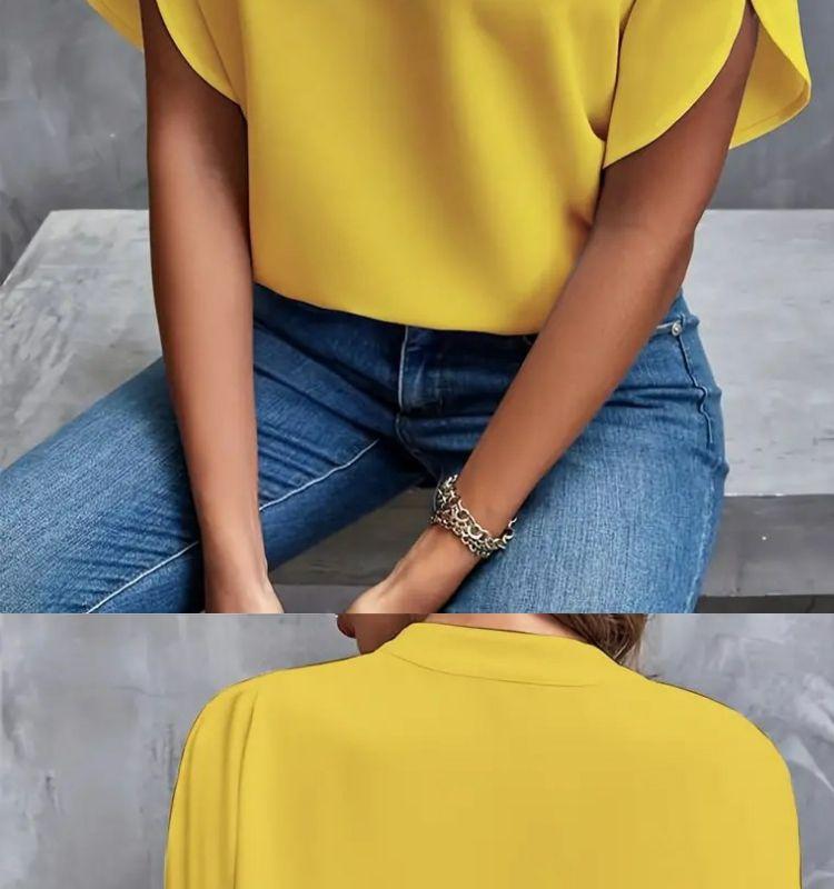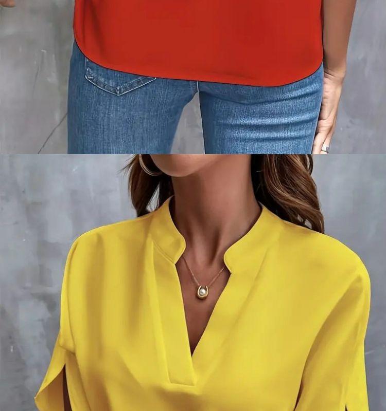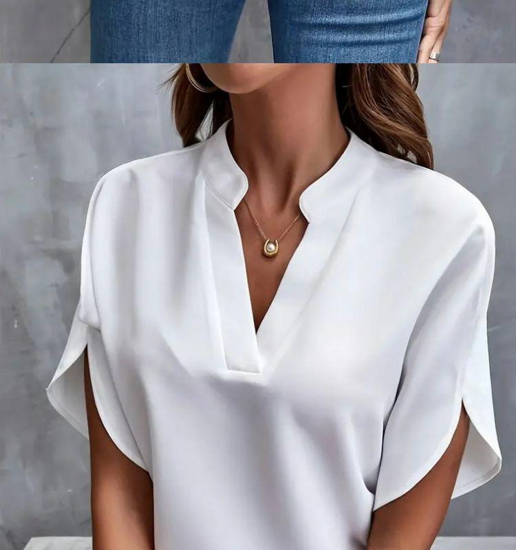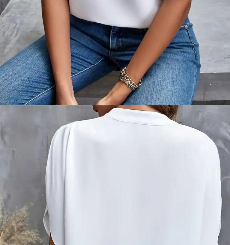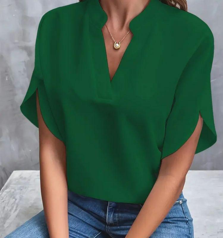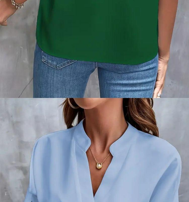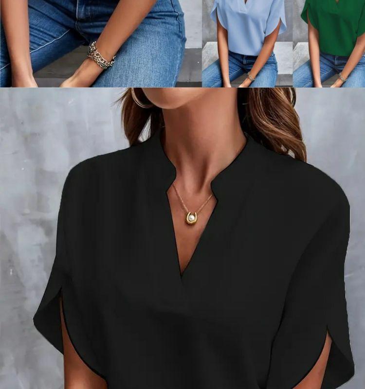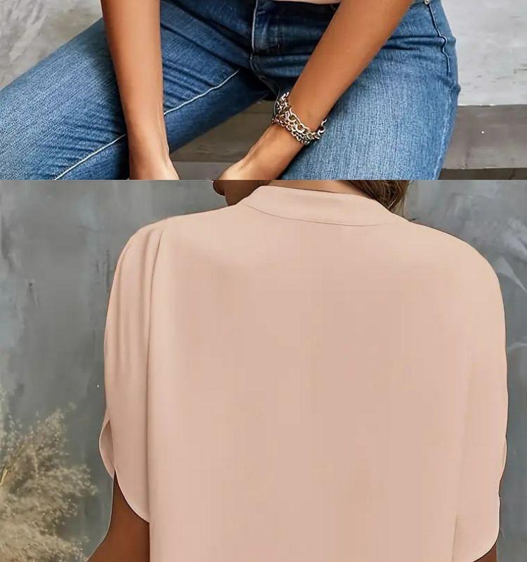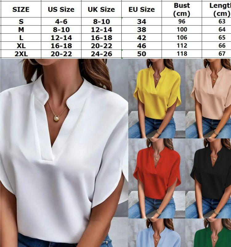 Ropa de Mujer Transfronteriza Europea y Americana 2025 Verano Casual Color Sólido Cuello en V Blusas Holgadas para Mujer