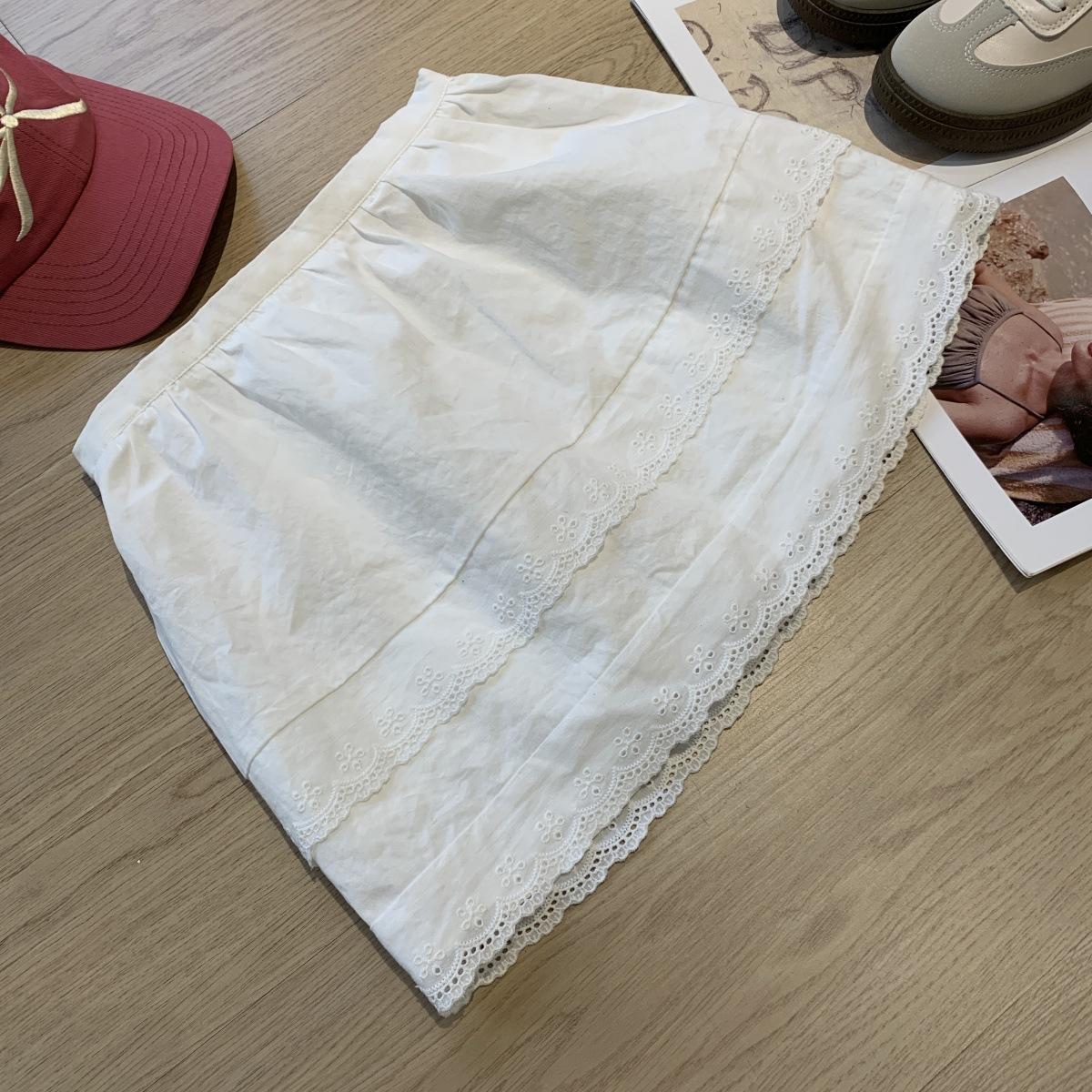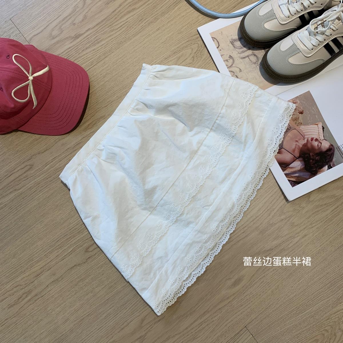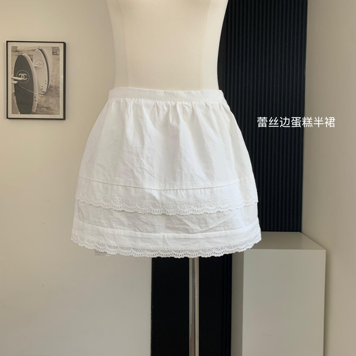 Primavera 2025 Nuevo Estilo Verano Chica Francesa Falda Pastel con Borde de Encaje Blanco