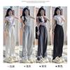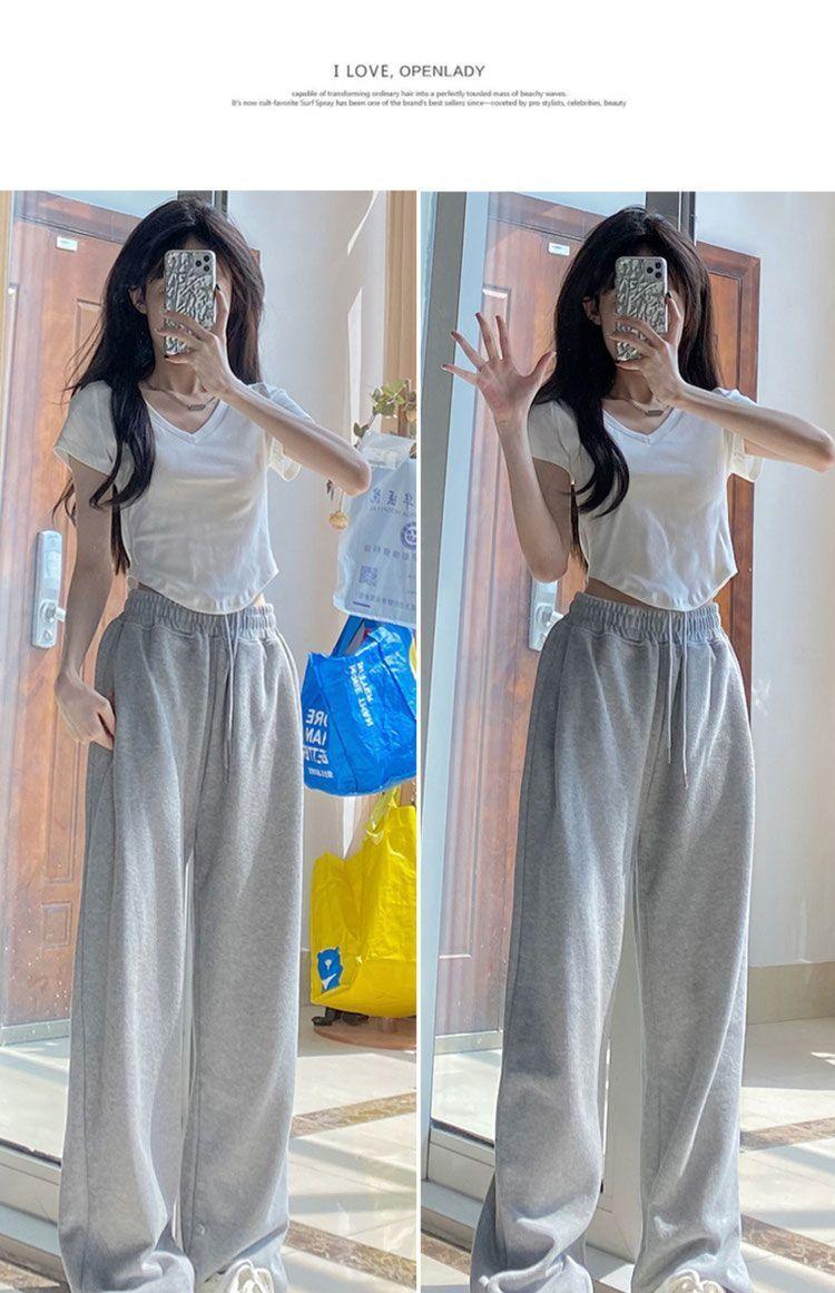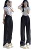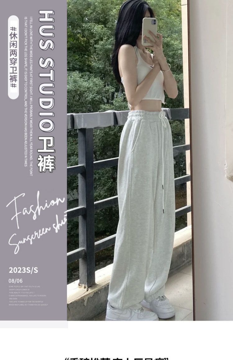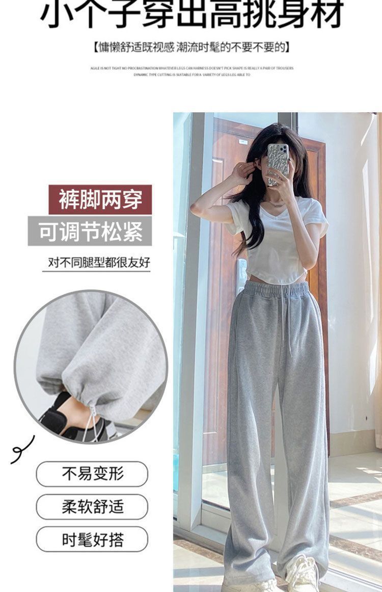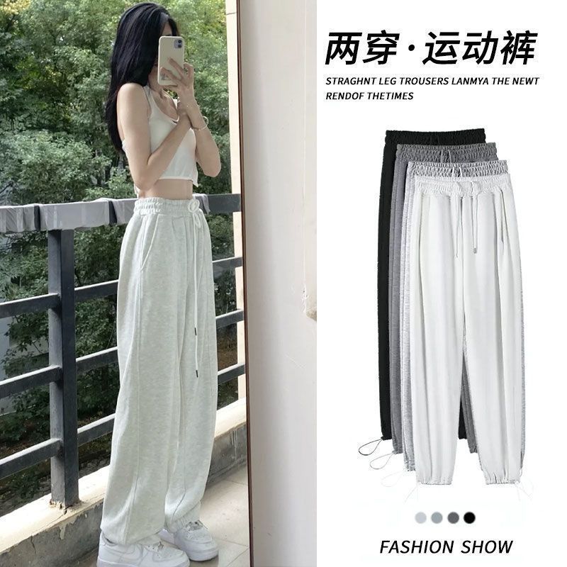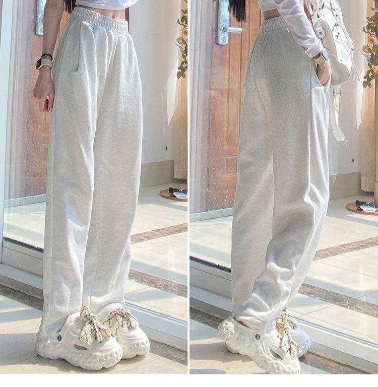 Pantalones deportivos grises para mujer, nuevos pantalones deportivos rectos informales de verano 2025, estilo coreano, holgados, con efecto adelgazante, leggings drapeados, pantalones deportivos.
