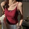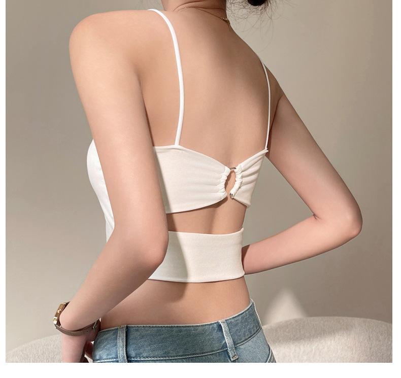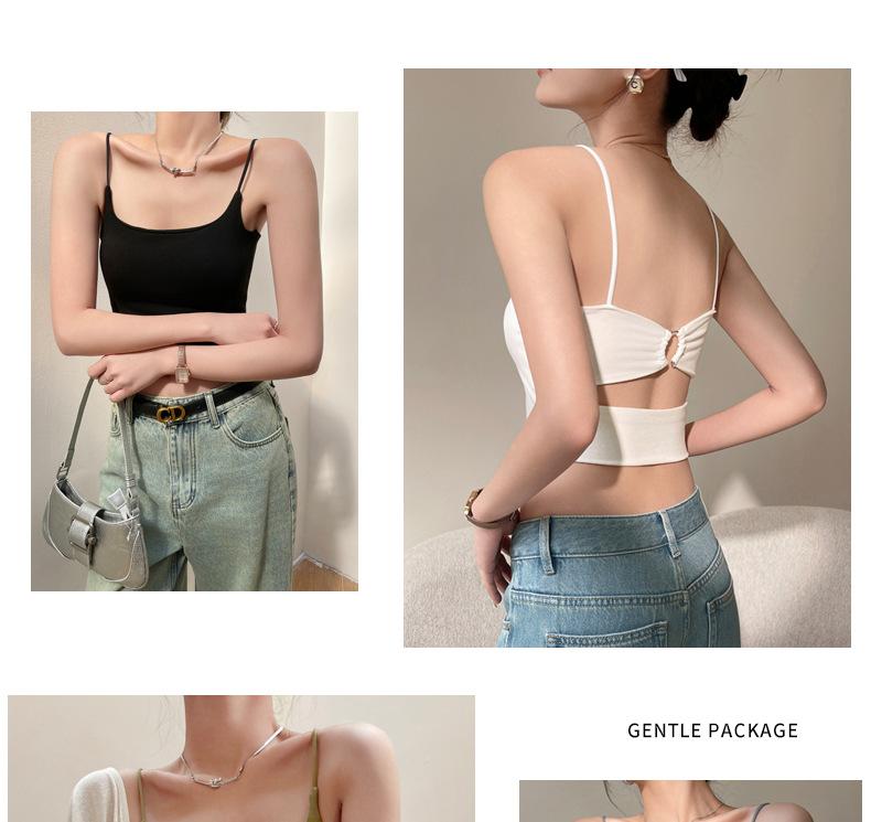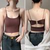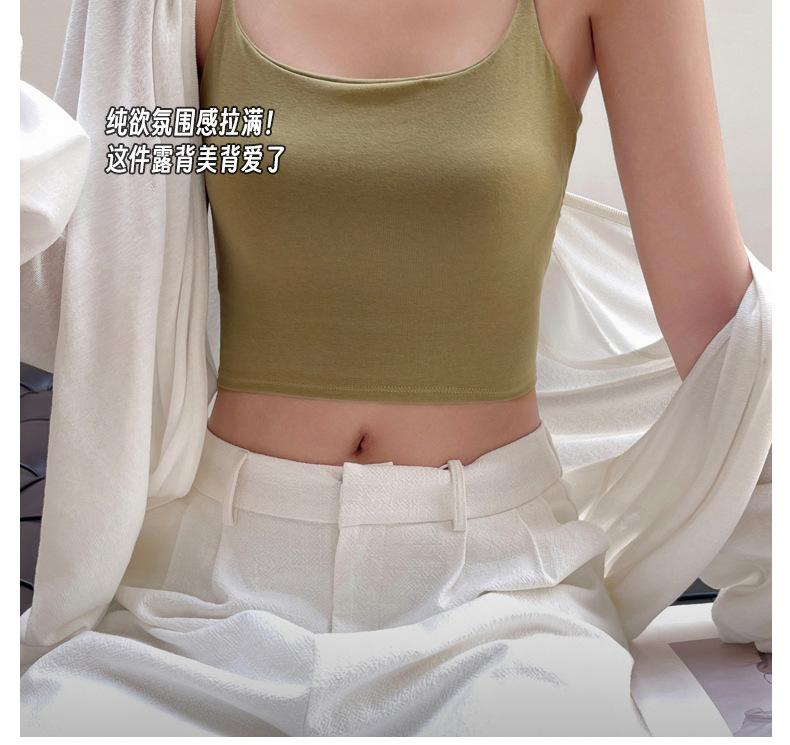 Verano Color Sólido Cuello Cuadrado Sexy Camisola de Chica Caliente para Mujer Ajustado Versátil Casual Cubre-Pecho Top Corto