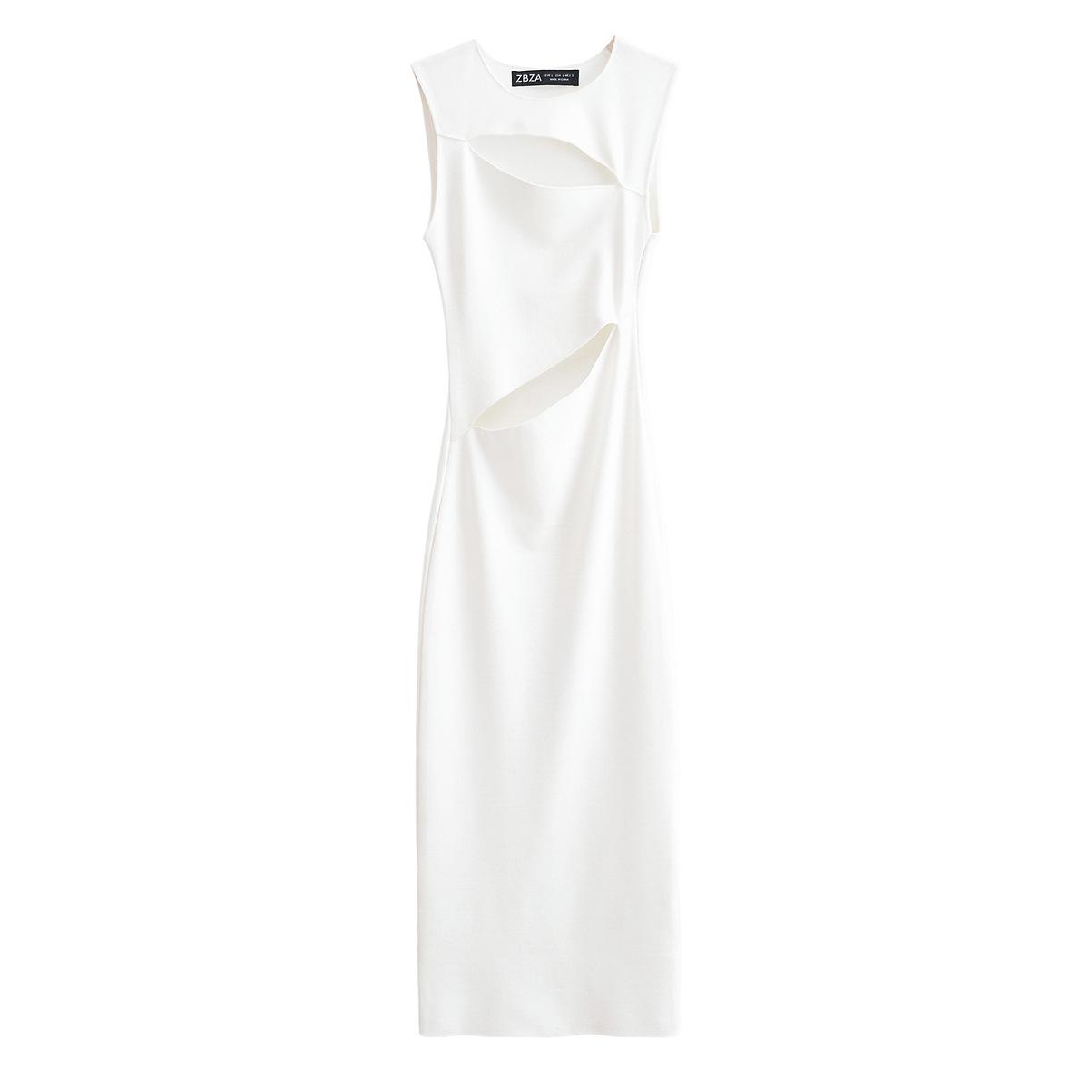 Ropa de Mujer de Comercio Exterior 2025 Verano Estilo Europeo y Americano Cuello Redondo Cuello Redondo Sin Mangas Diseño Abierto Vestido con Abertura para Mujer E52648