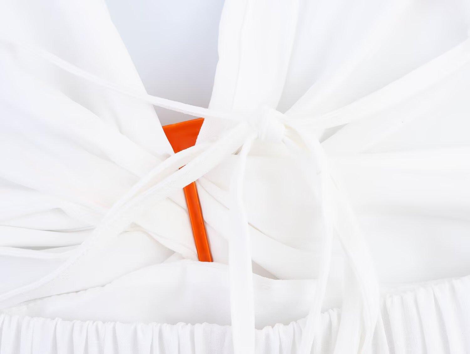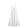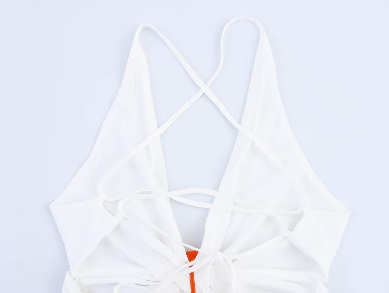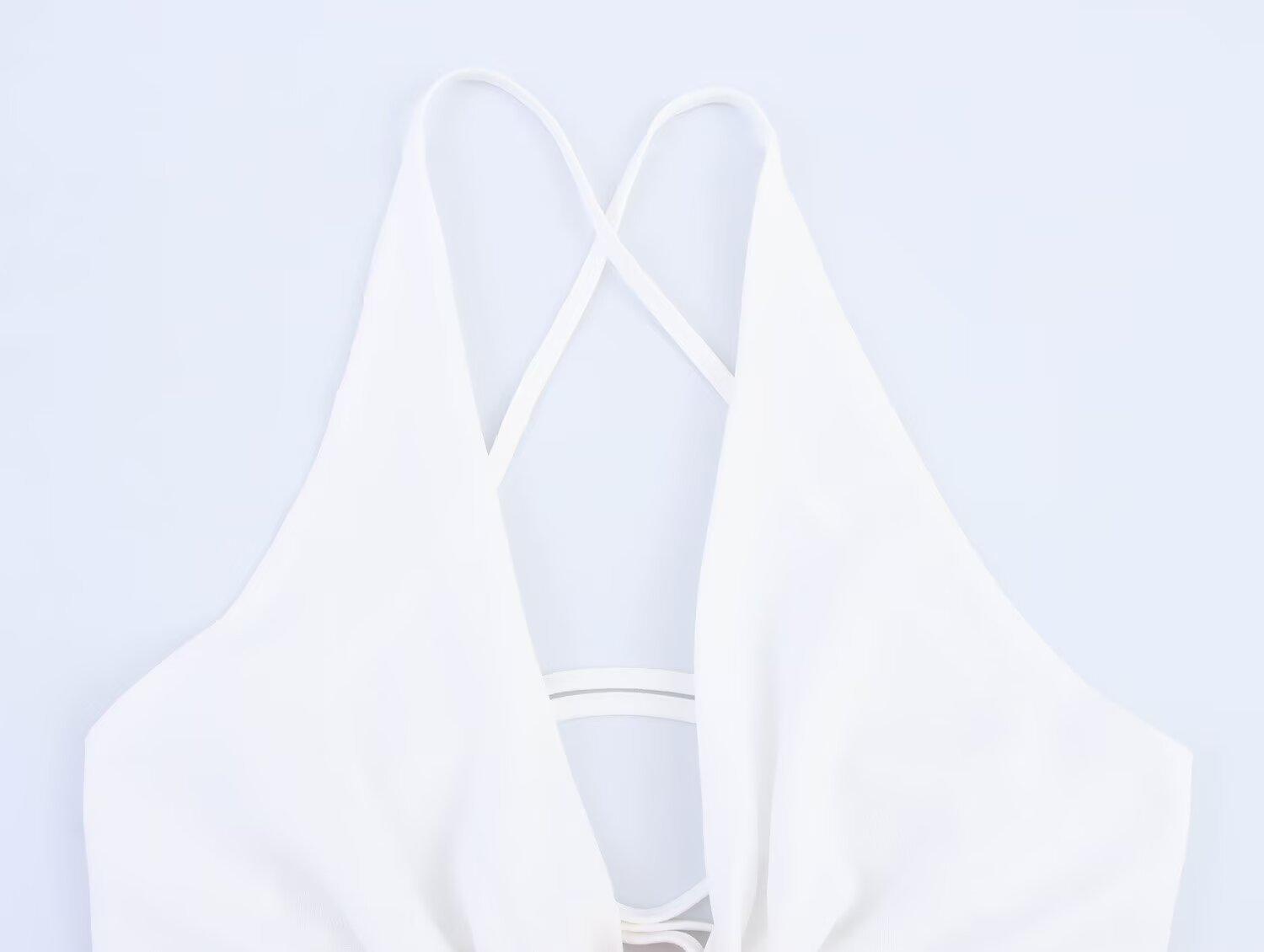 2025 Ropa de Verano para Mujer Nueva Estilo Europeo y Americano Moda Color Puro Espalda Descubierta Sexy Cuello en V Sin Mangas Vestido