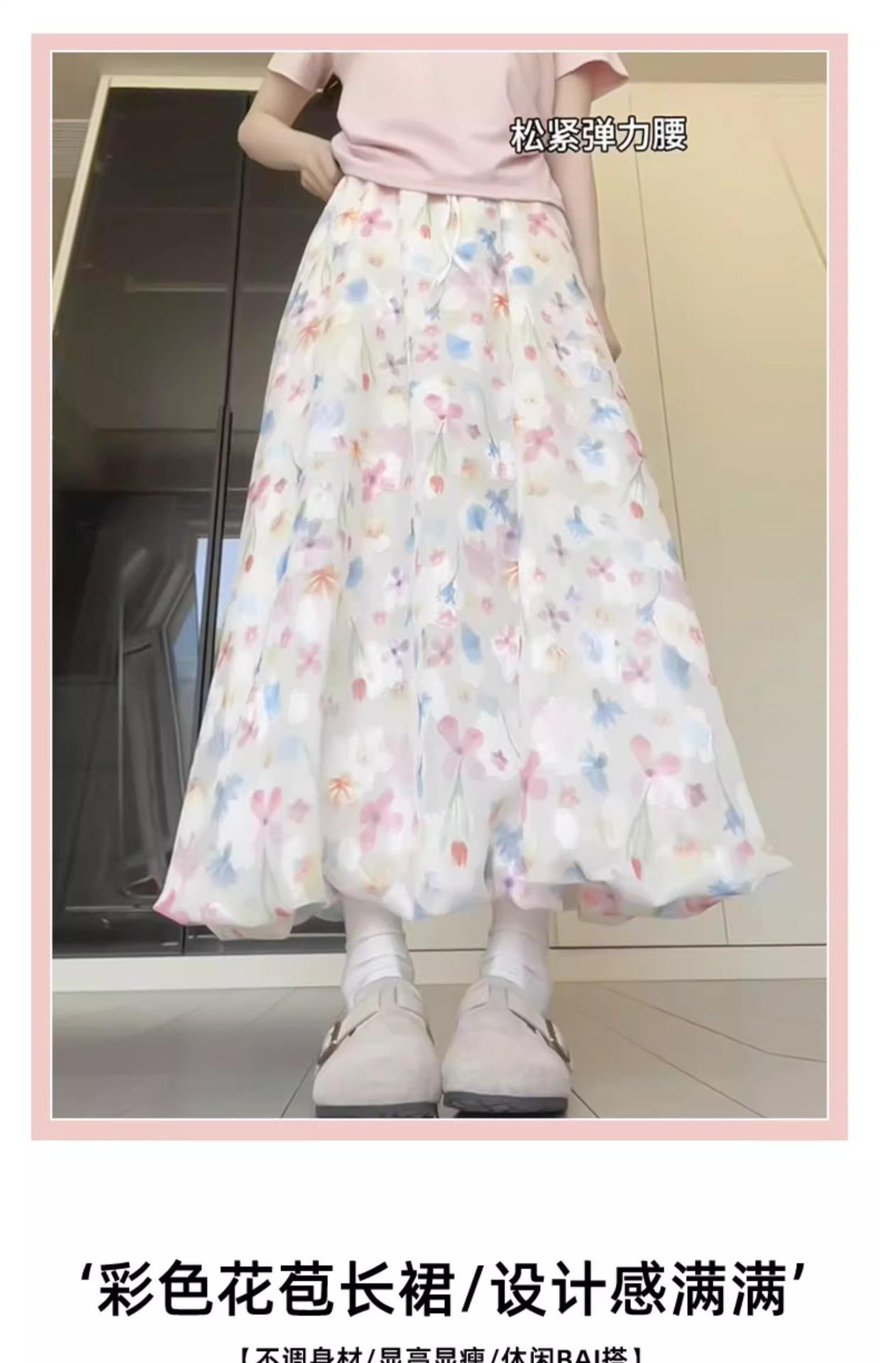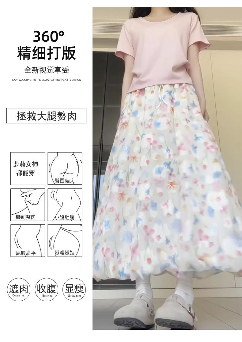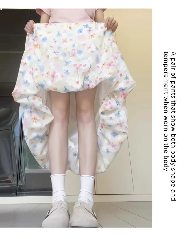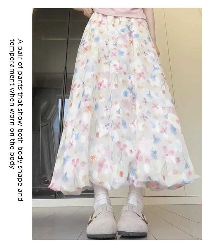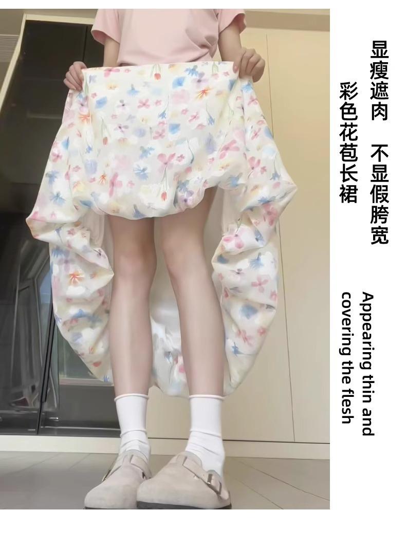 Falda Floral Colorida para Mujer Verano Nueva Cintura Alta Adelgazante Falda A- Line Estilo Coreano Estilo Suave Seda de Hielo Falda Larga de Capullo