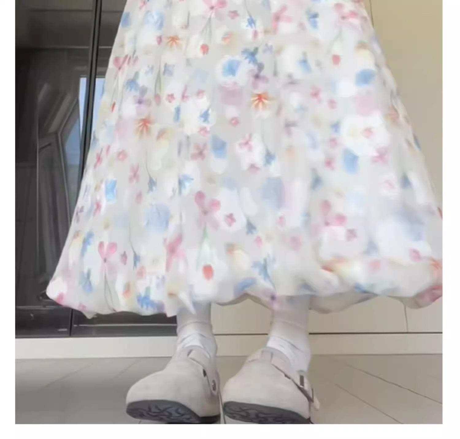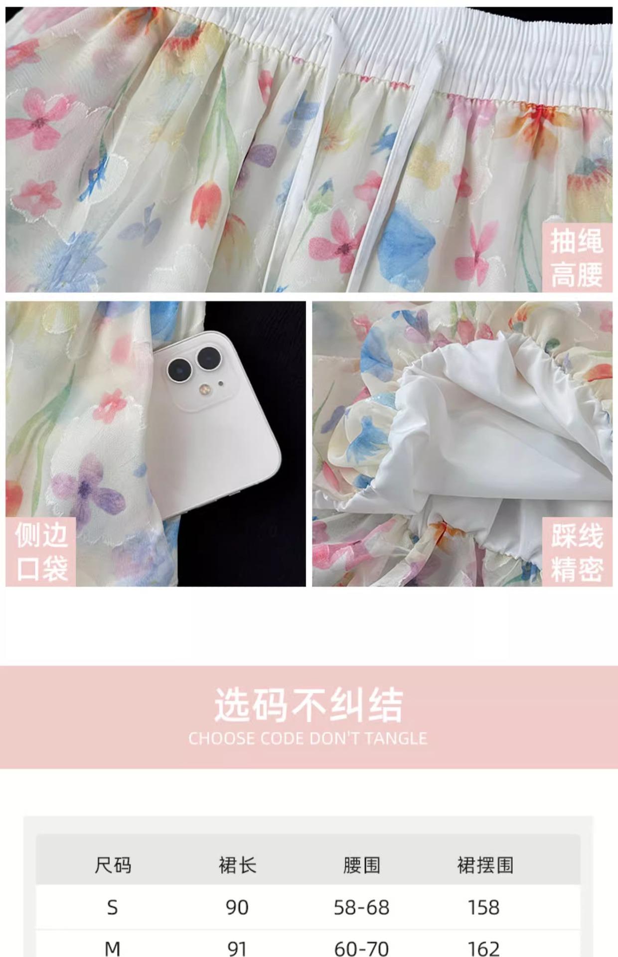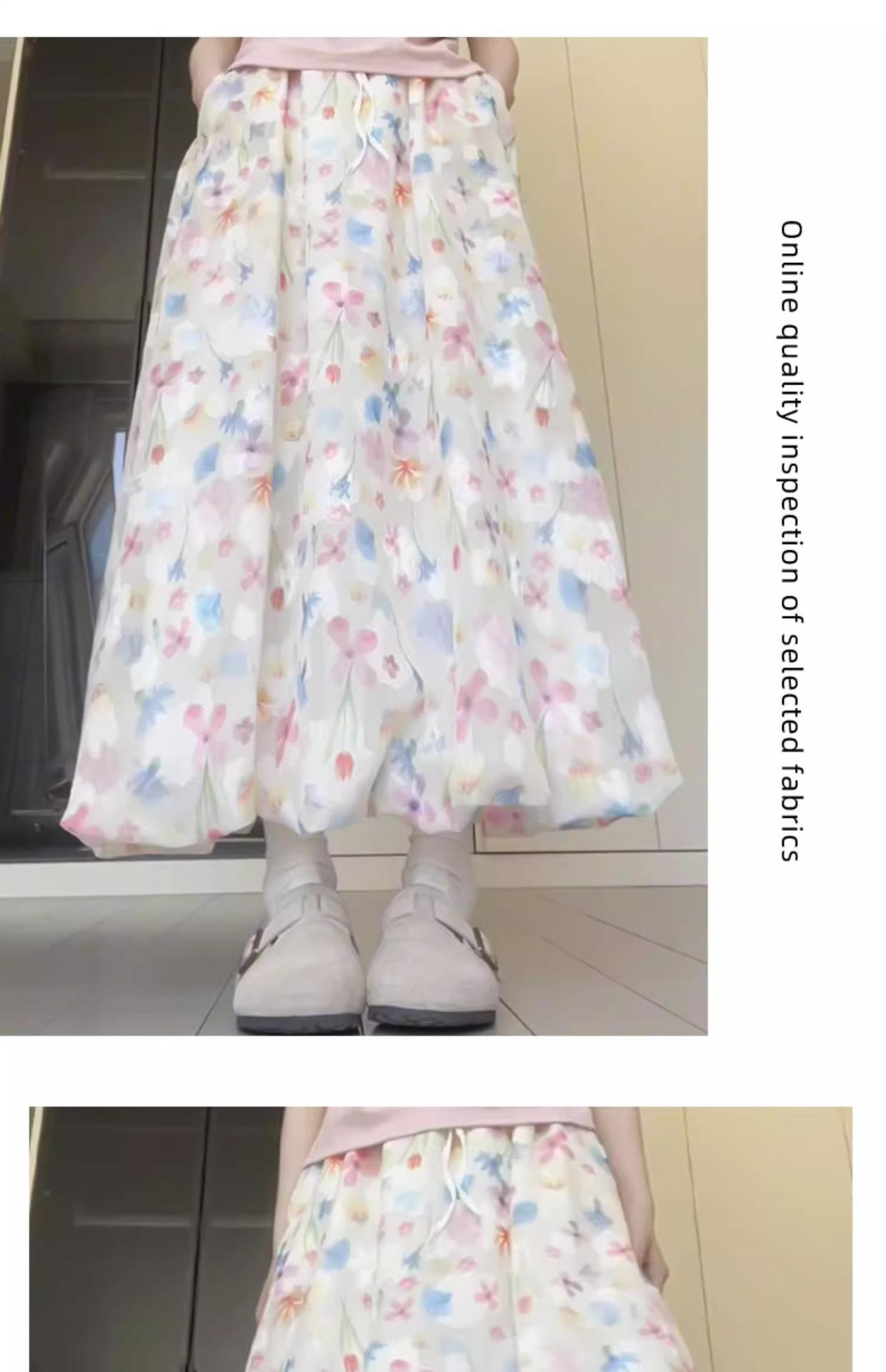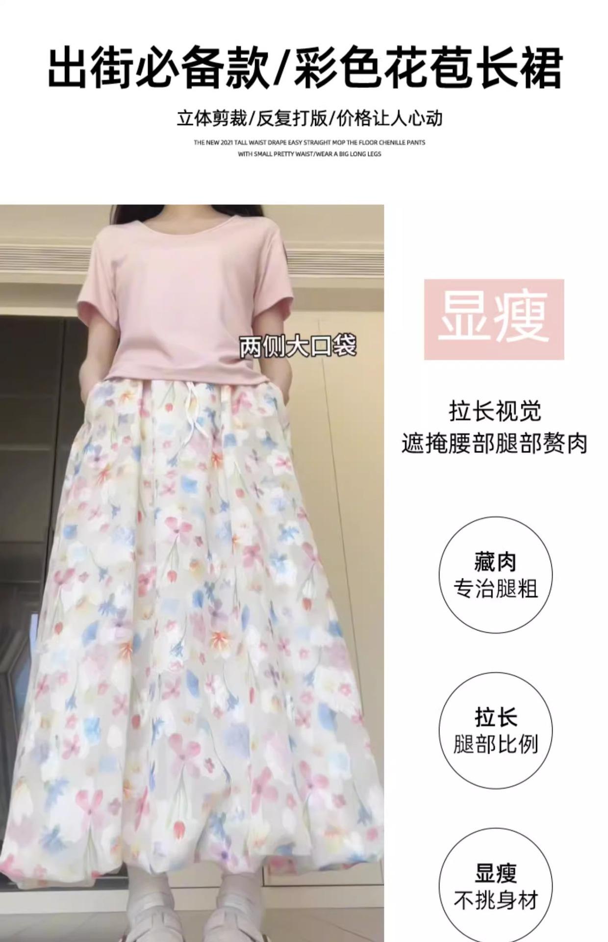 Falda Floral Colorida para Mujer Verano Nueva Cintura Alta Adelgazante Falda A- Line Estilo Coreano Estilo Suave Seda de Hielo Falda Larga de Capullo