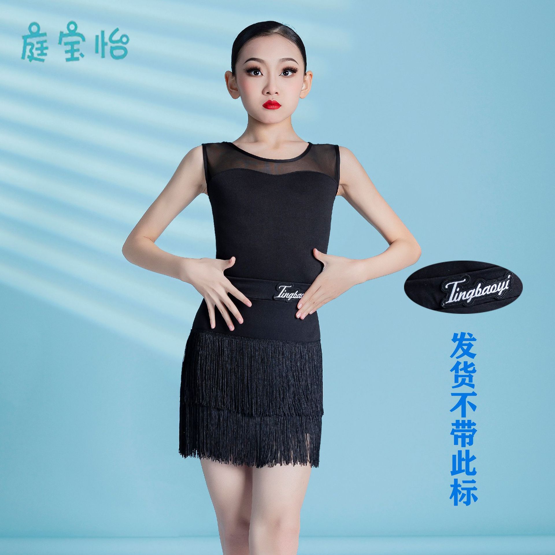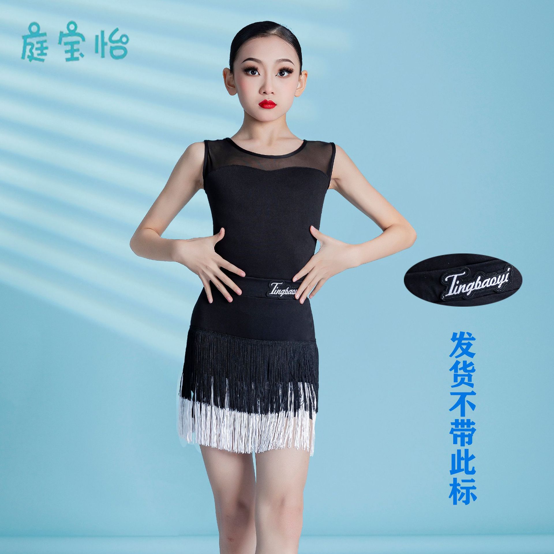 Disfraces de Actuación para Niños Ropa de Práctica de Danza Latina Femenina Ropa de Danza sin Mangas Falda Corta con Flecos para Niños Ropa de Actuación de Danza