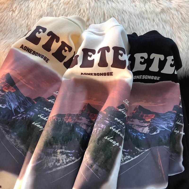 Nueva sudadera con estampado de dibujos animados para mujer, sudadera gruesa con estampado de dibujos animados para mujer, chaqueta de manga larga holgada y fresca para mujer, estilo sal, combinable con todo.