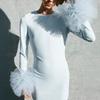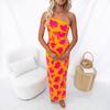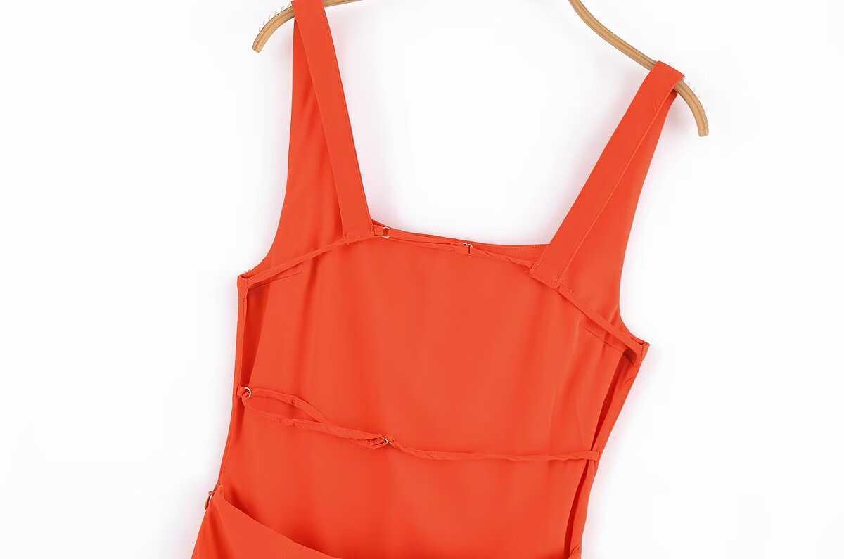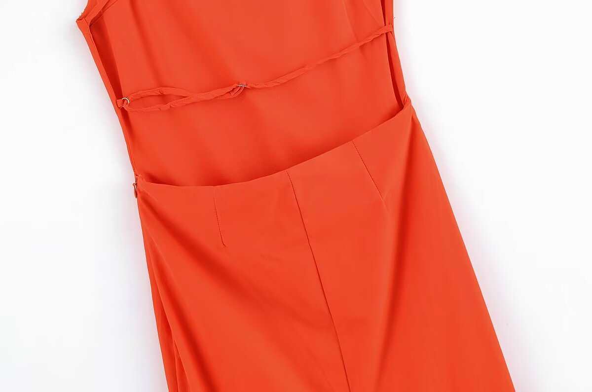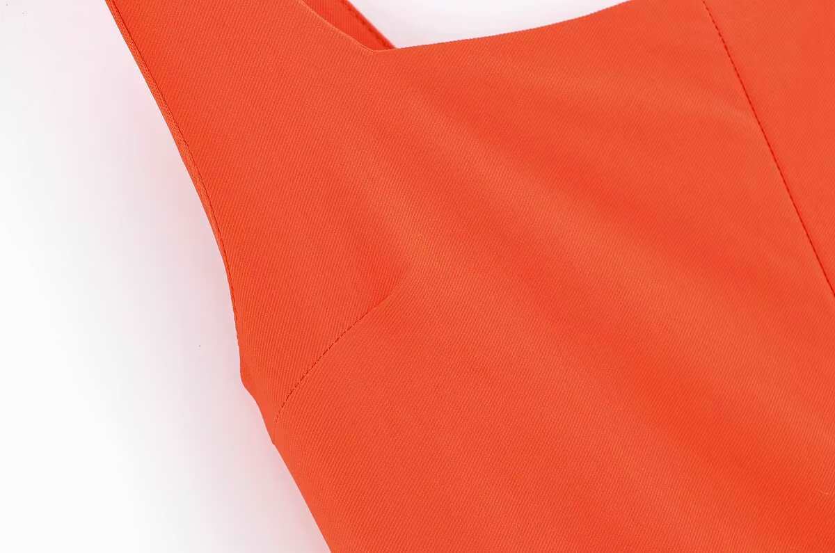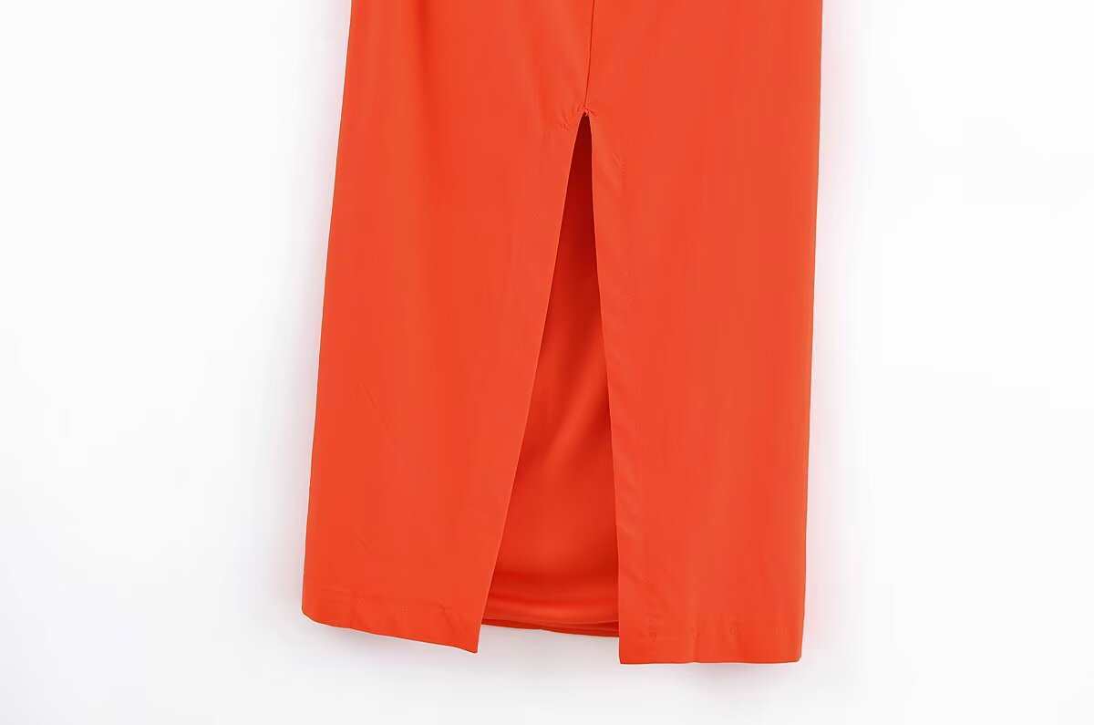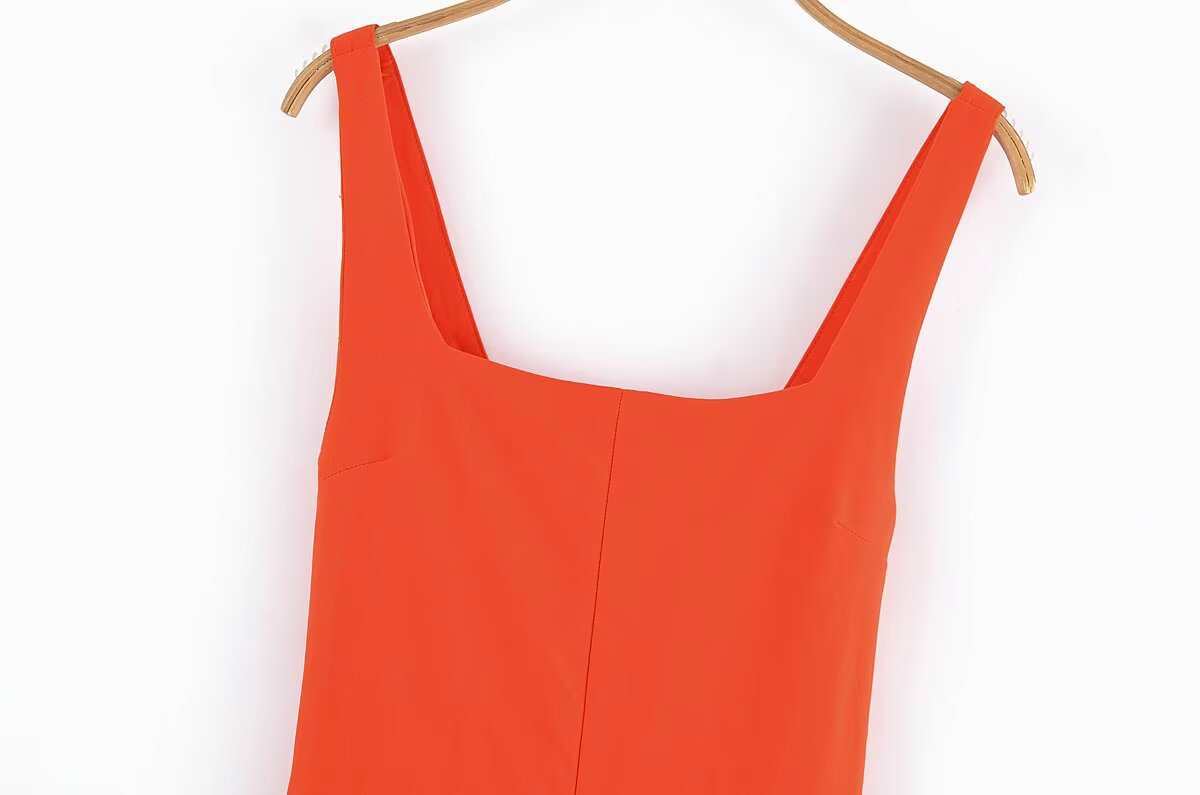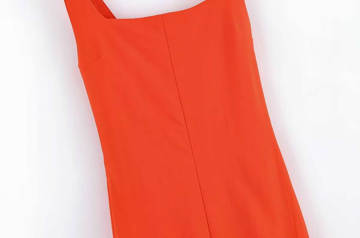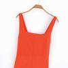 Vestido Midi de Mujer Europeo y Americano de Cuello Cuadrado Aliexpress Sin Espalda Transfronterizo Popular Ajustado Naranja Elegante Elegante