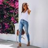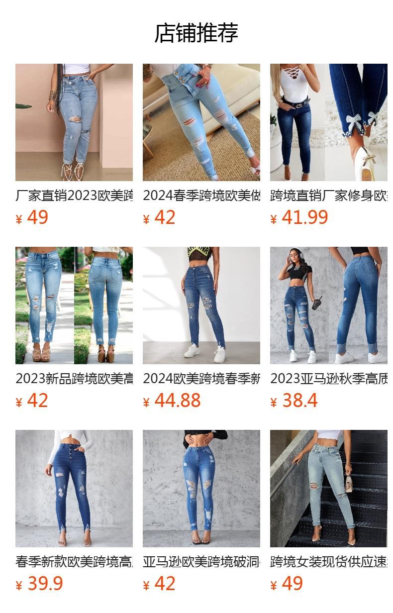 Pantalones vaqueros rotos transfronterizos de Amazon, de moda europea y americana, ajustados, disponibles en stock.