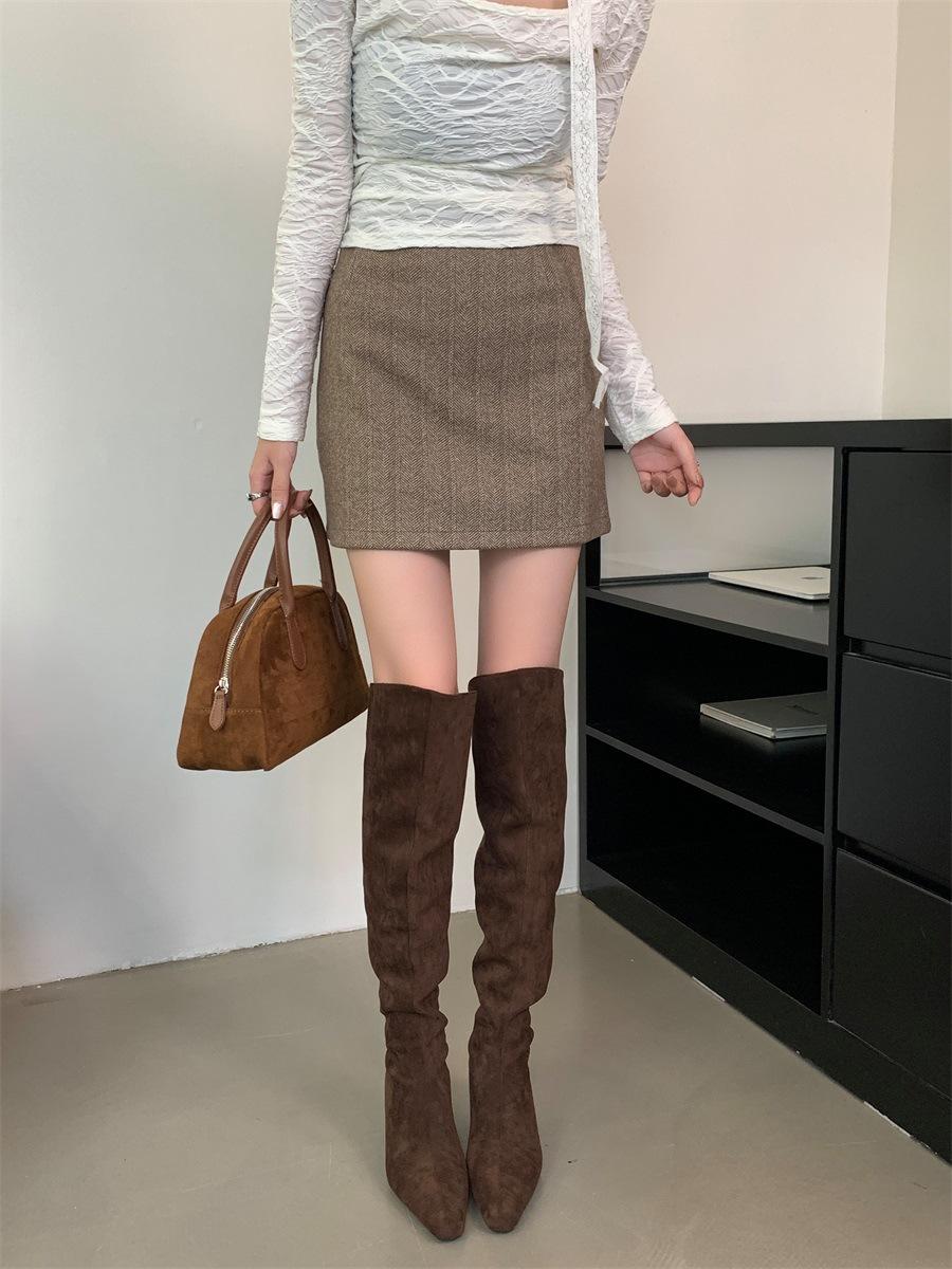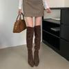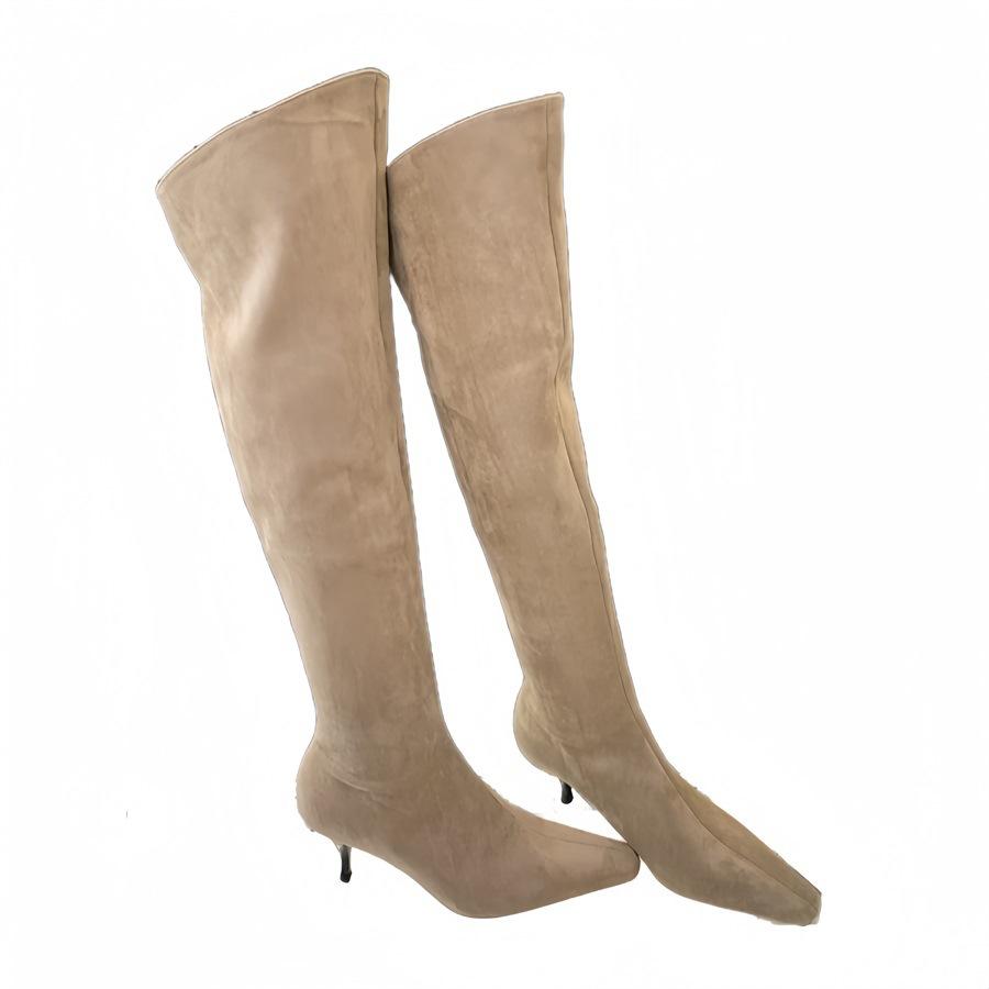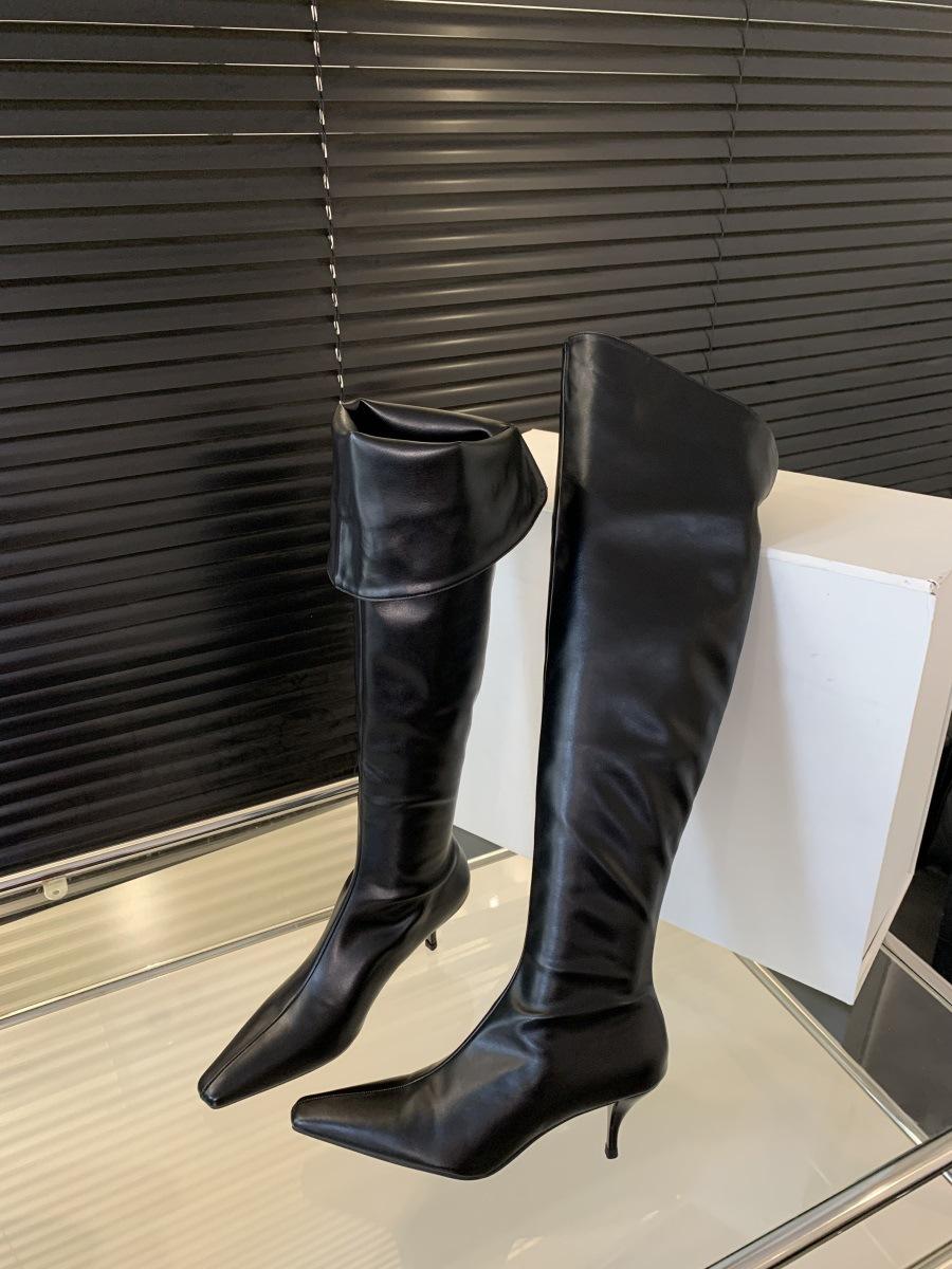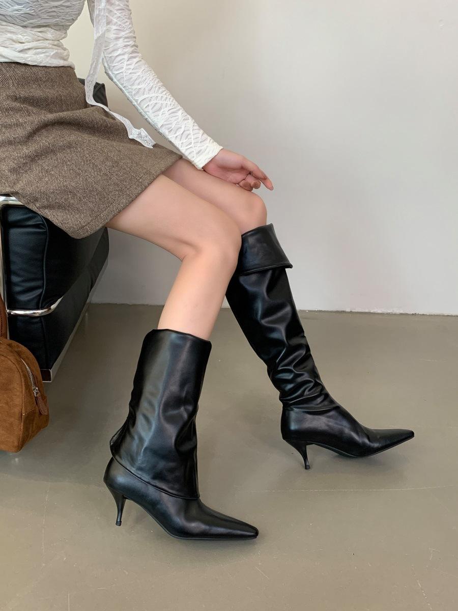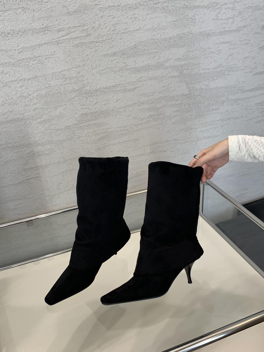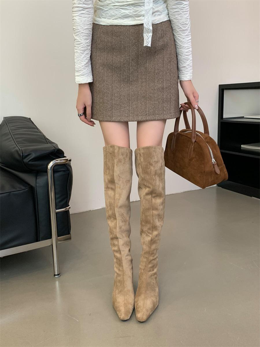 2024 Nuevas Botas Spice Girl Europeas y Americanas Boca en V Gamuza Tacón Fino Puntiagudas Tacón Alto Botas Dos Usos Botas Altas