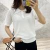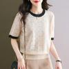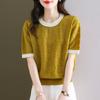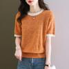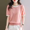 Suéter de Punto Fino de Contraste de Color de Verano 2025, Manga Corta, Casual, Suelto, Combinable con Todo, Elegante, para Mujer Pequeña, Top de Moda