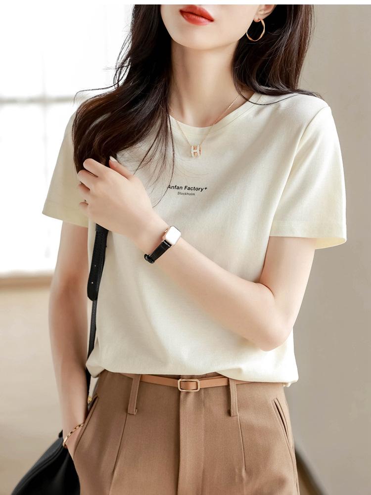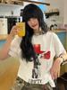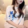 Verano Nueva Camiseta Estampada de Dibujos Animados para Hombre y Mujer Cuello Redondo Suelta Albaricoque Camiseta de Mujer
