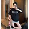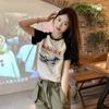 Camiseta de manga corta con estampado de letras vintage estilo Hong Kong para pareja, holgada y relajada de verano para mujer.