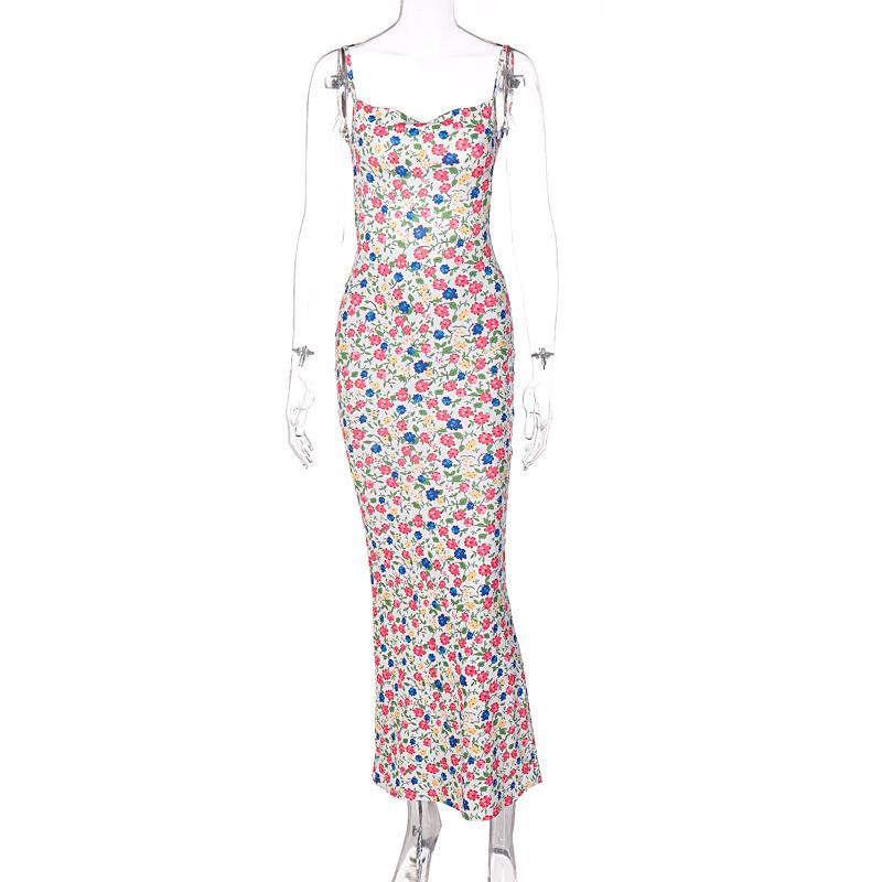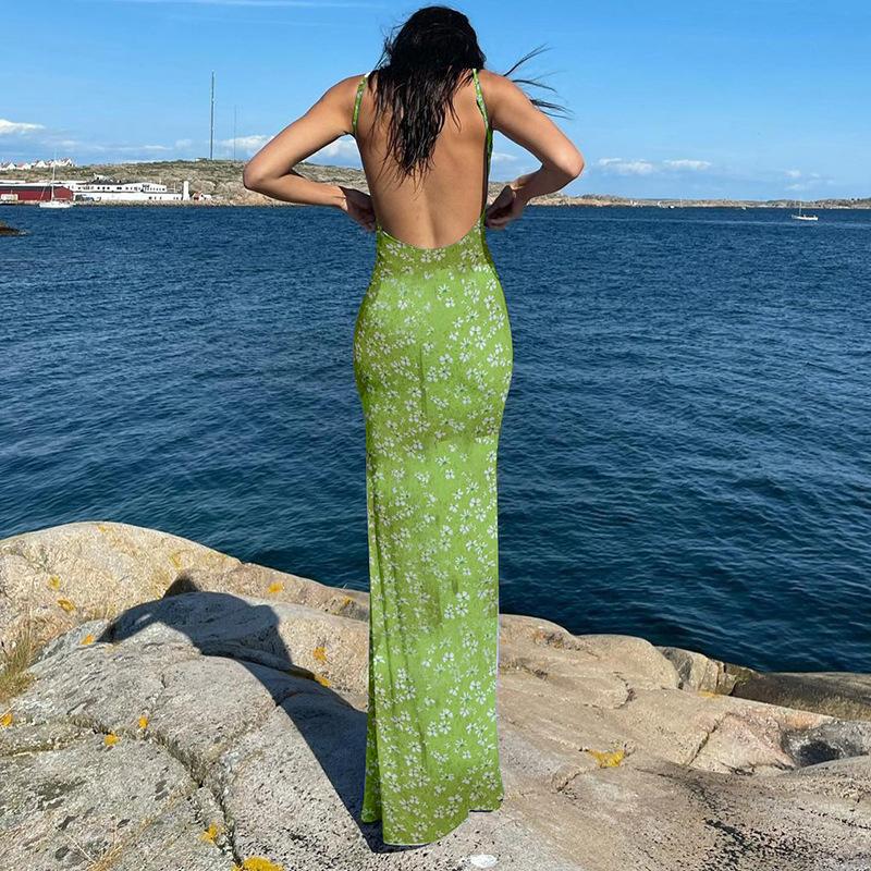 Transfronterizo 2025 Moda Europea y Americana Nuevo Amazon Sexy Delgado Tirantes Estampado Espalda Descubierta Vestido para Mujer