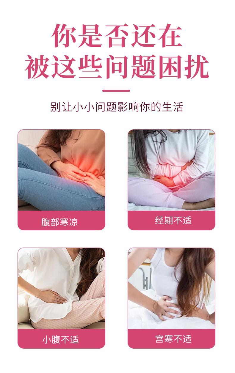 Suitable for relieving dysmenorrhea caused by irregular menstruation, constitution, cold abdomen and cold abdomen