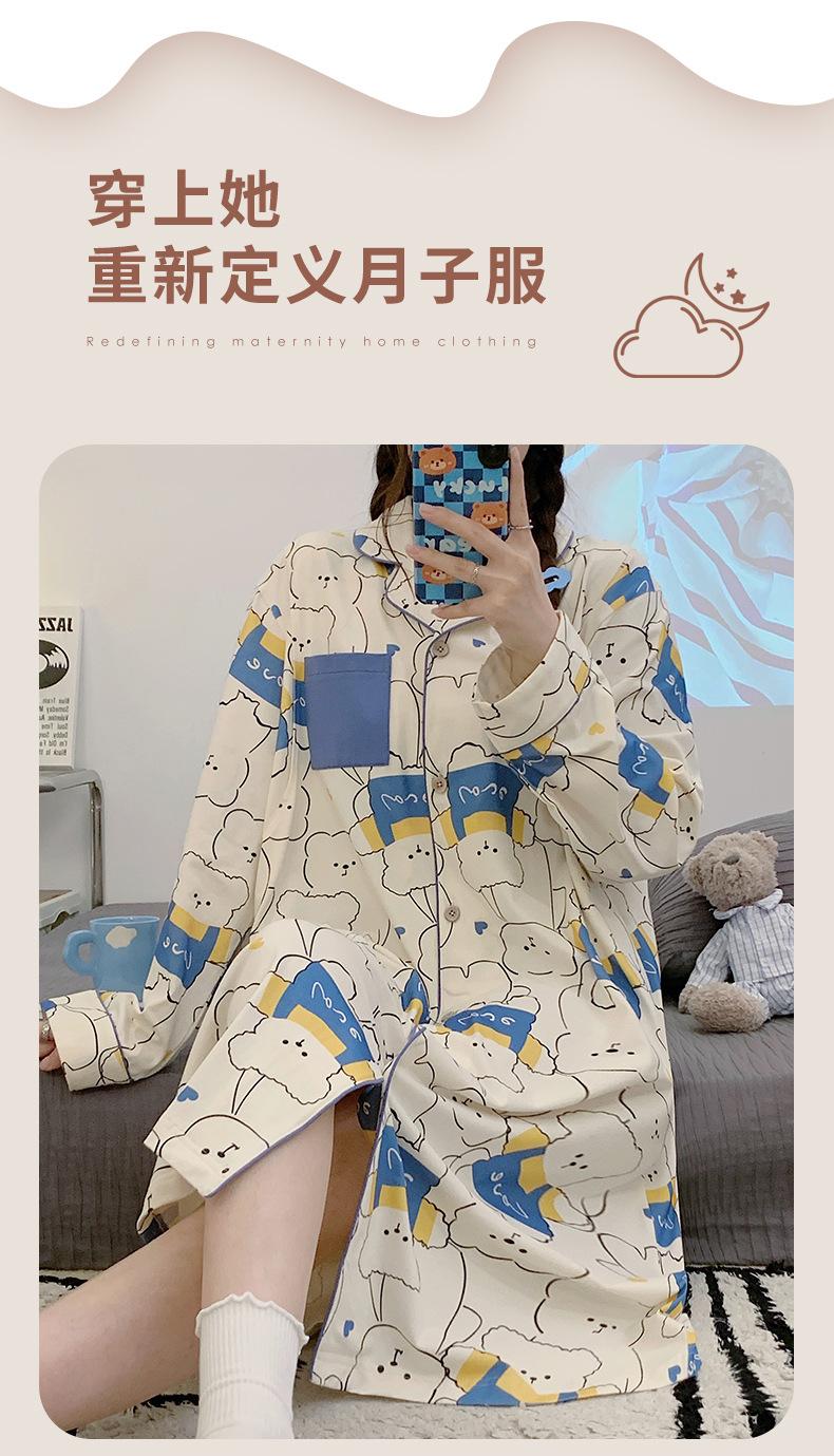 Nuevo vestido de maternidad de algodón puro primavera y otoño camisón de lactancia posparto verano pijama de maternidad delgado vestido largo de confinamiento