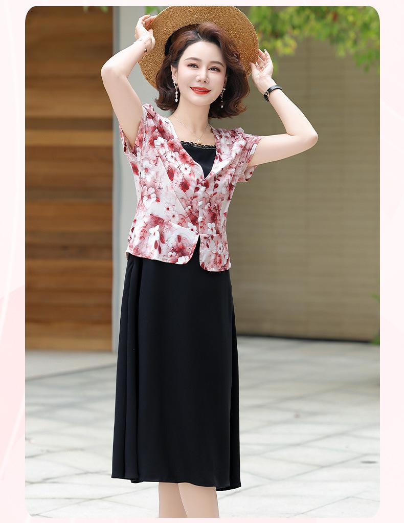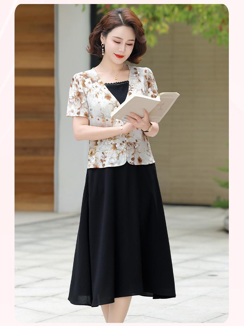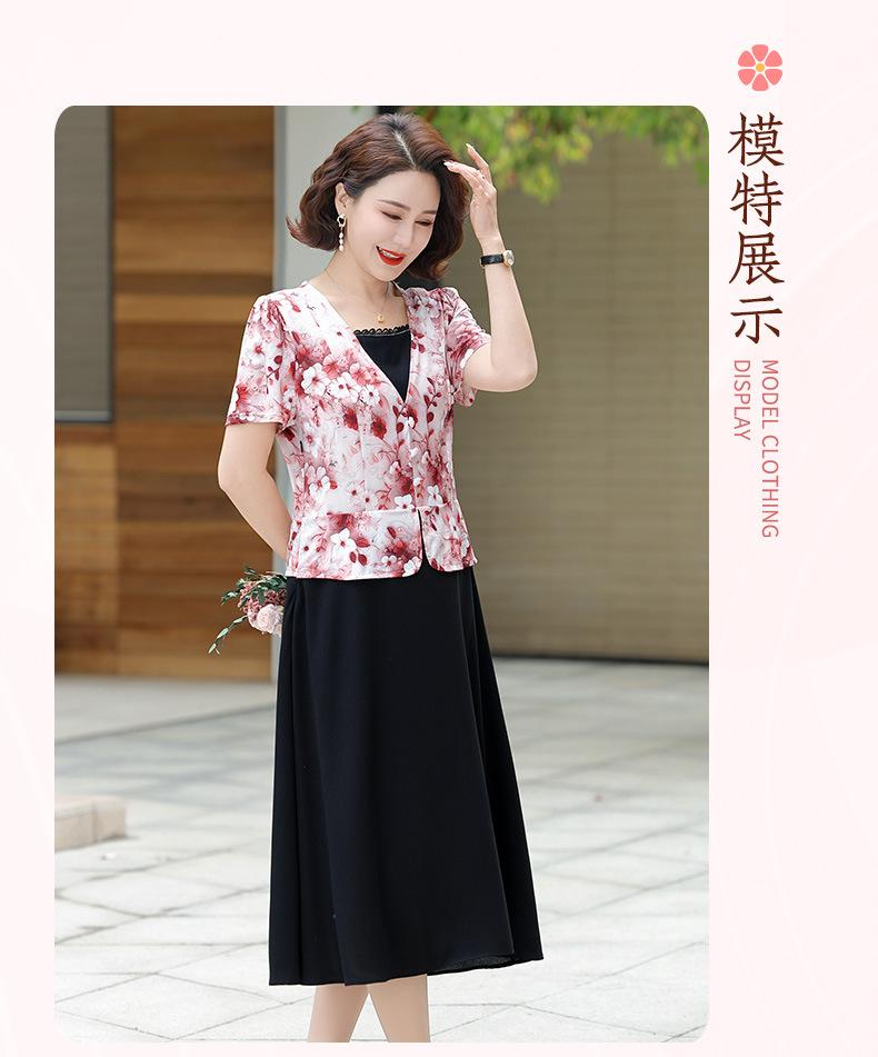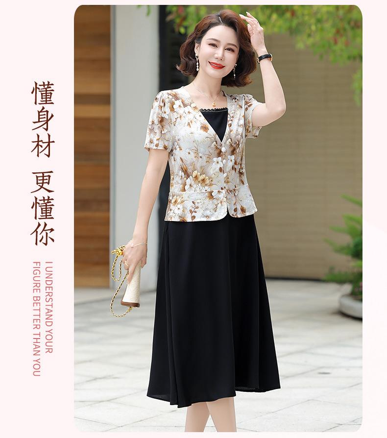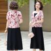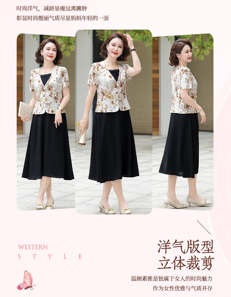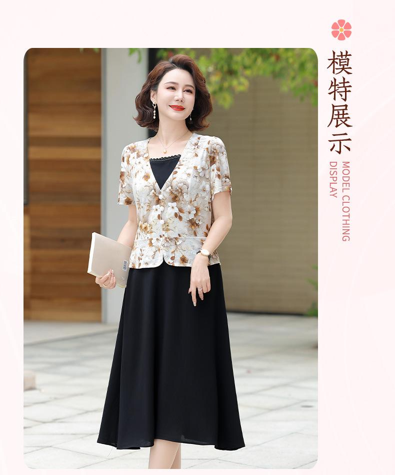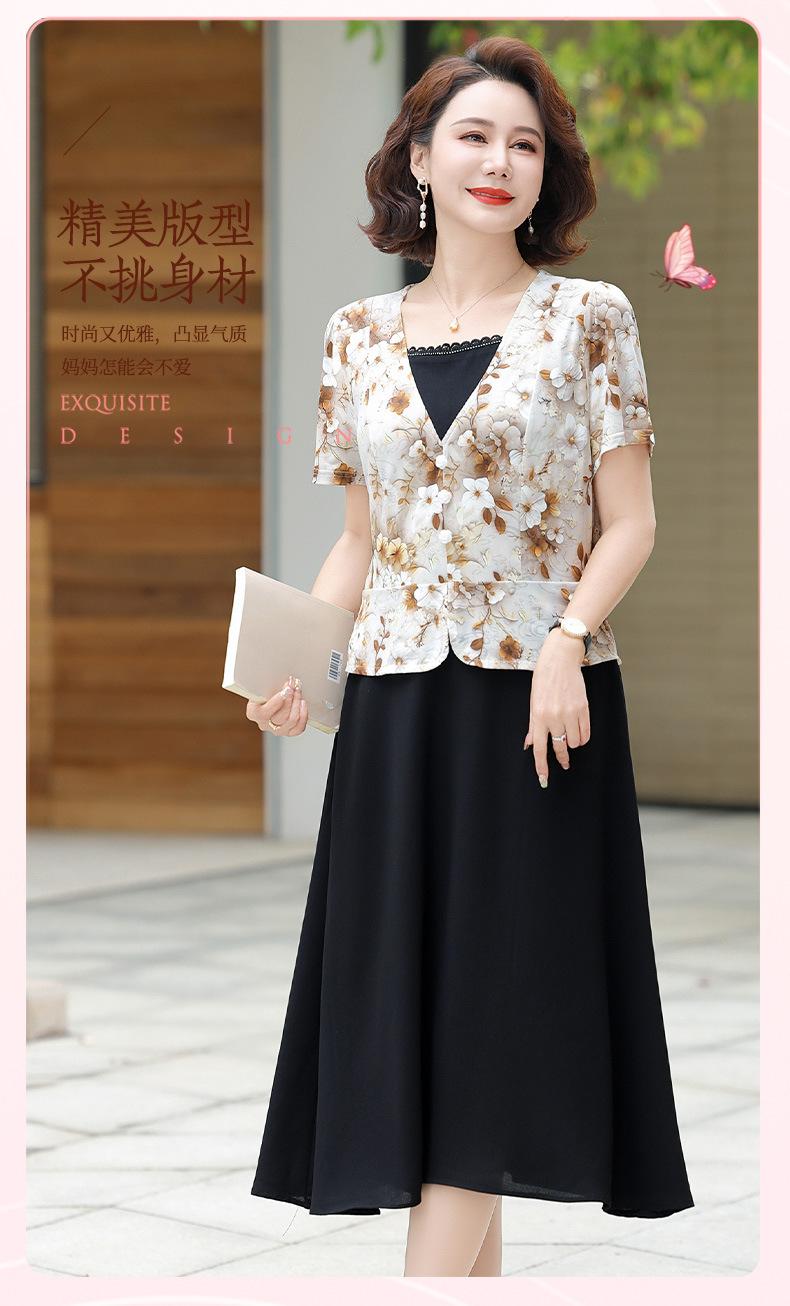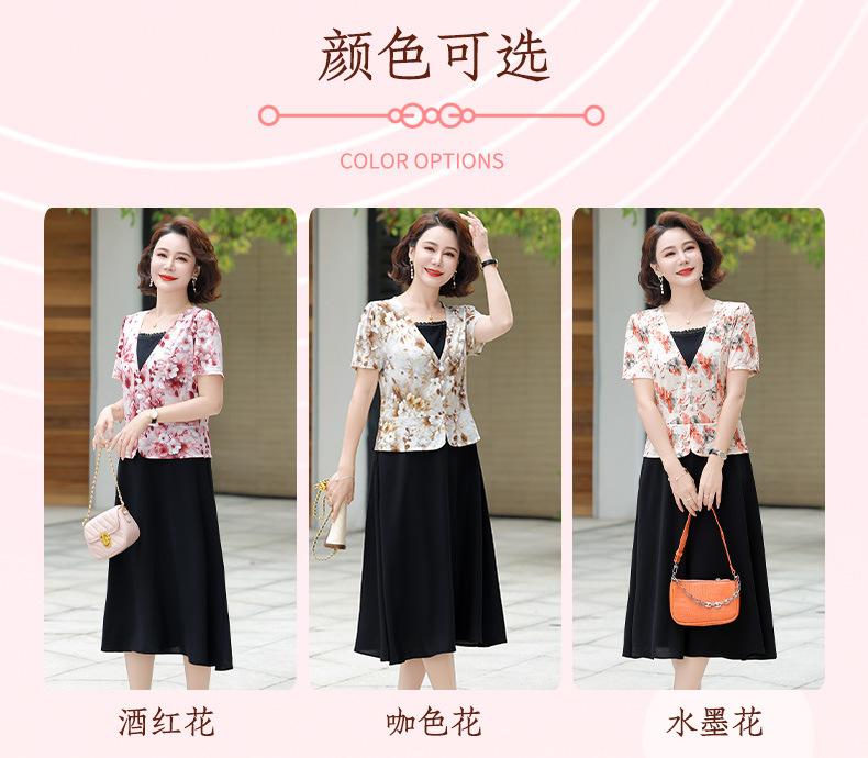 Vestido Elegante de Verano de Chifón de Manga Corta para Mamá 2025 Nuevo Falda de Dos Piezas de Vacaciones de Verano para Mujeres de Mediana Edad y Adultas Mayores