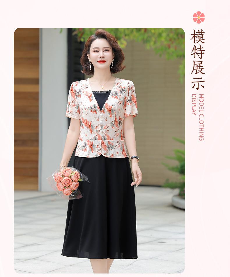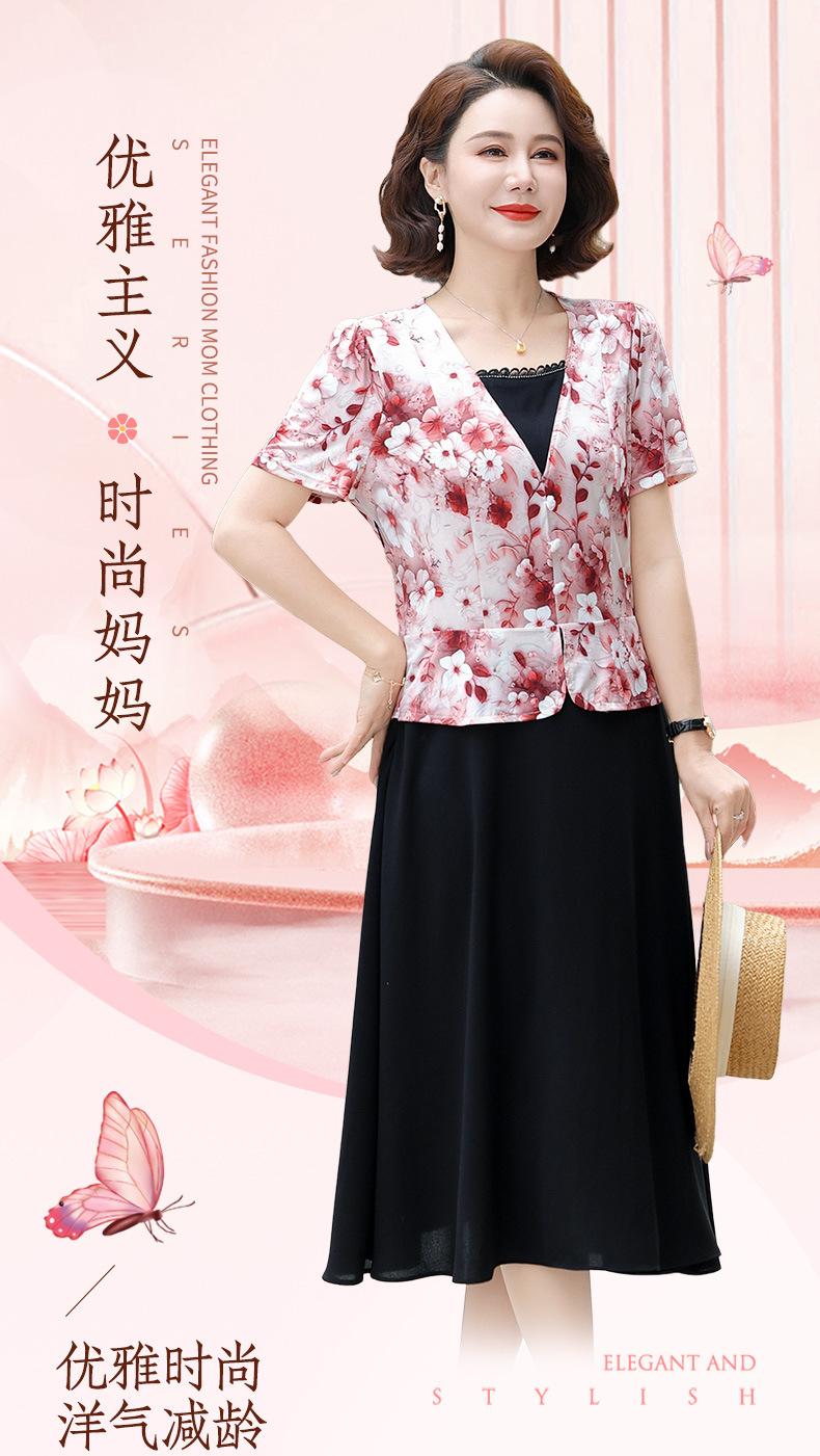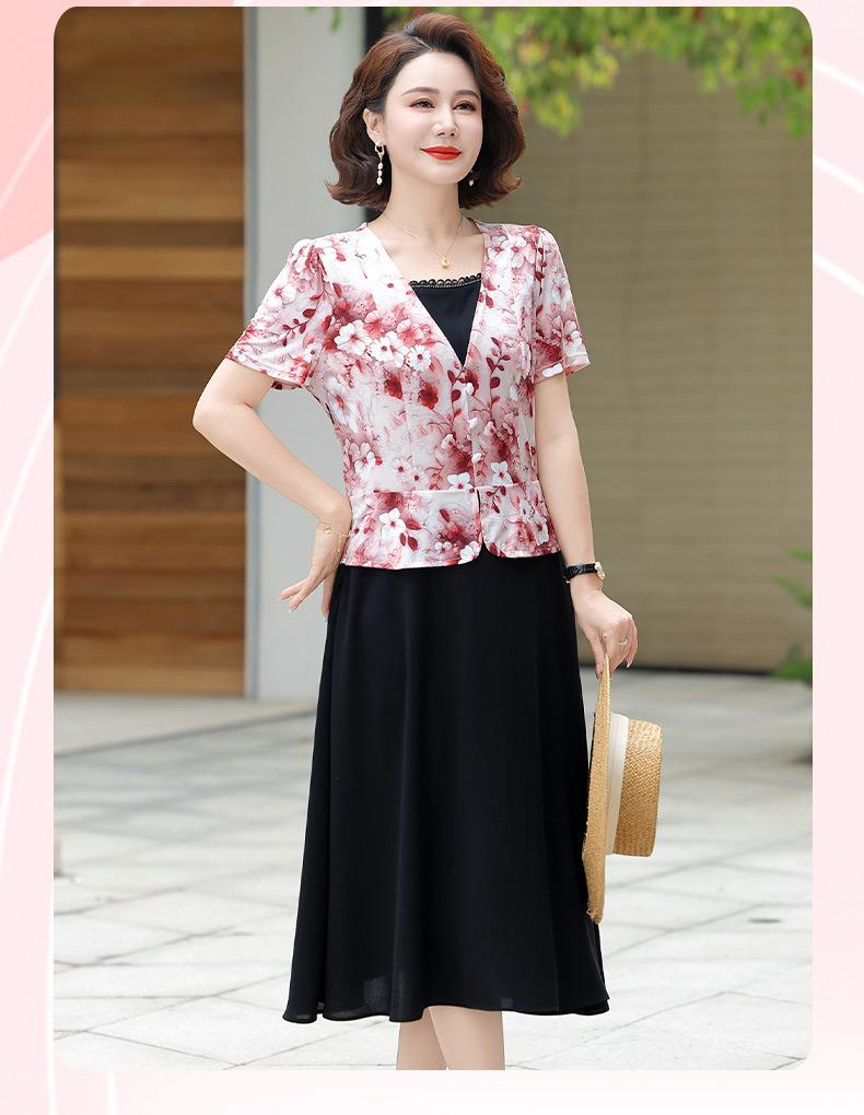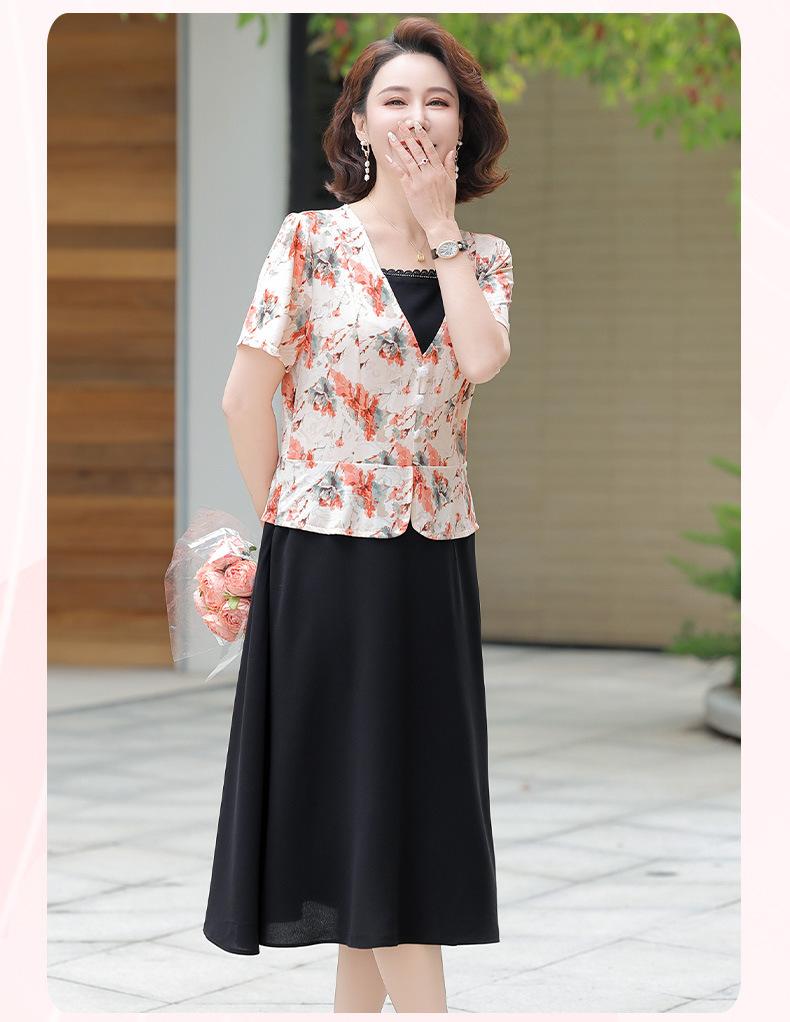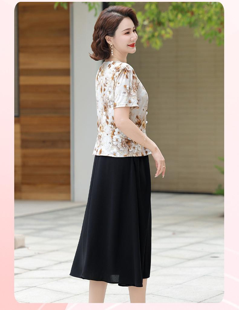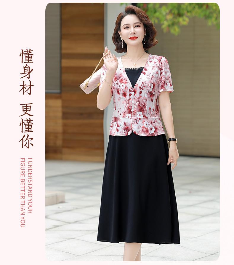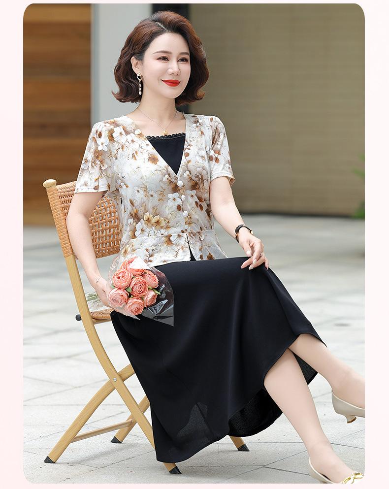Vestido Elegante de Verano de Chifón de Manga Corta para Mamá 2025 Nuevo Falda de Dos Piezas de Vacaciones de Verano para Mujeres de Mediana Edad y Adultas Mayores