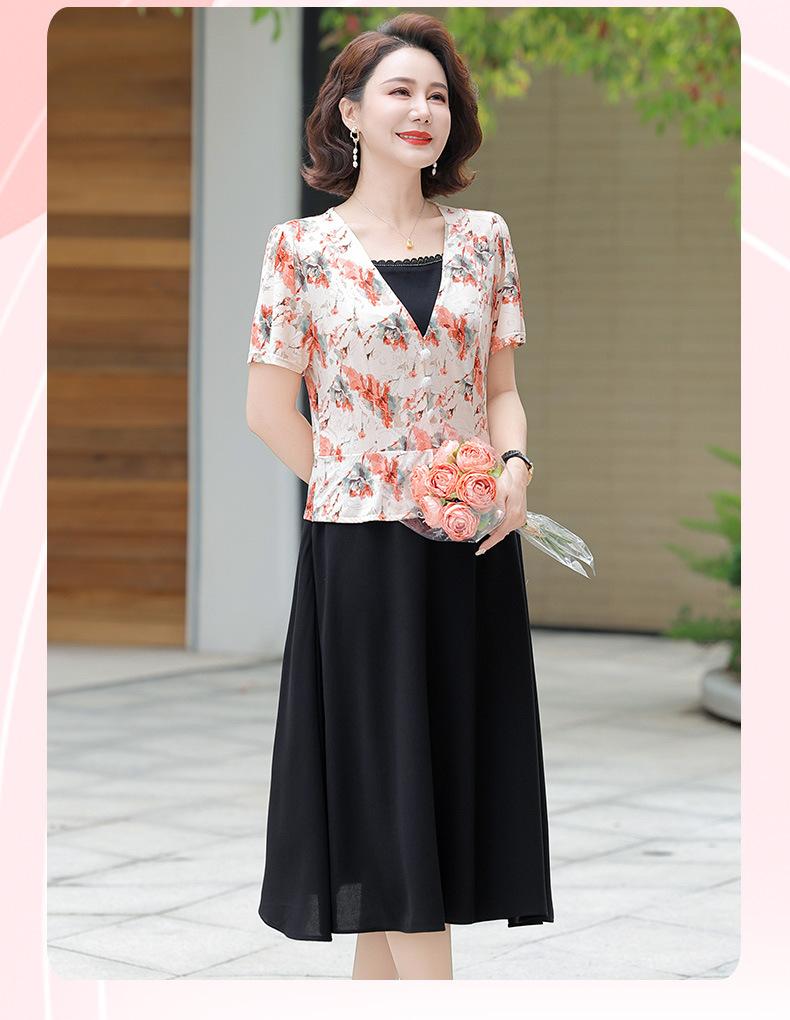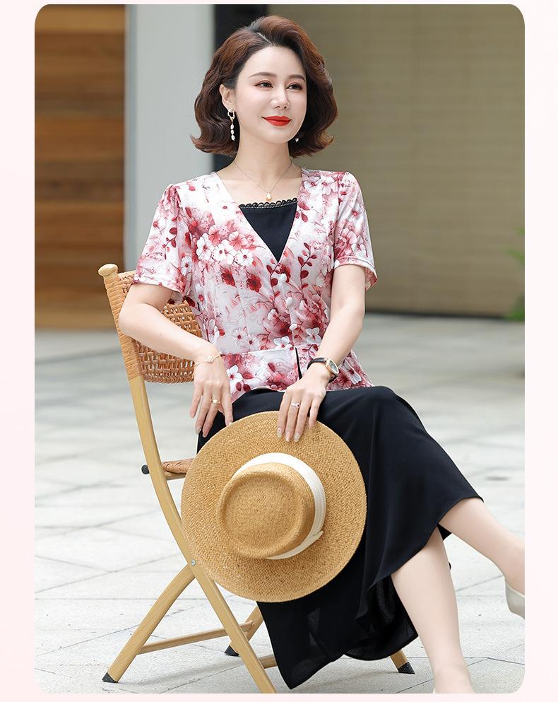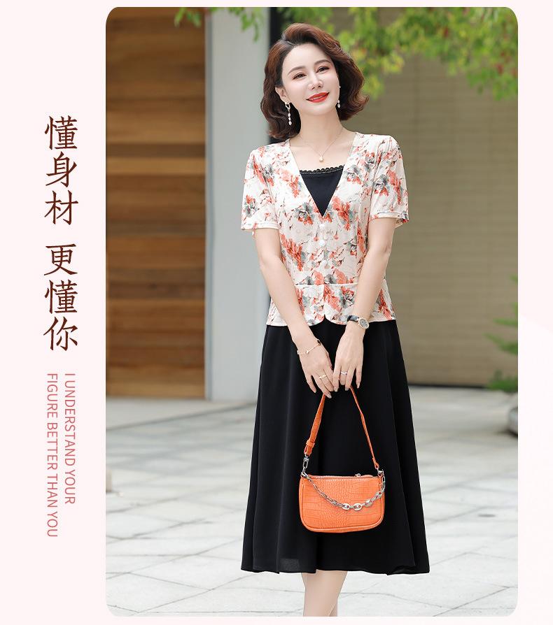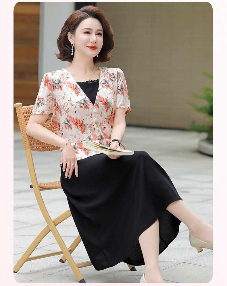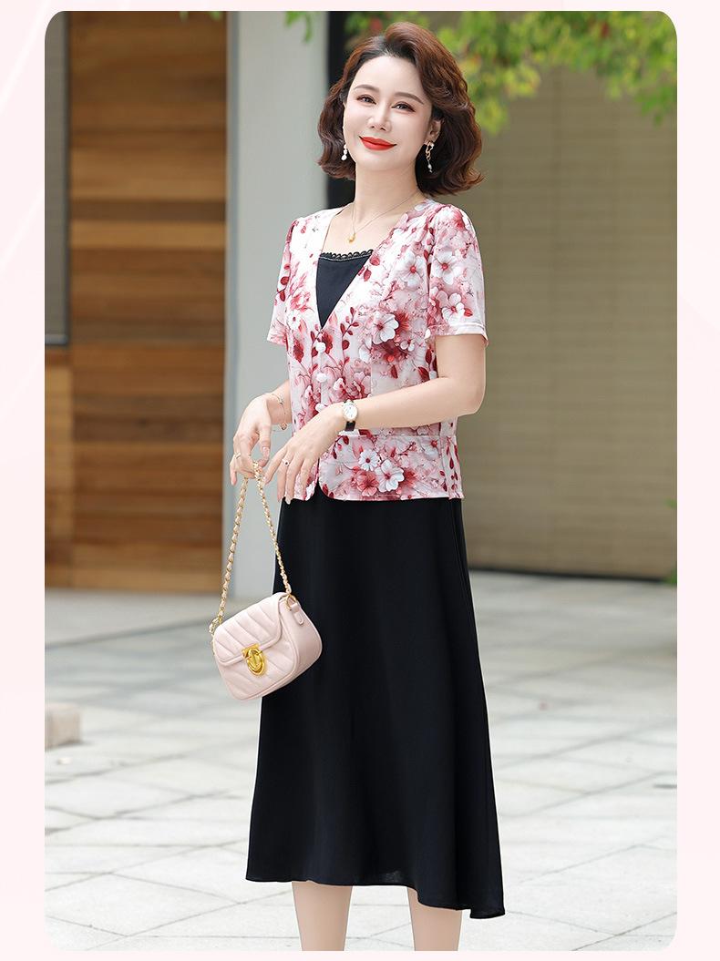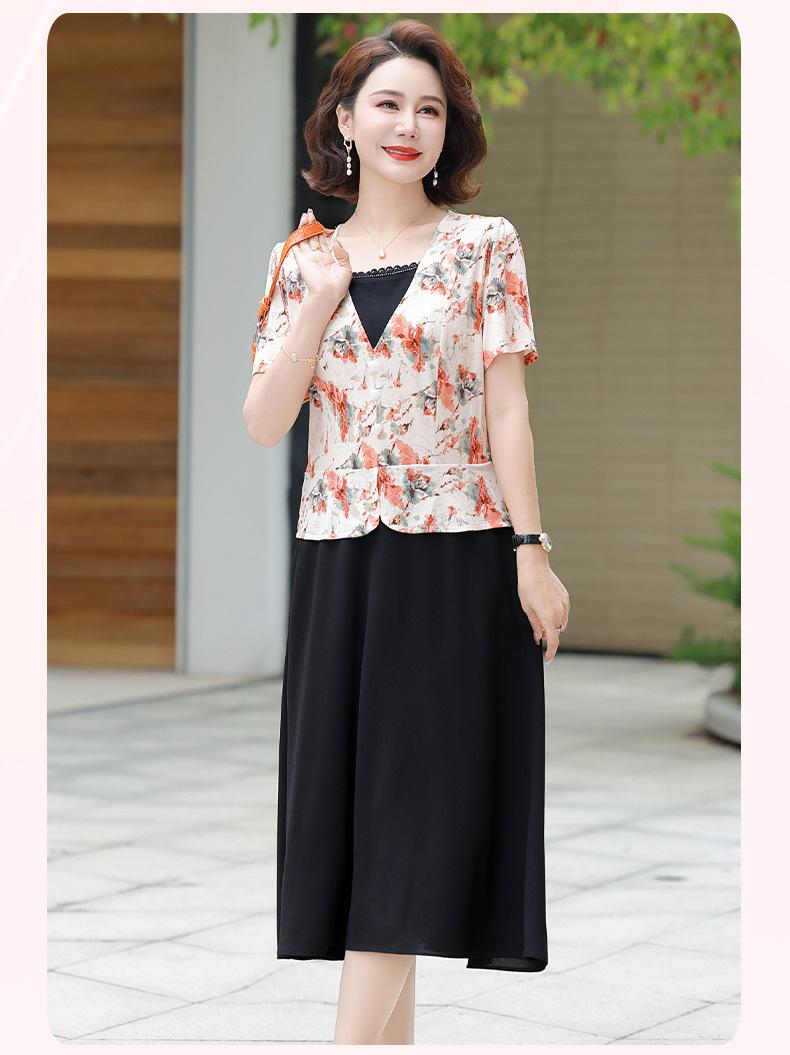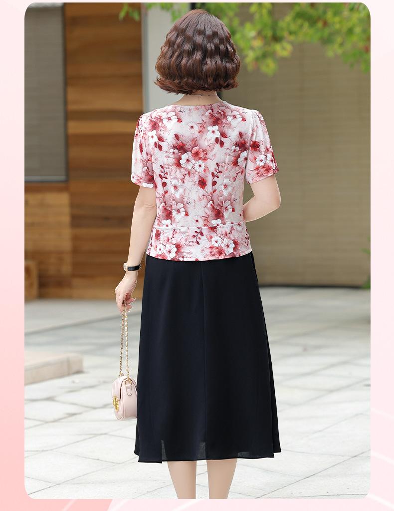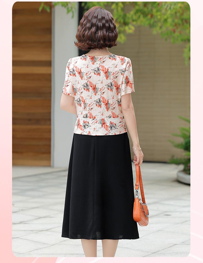 Vestido Elegante de Verano de Chifón de Manga Corta para Mamá 2025 Nuevo Falda de Dos Piezas de Vacaciones de Verano para Mujeres de Mediana Edad y Adultas Mayores