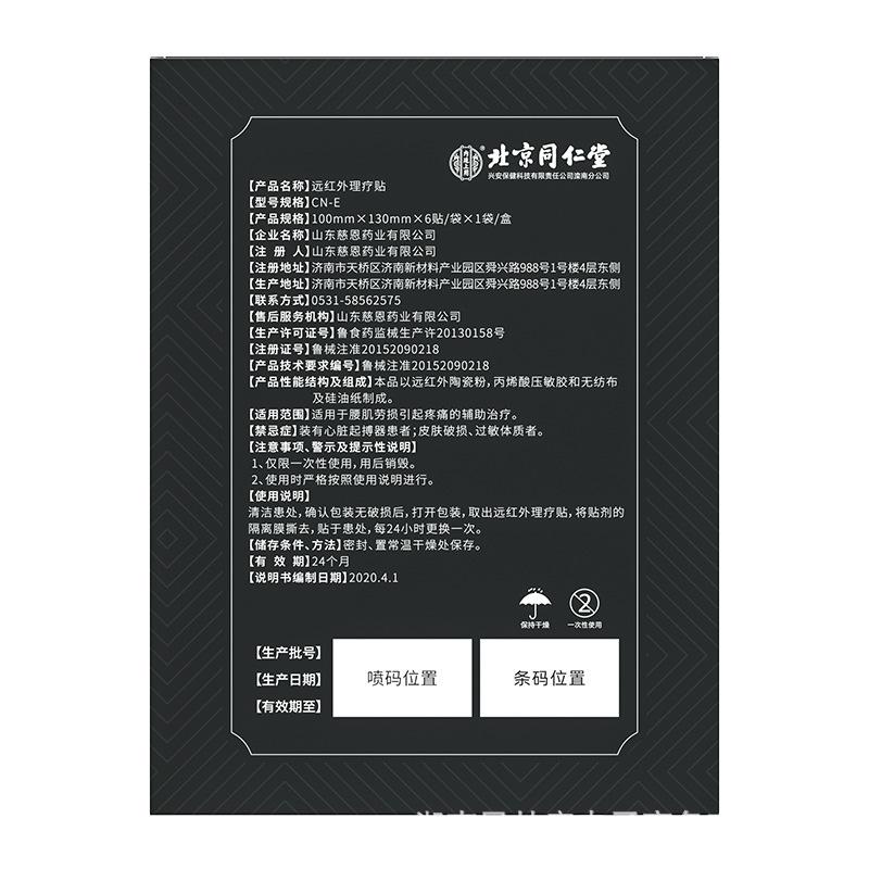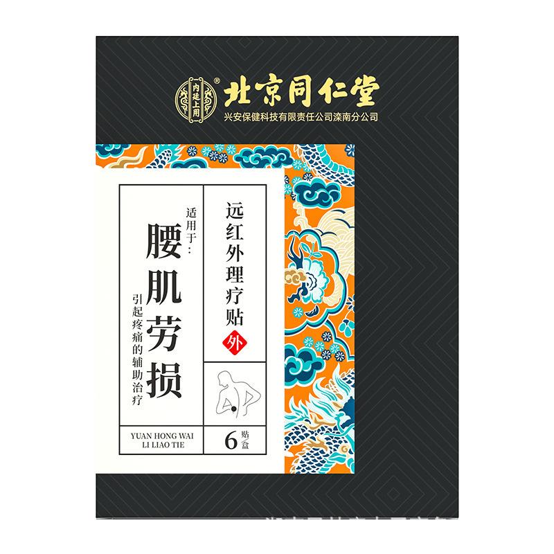 Parche de fisioterapia de infrarrojo lejano para distensión muscular lumbar en el patio interior de Beijing Tongrentang (paquete de 6)
