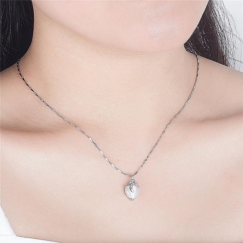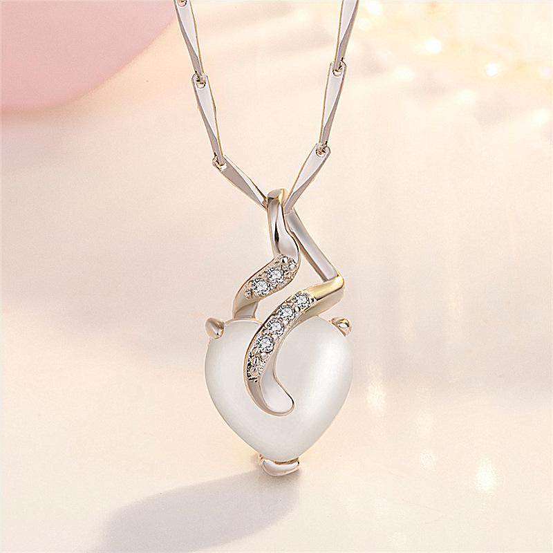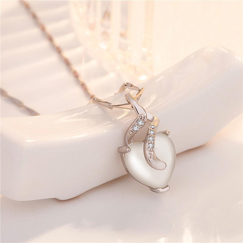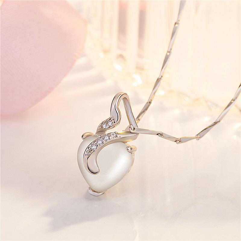 Colgante de Corazón de Piedra de Hibisco Blanco Estilo Coreano Colgante de Corazón de Moda Piedra Ojo de Gato Colgante de Amor Collar Creativo de Venta Caliente