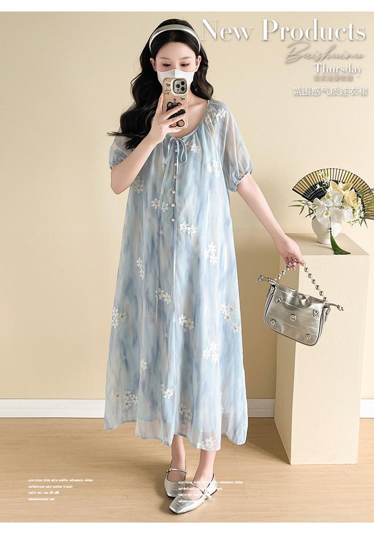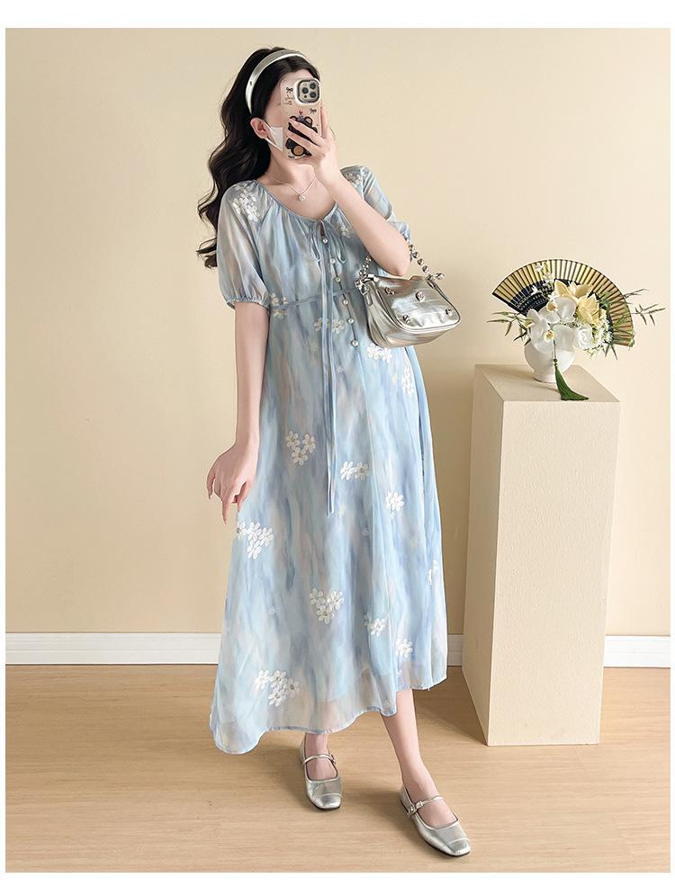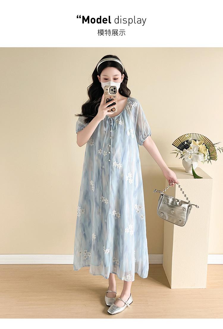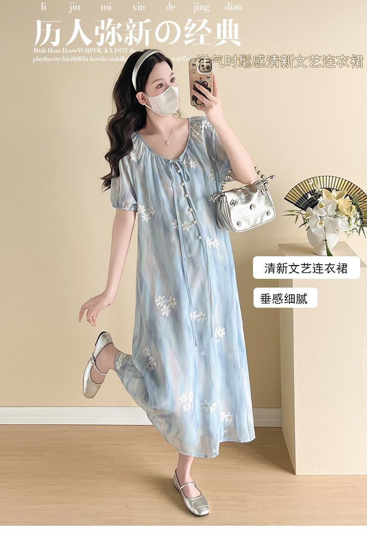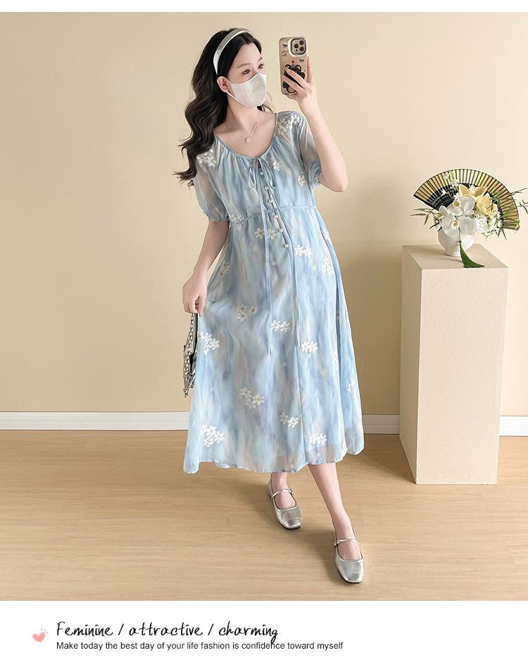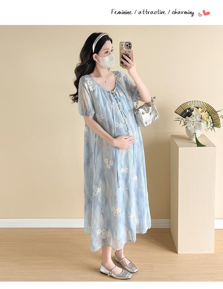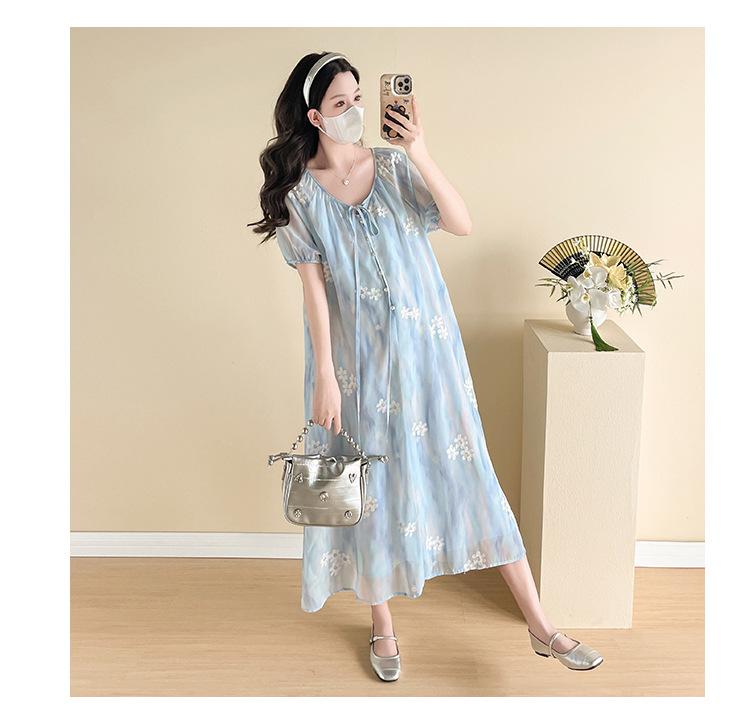 Maternidad 2025 Verano Nuevo Suelto Adelgazante Dulce Floral con Cordones Vestido de Mujer Embarazada Lactancia