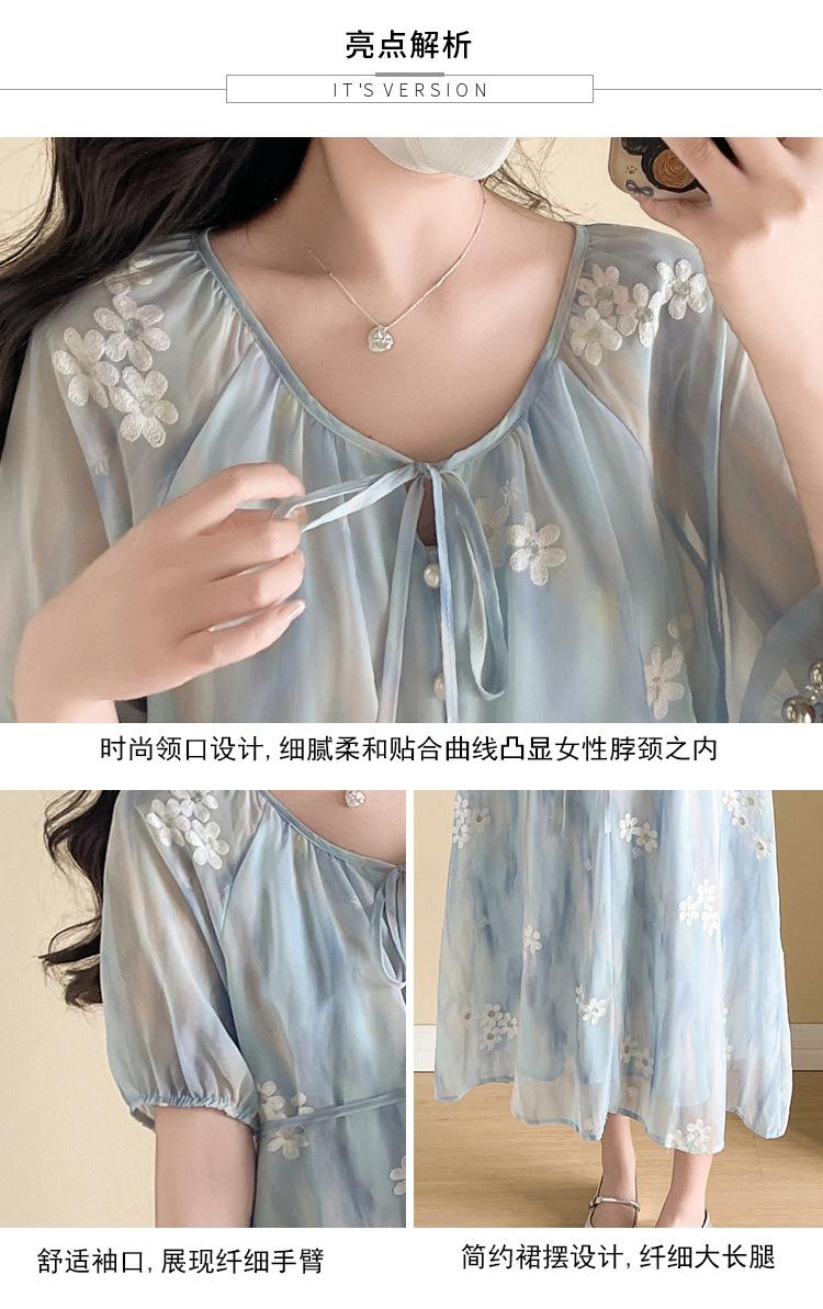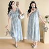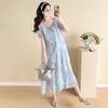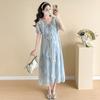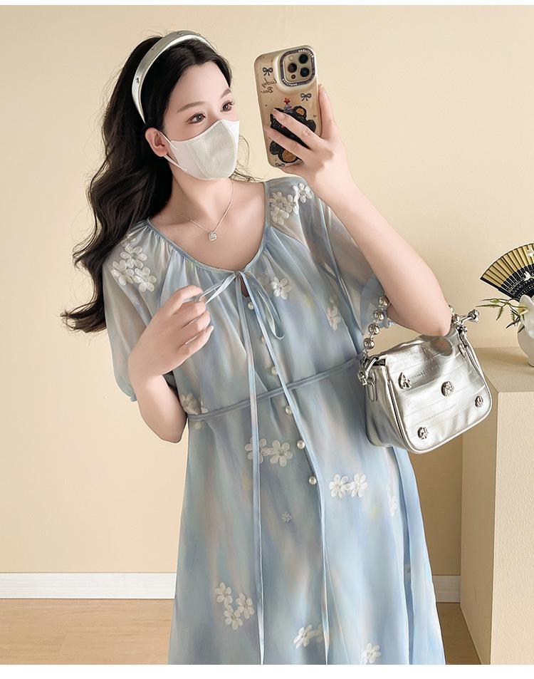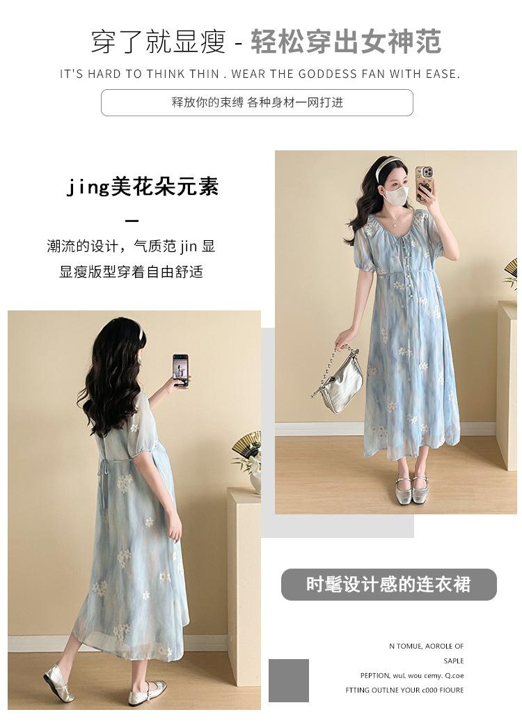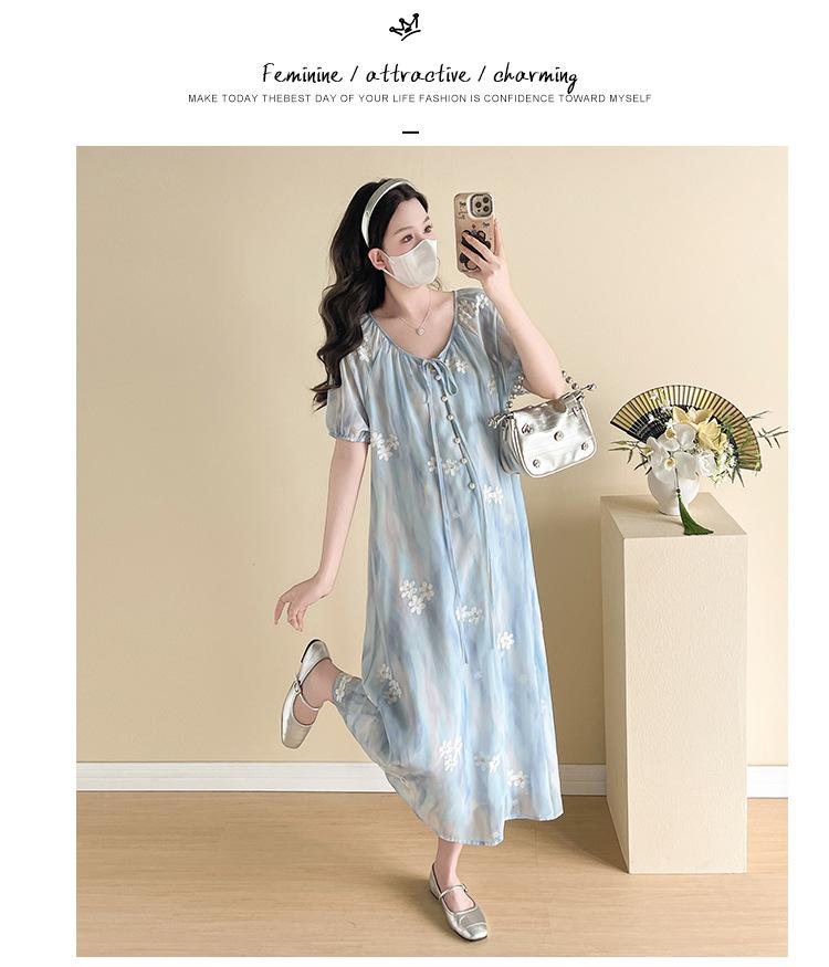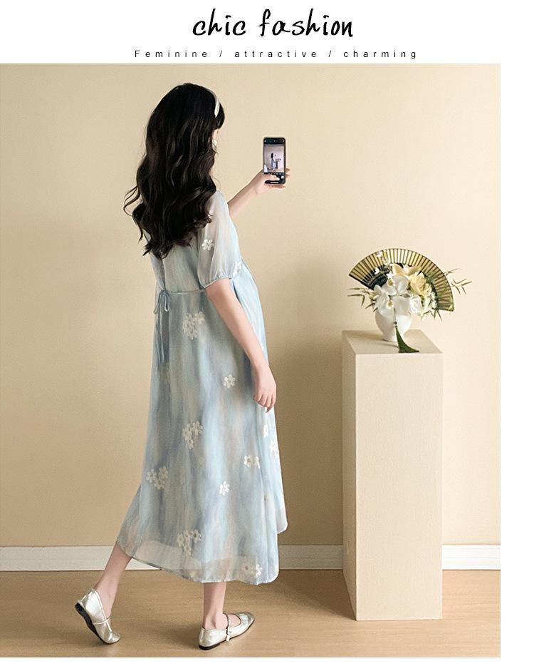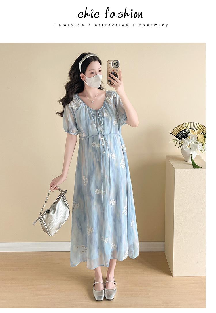 Maternidad 2025 Verano Nuevo Suelto Adelgazante Dulce Floral con Cordones Vestido de Mujer Embarazada Lactancia