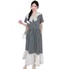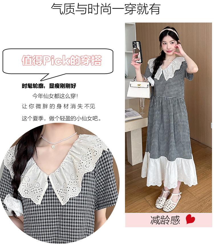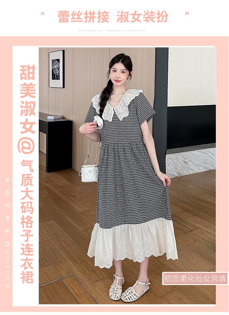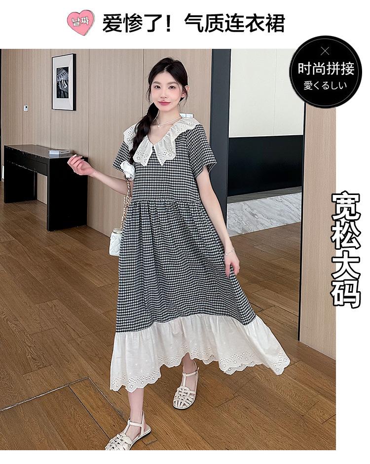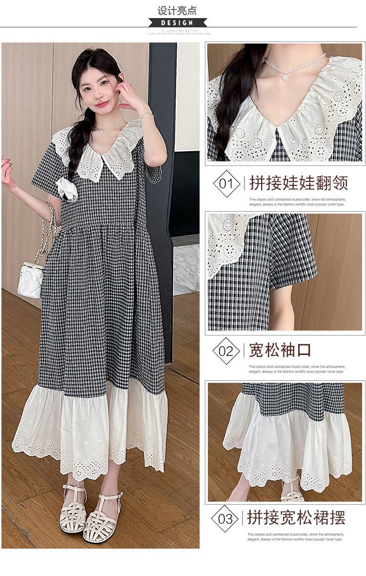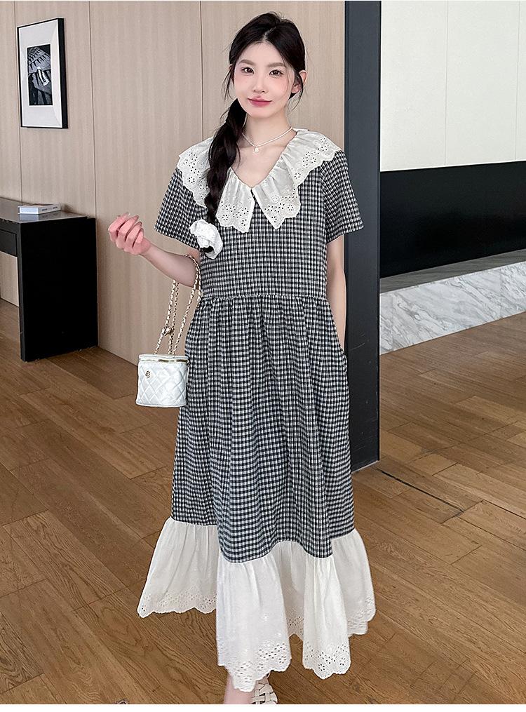 Maternidad 2025 Verano Nuevo Encaje Encaje Costuras a Cuadros Cuello en V Temperamento Retro Francés Vestido de Mujer Embarazada