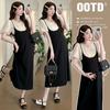 Vestido de maternidad de dos piezas para mujer embarazada, falda tipo chaleco de color liso, de seda helada y protector solar, novedad de verano de 2025