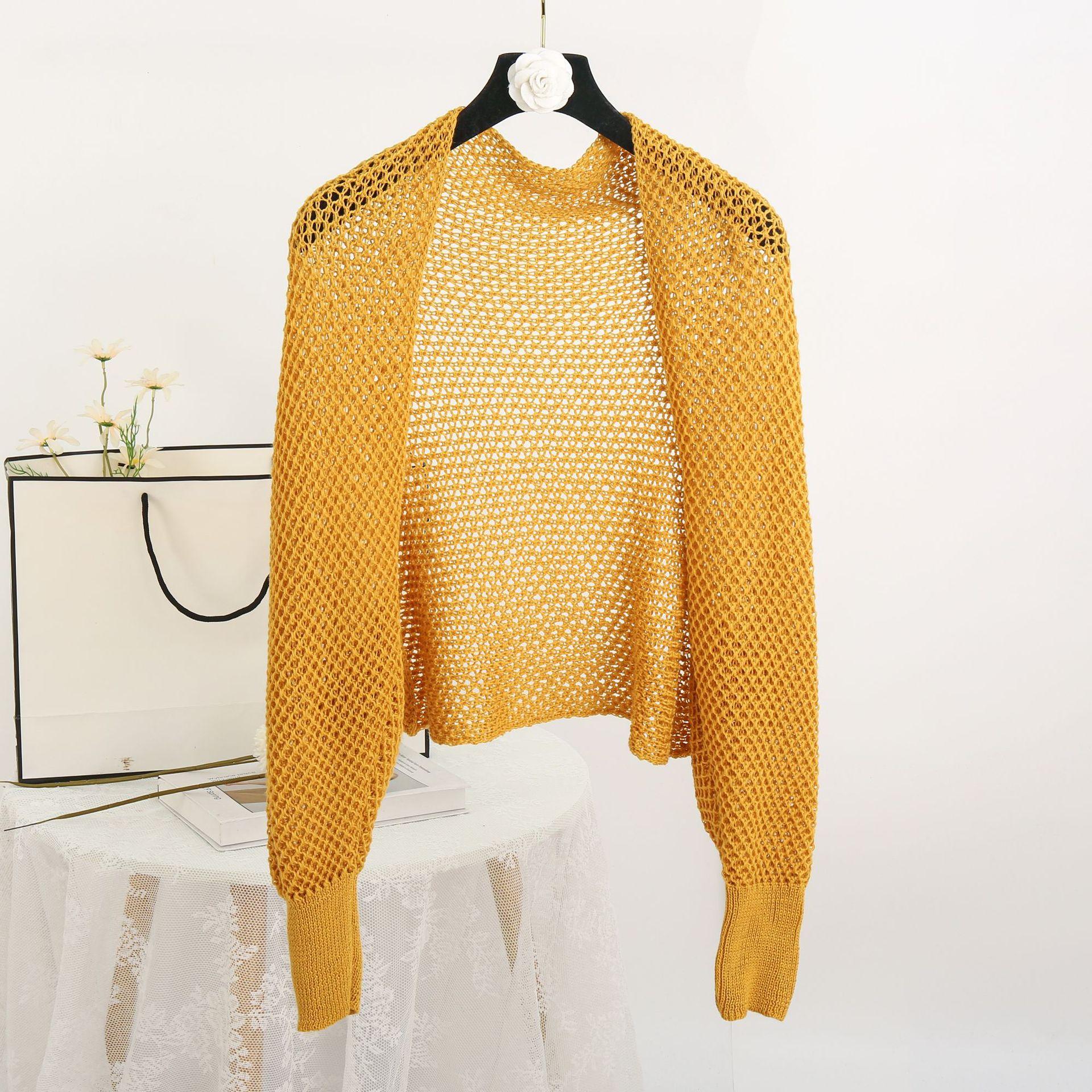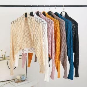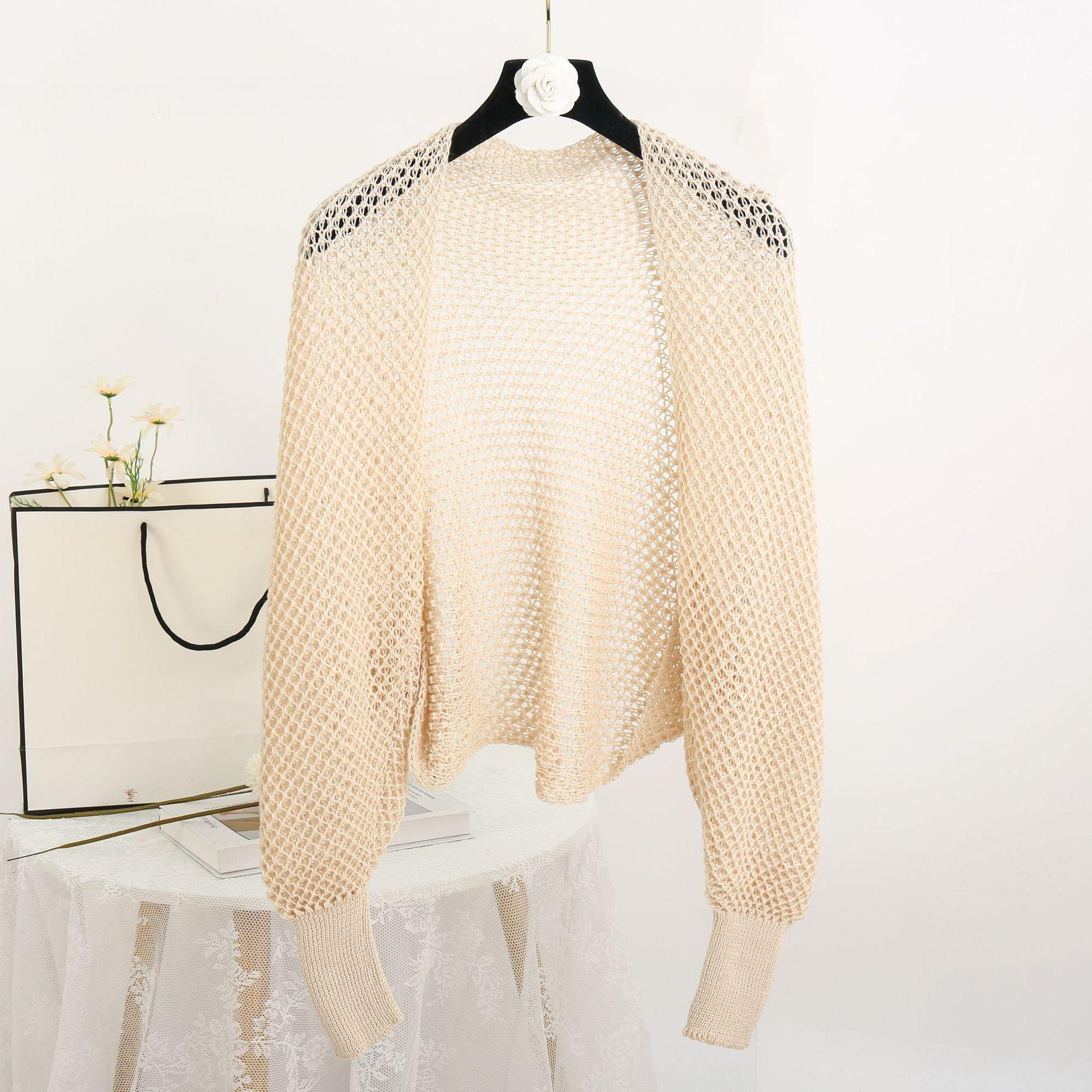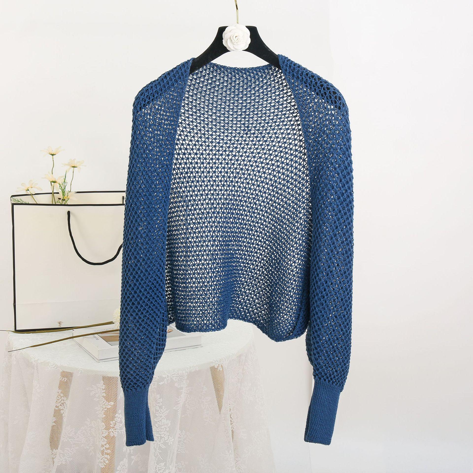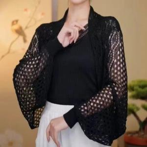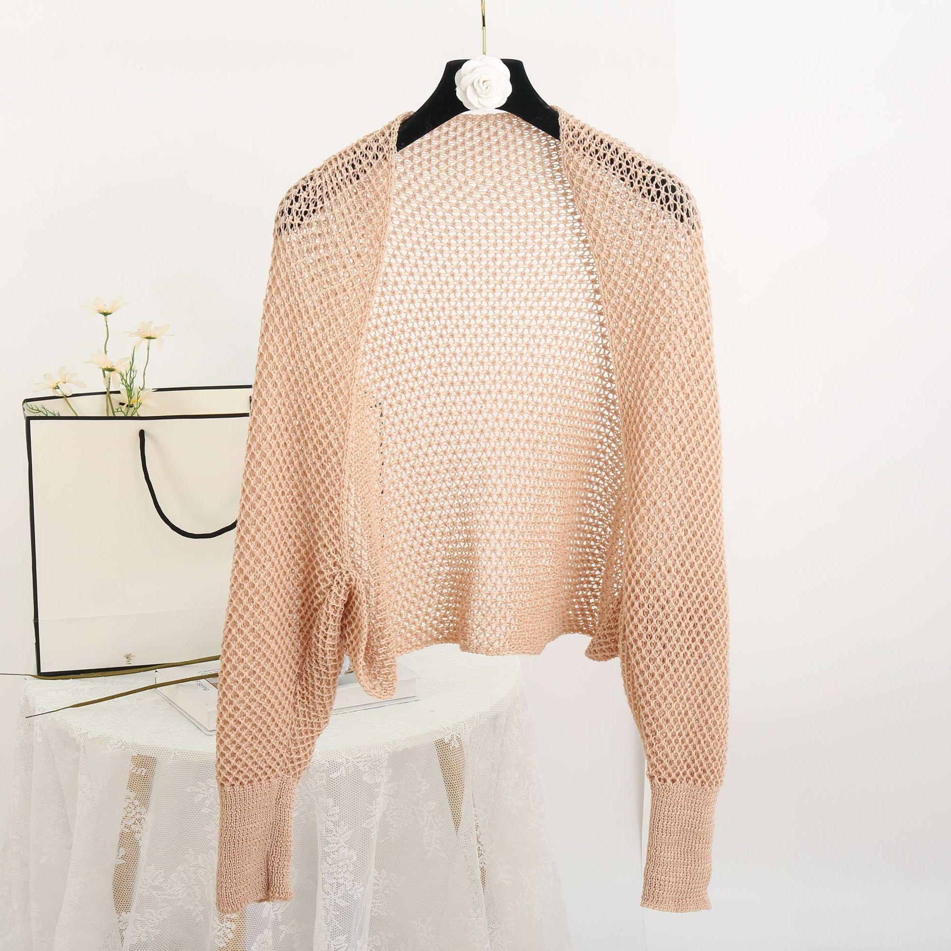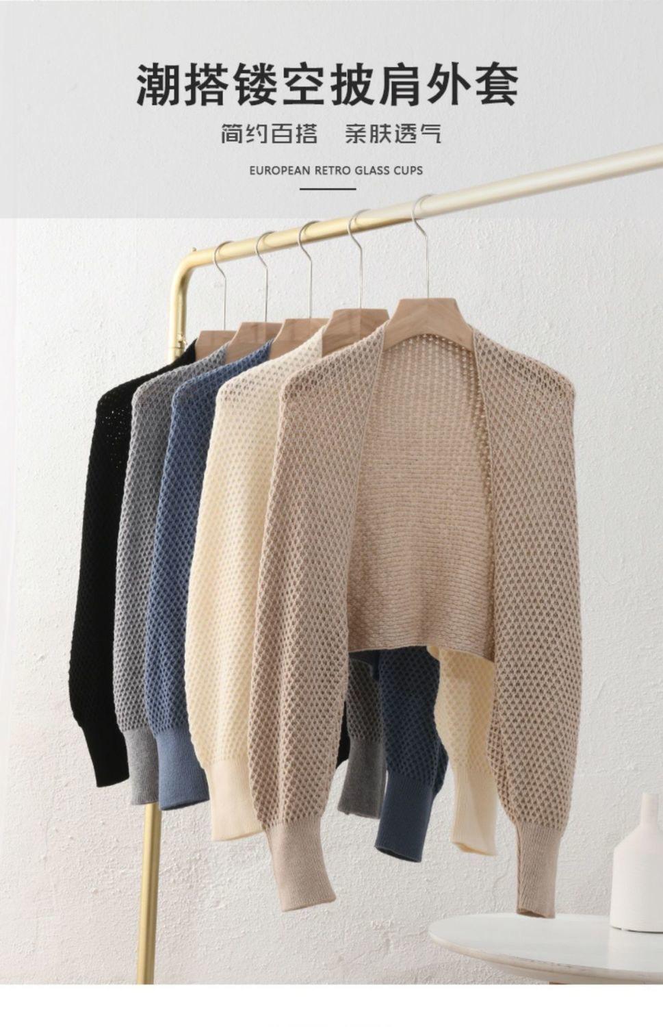 Nuevo Chal de Verano y Primavera para Habitación con Aire Acondicionado Mangas de Malla Chal de Seda Helada Cuello Falso Tejido Chal Exterior Hueco de Moda