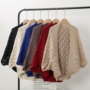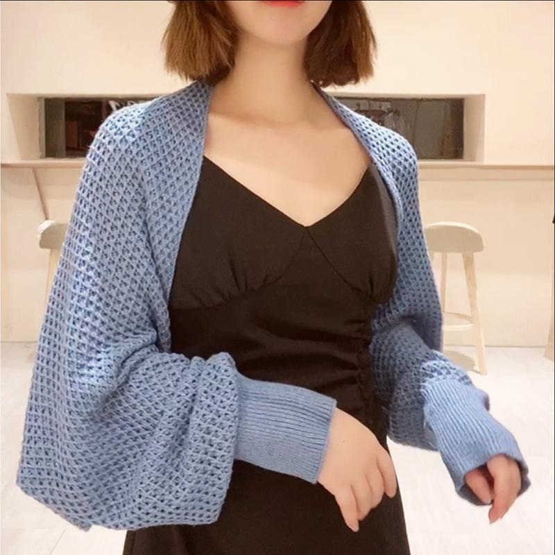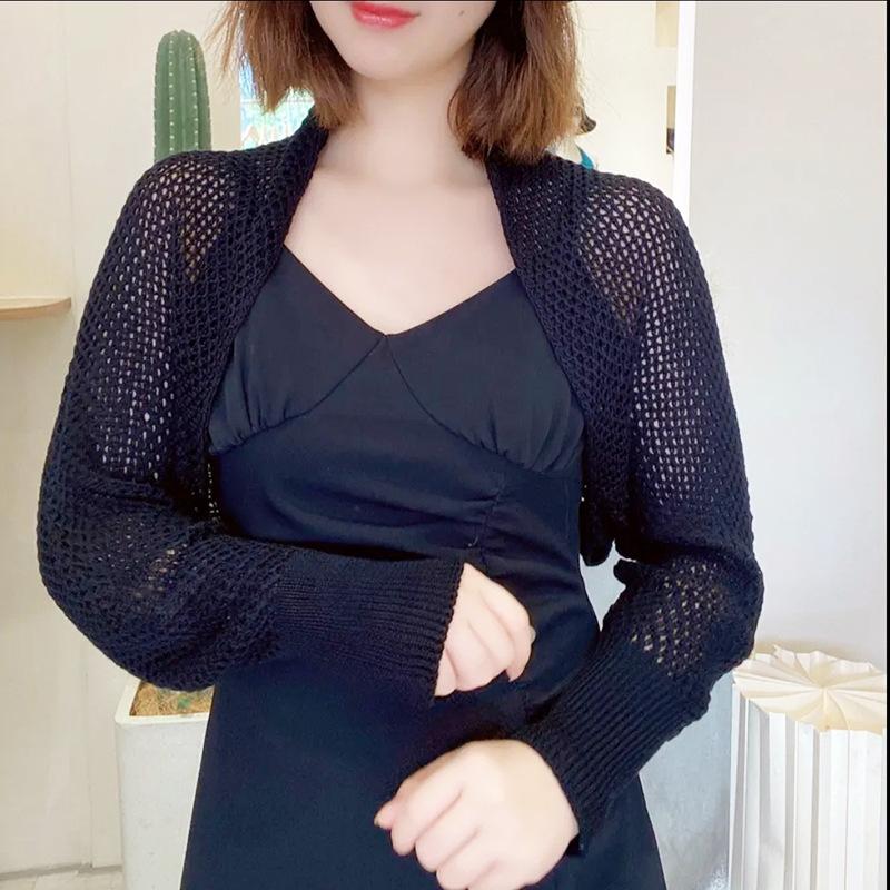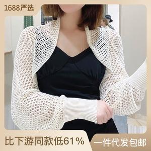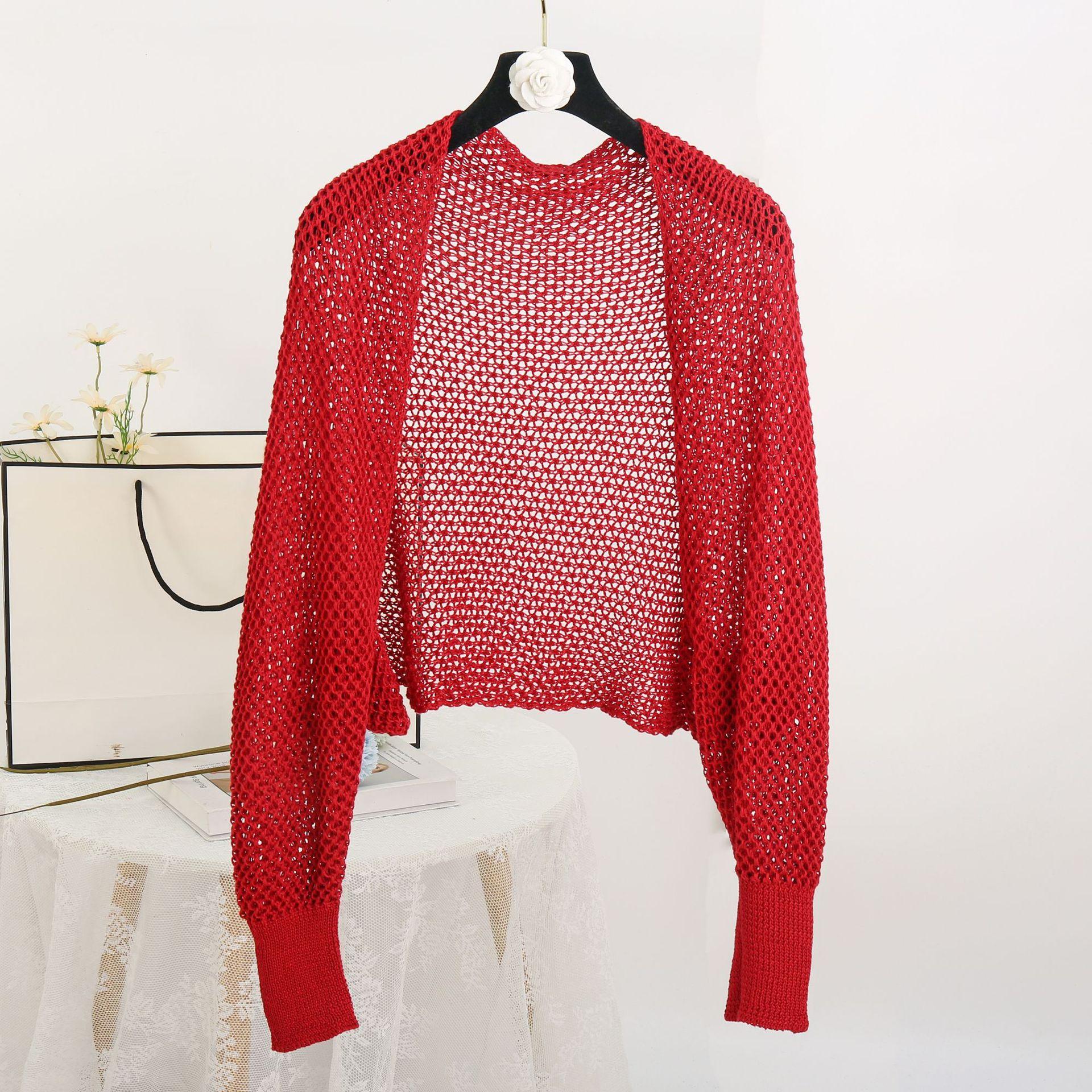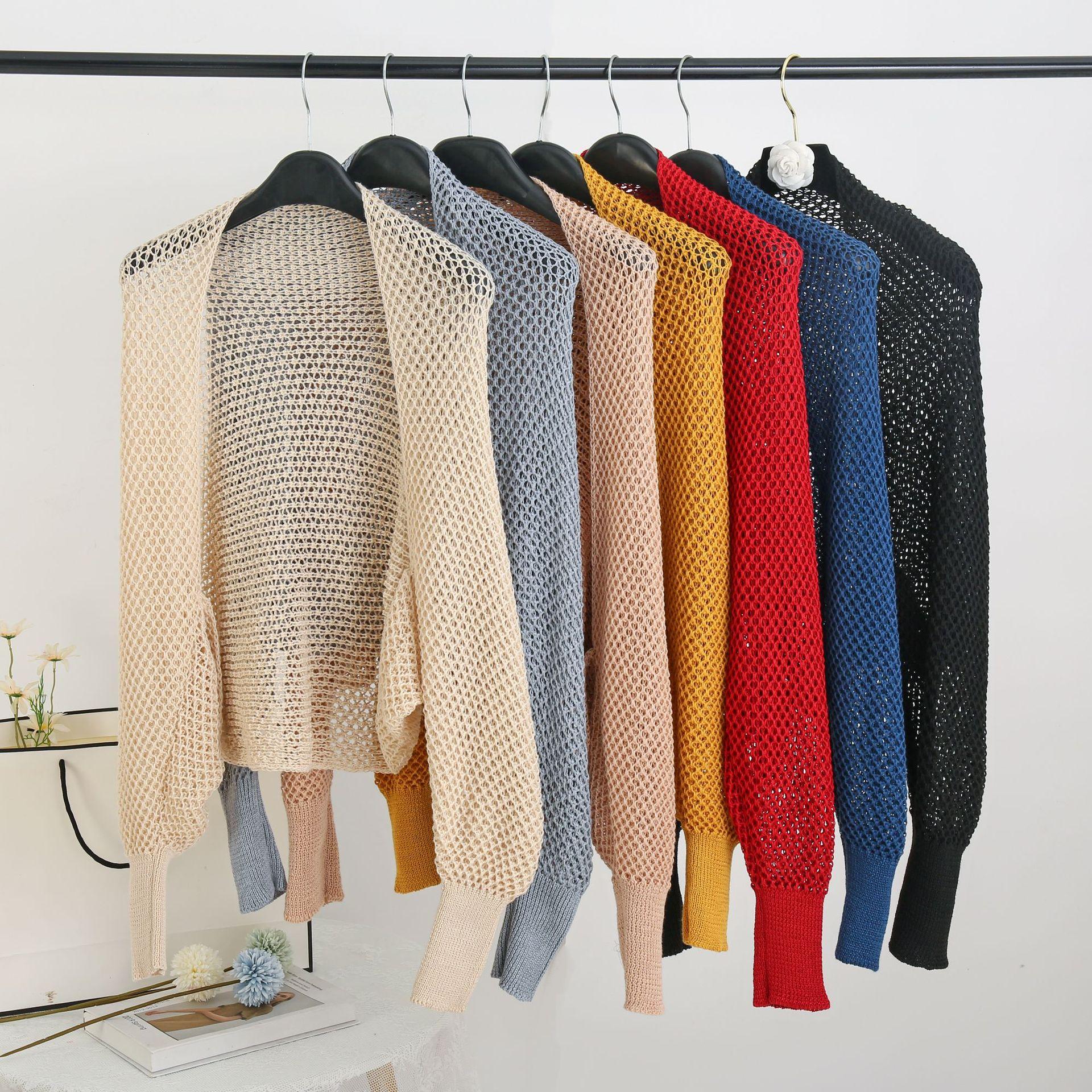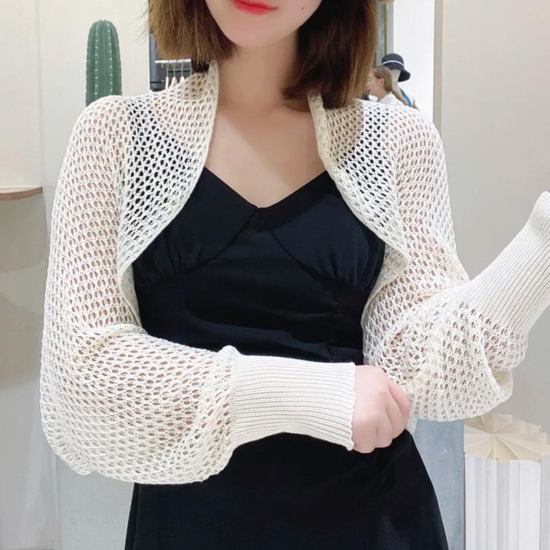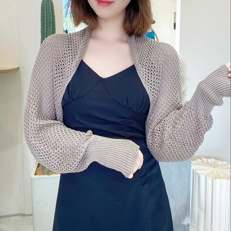 Nuevo Chal de Verano y Primavera para Habitación con Aire Acondicionado Mangas de Malla Chal de Seda Helada Cuello Falso Tejido Chal Exterior Hueco de Moda