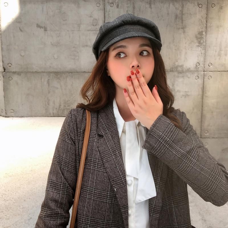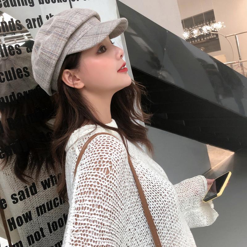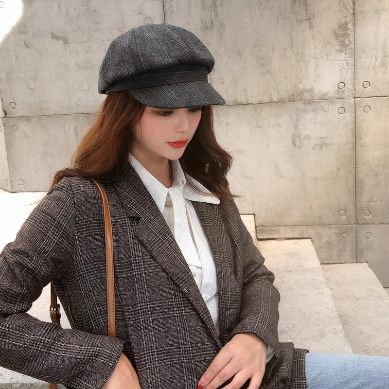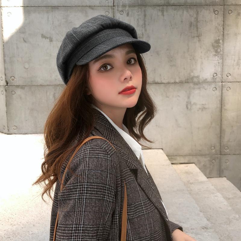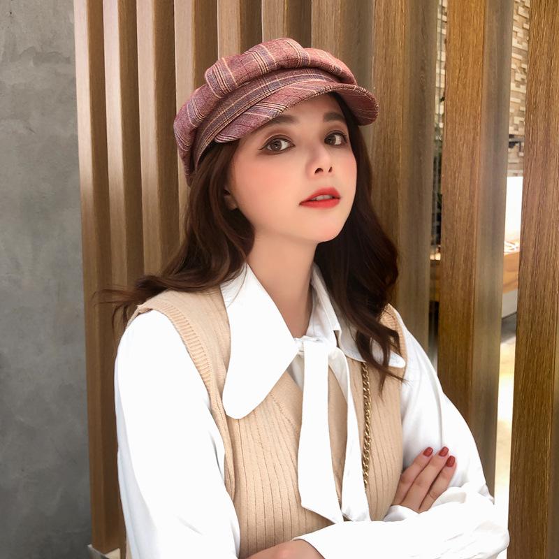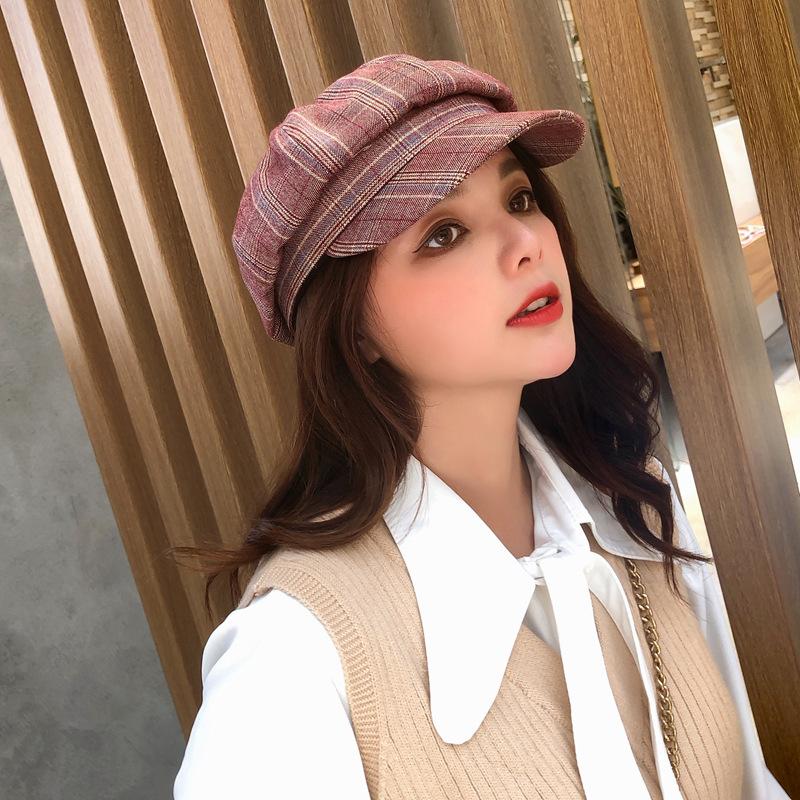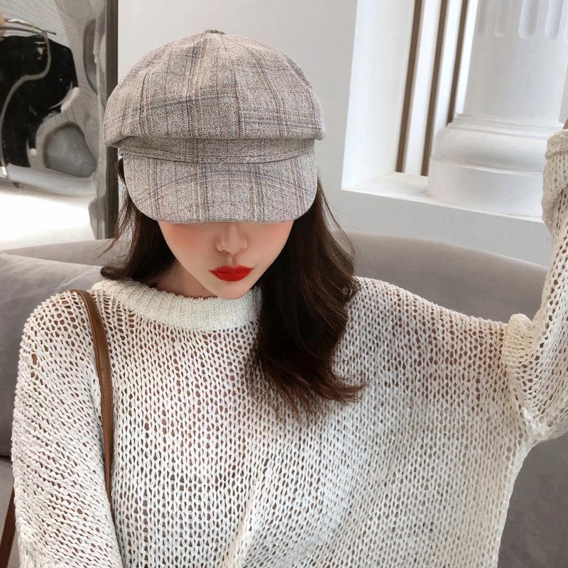 Gorra Octogonal Nueva Versátil Estilo Coreano Gorra Artística a Cuadros Estilo Japonés Boina de Pintor Retro Británica para Hombre y Mujer