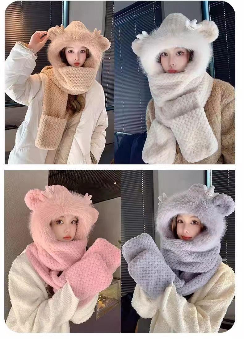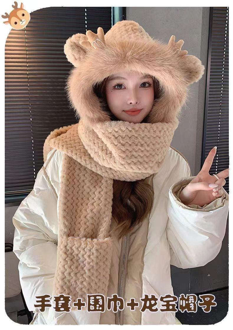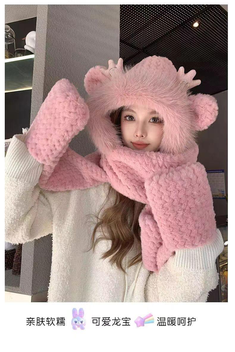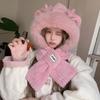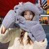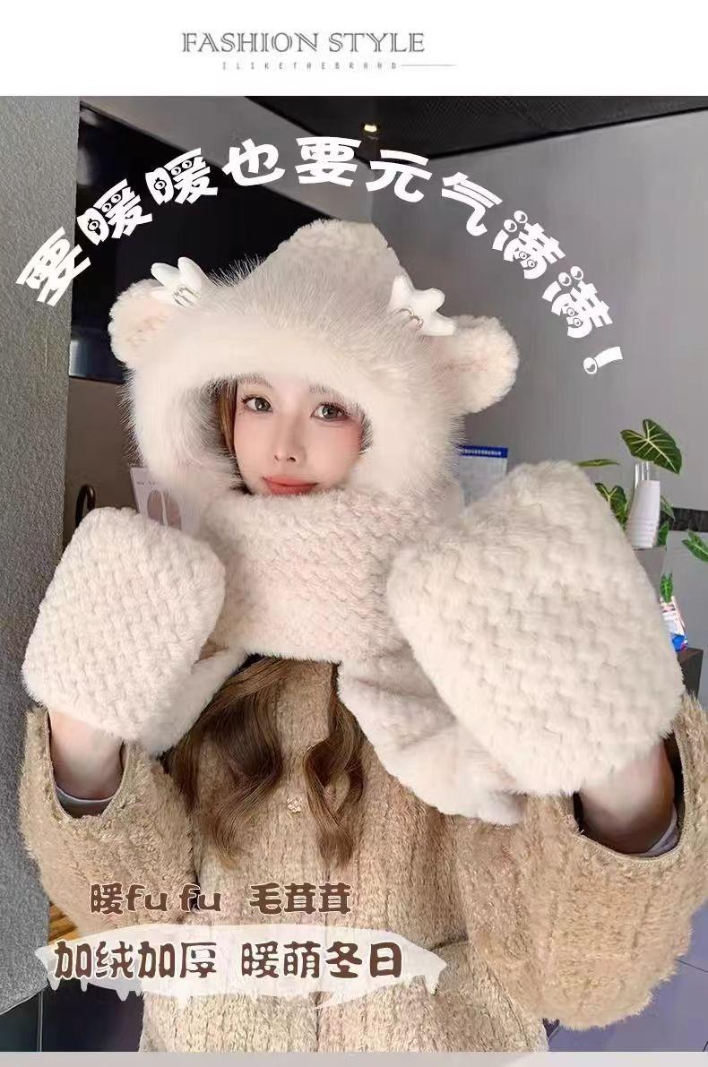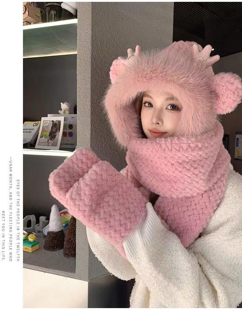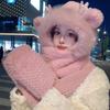 Gorro de Invierno Bufanda y Guantes para Niños Conjunto de Tres Piezas de Una Pieza Gorro Esponjoso Lindo Longbao Bufanda Gruesa Cálido para Montar