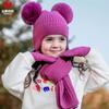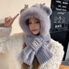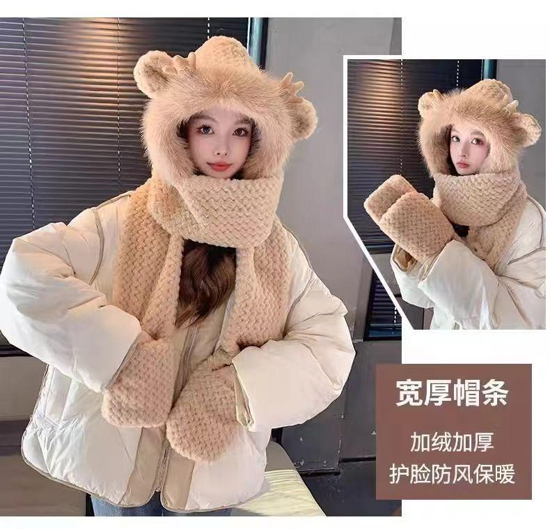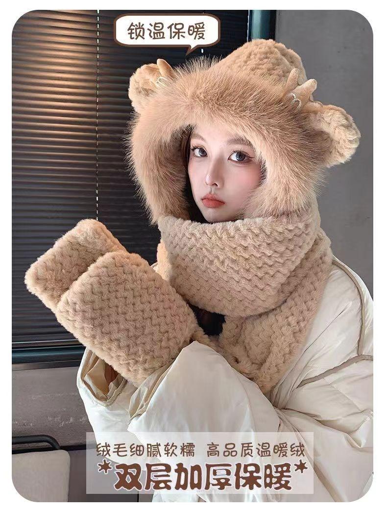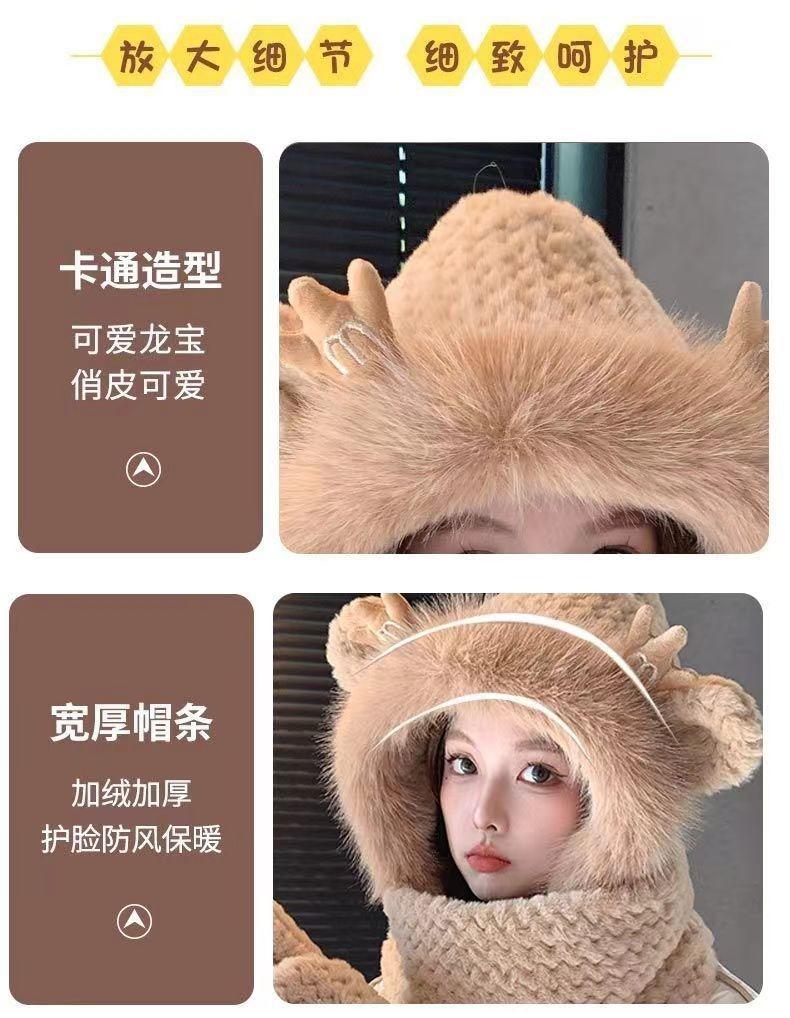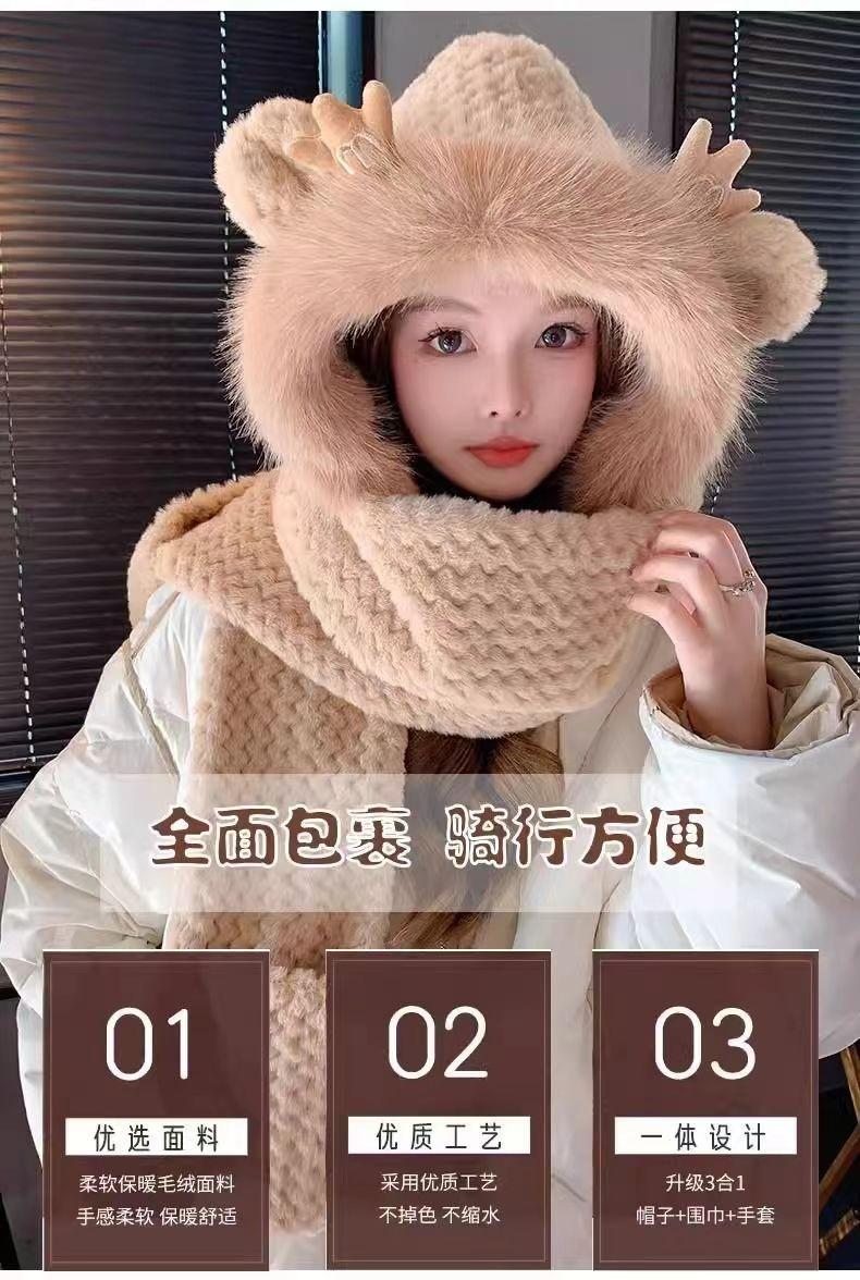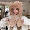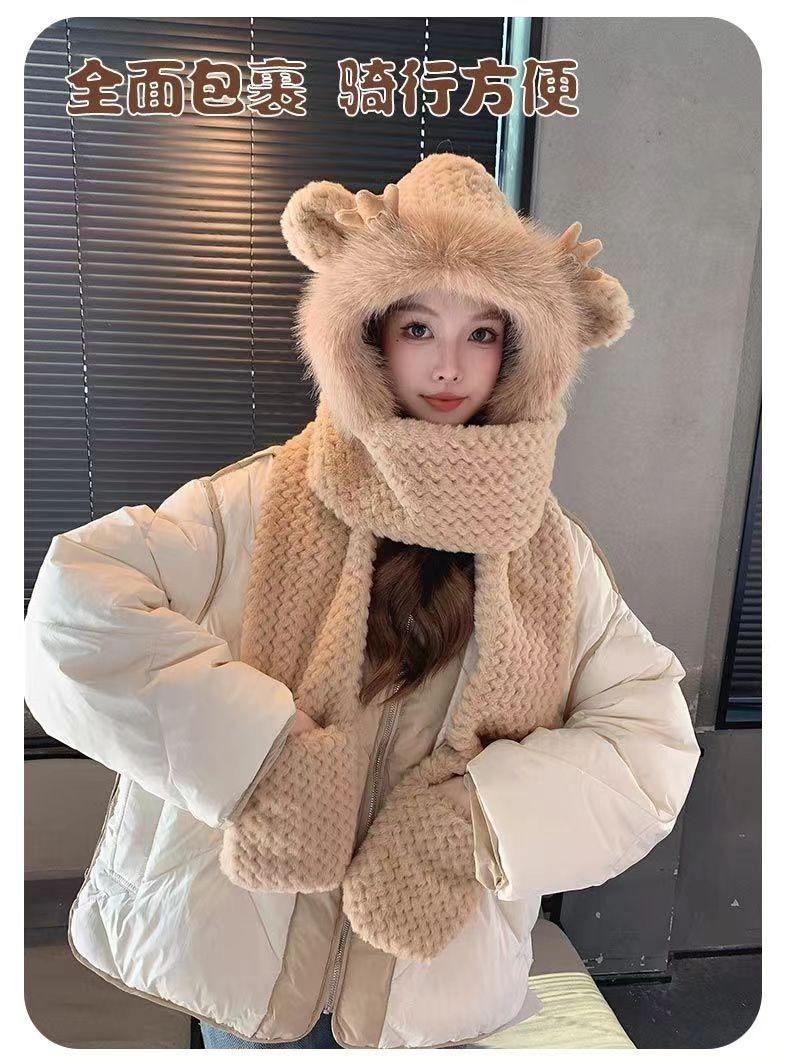 Gorro de Invierno Bufanda y Guantes para Niños Conjunto de Tres Piezas de Una Pieza Gorro Esponjoso Lindo Longbao Bufanda Gruesa Cálido para Montar
