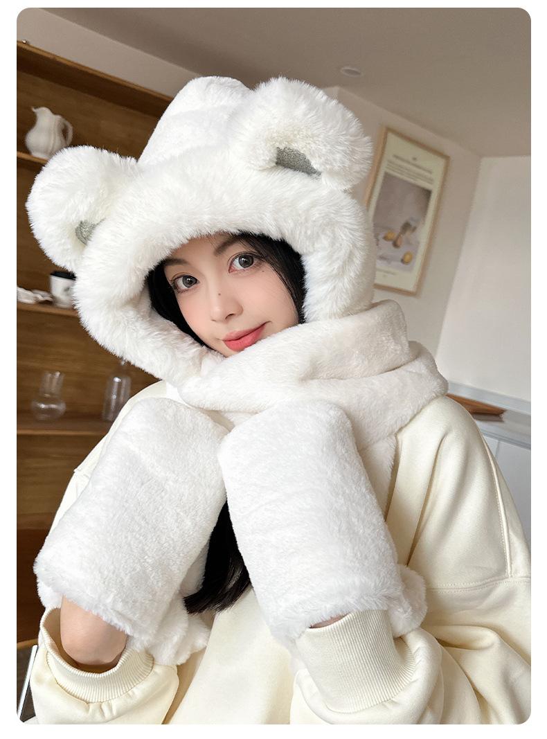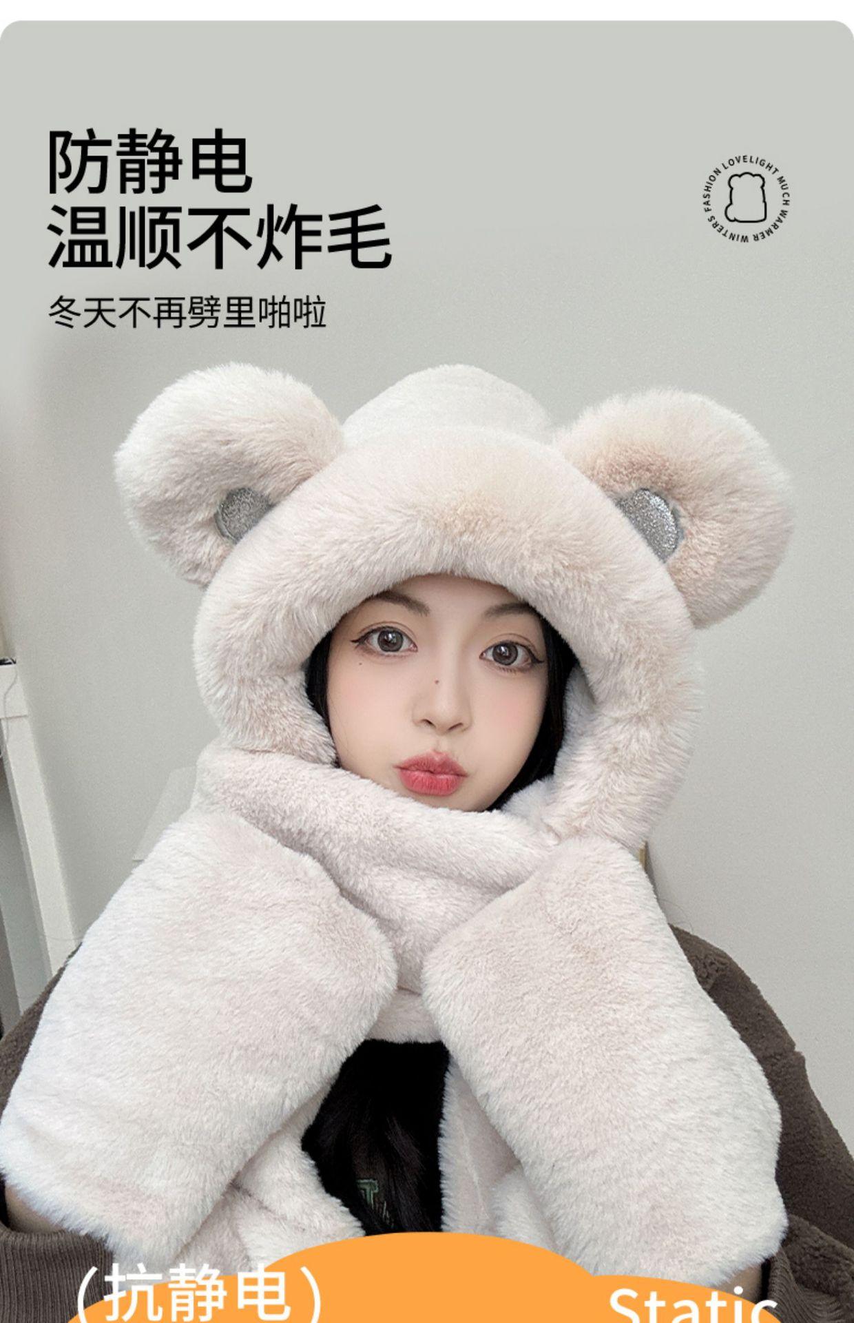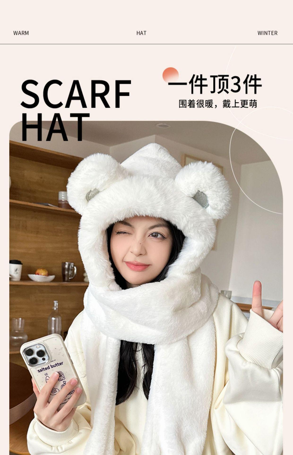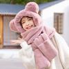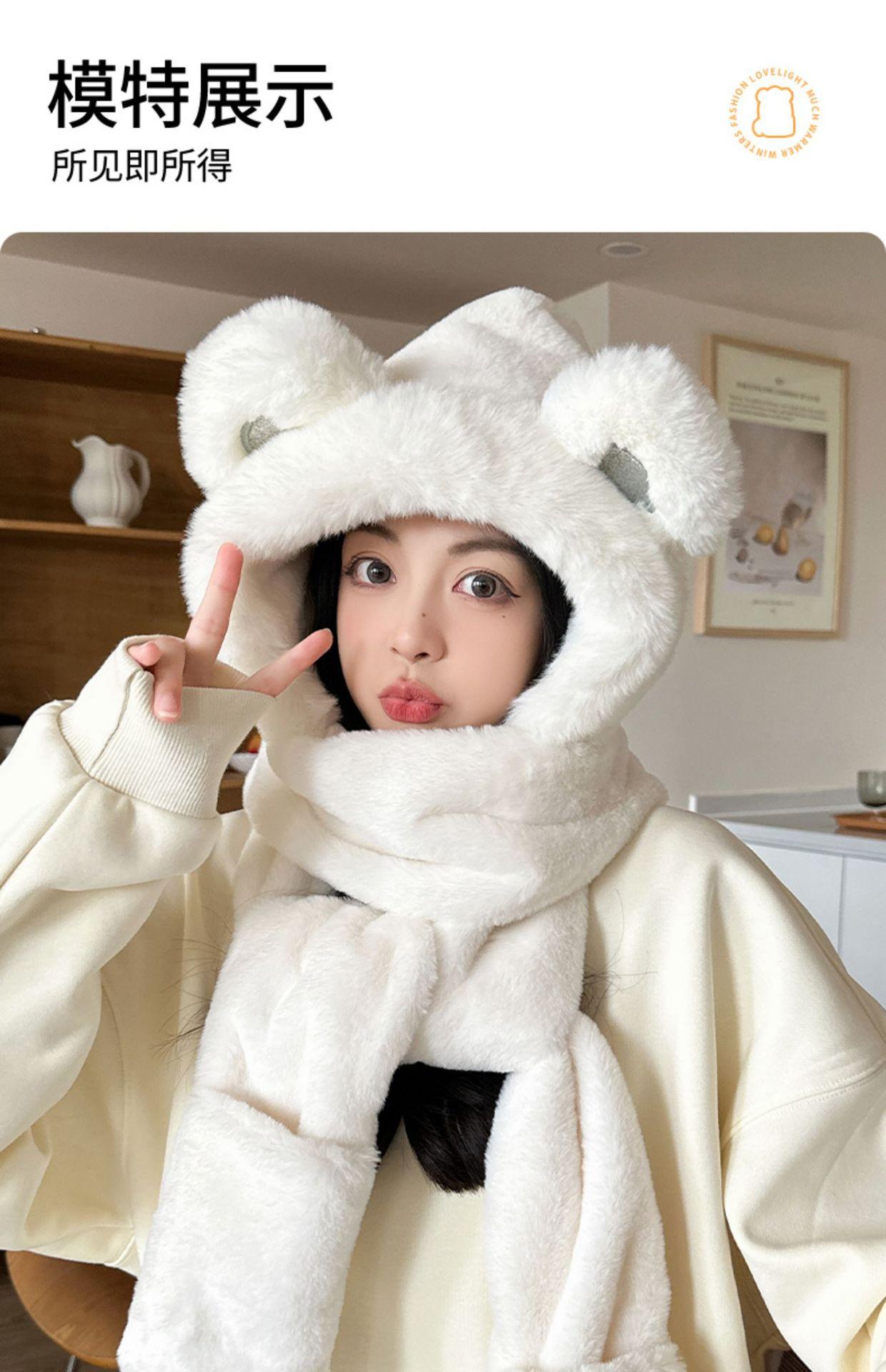 Otoño e Invierno Cálido Sombrero de Felpa y Bufanda Todo en Uno Invierno Lindo Bufanda de Oso con Capucha Protección para los Oídos a Prueba de Viento Set de Tres Piezas