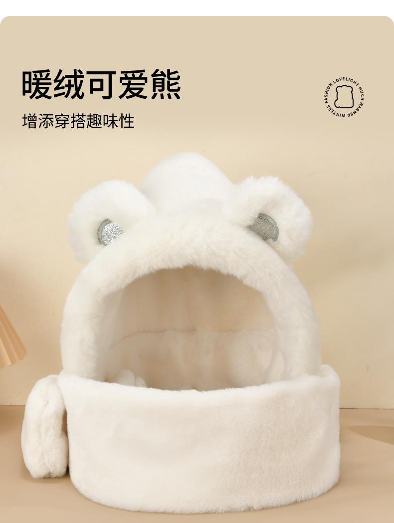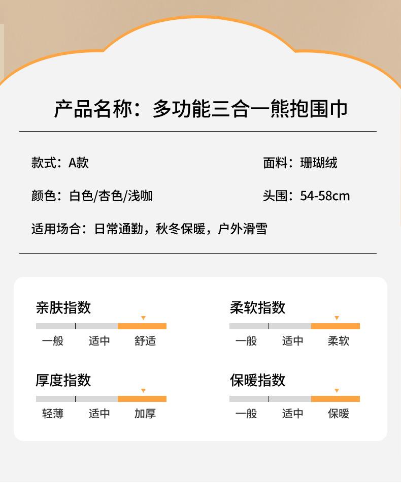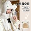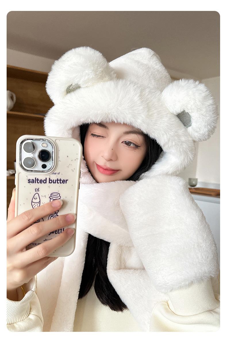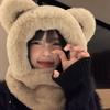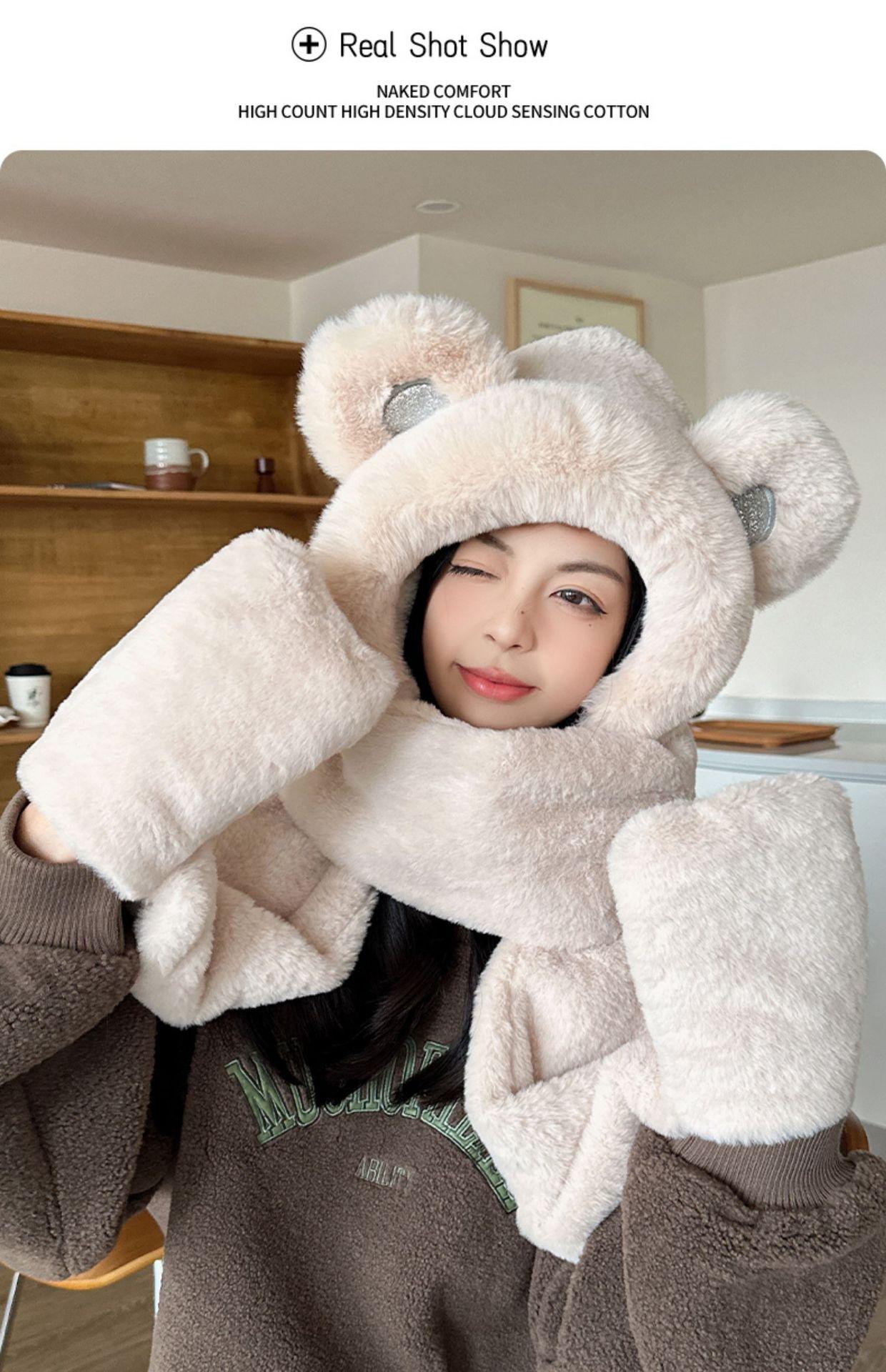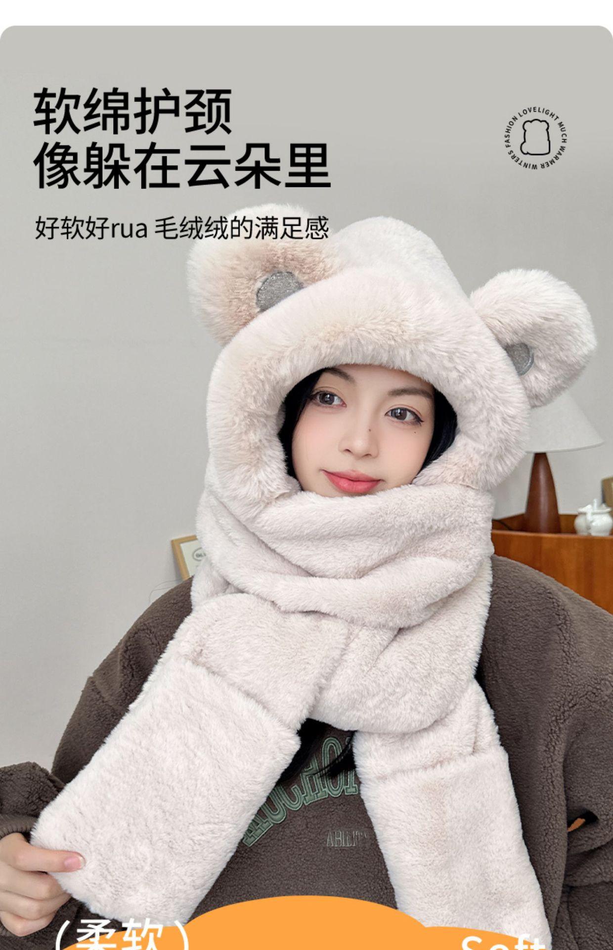 Otoño e Invierno Cálido Sombrero de Felpa y Bufanda Todo en Uno Invierno Lindo Bufanda de Oso con Capucha Protección para los Oídos a Prueba de Viento Set de Tres Piezas