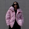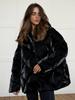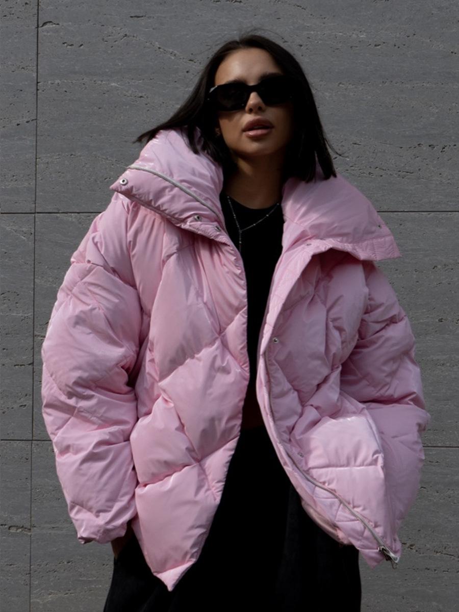 2024 otoño nueva moda personalizado color sólido cálido solapa brillante diseño de cremallera manga larga algodón acolchado chaqueta