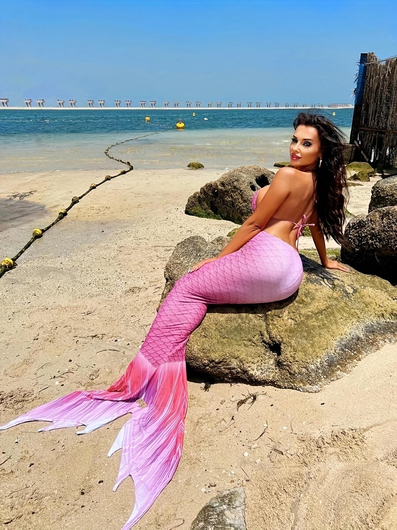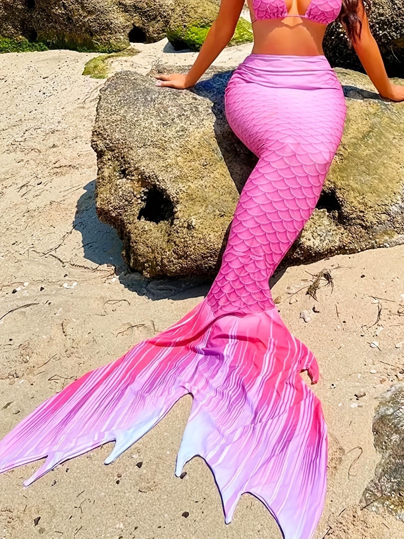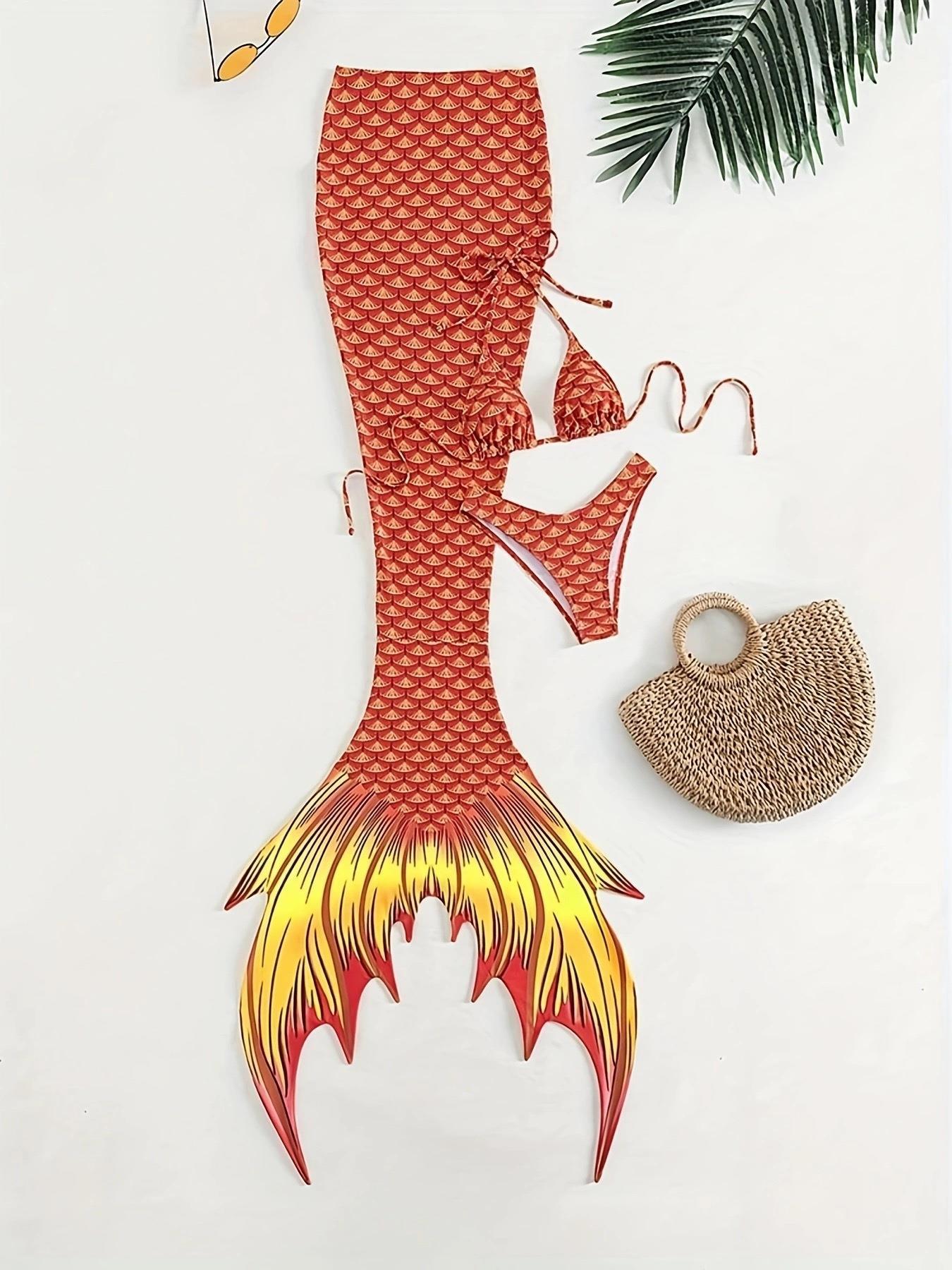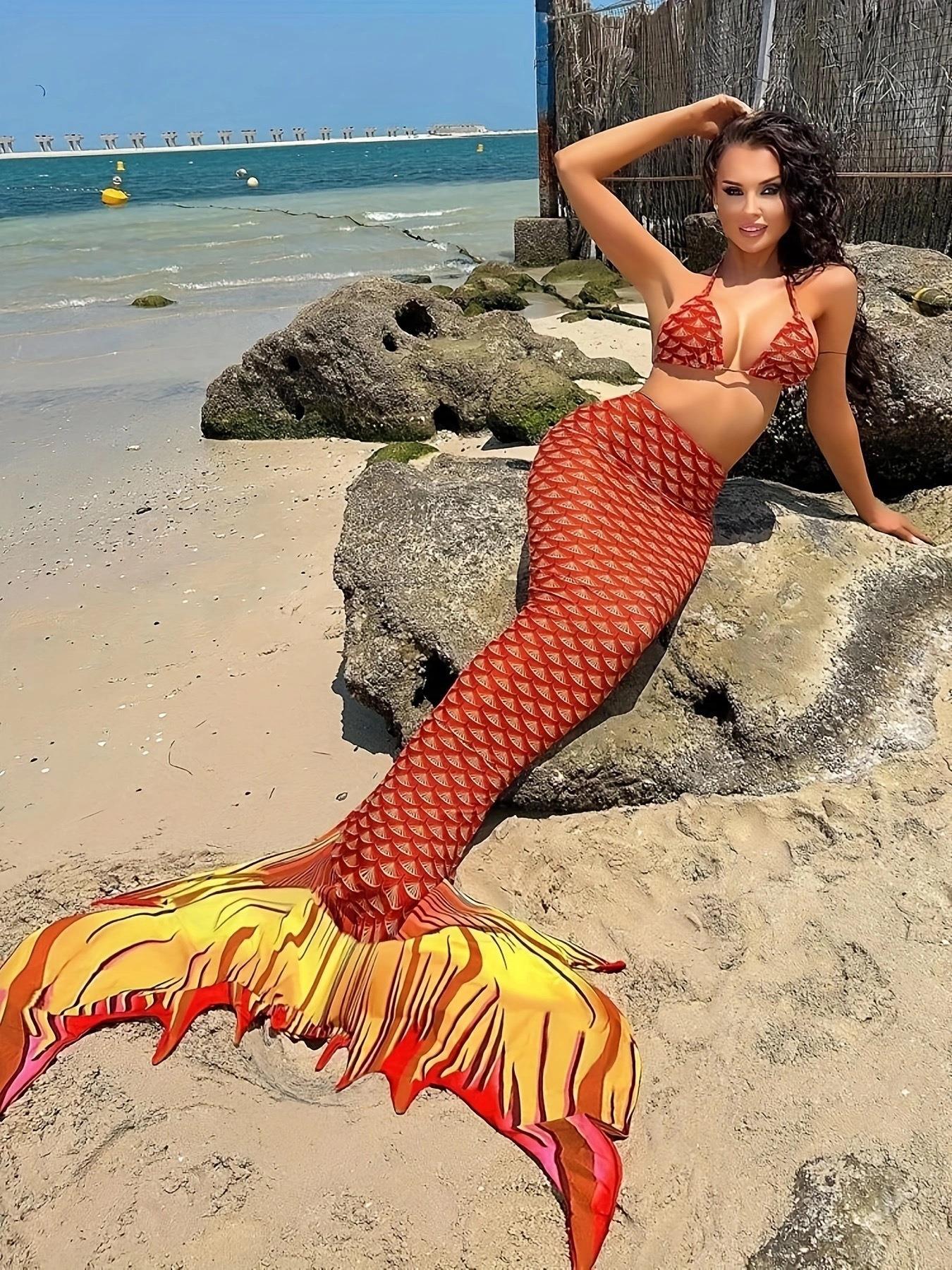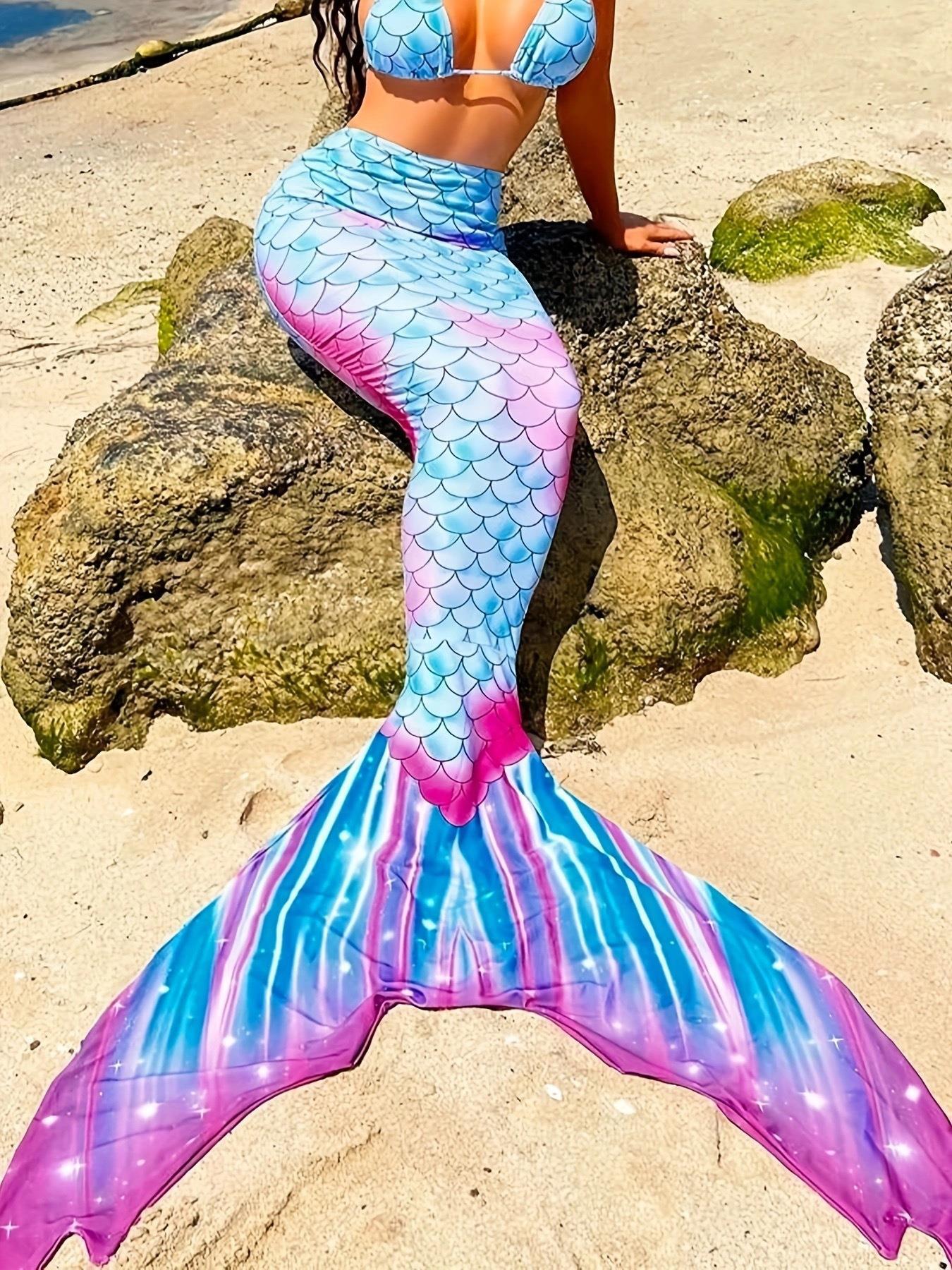 2024 Nueva Falda de Sirena Adulto Bikini Verano Europeo y Americano Tres Piezas Cola de Pez Cuello Halter Traje de Baño Sexy