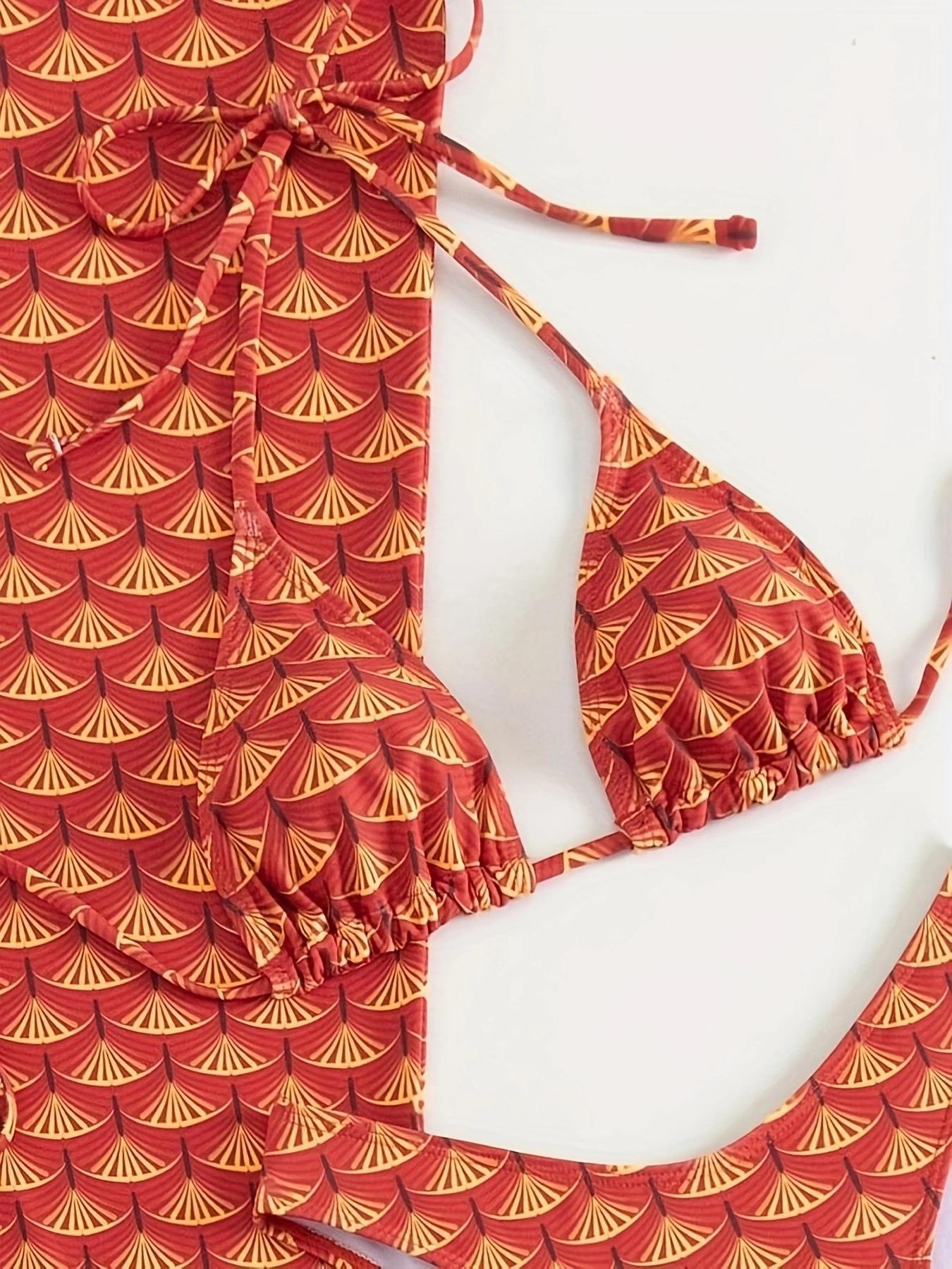 2023 Nuevo Traje de Baño AliExpress Estampado con Cordones Copa Triángulo Malla Sexy Bikini Traje de Baño Conjunto de Tres Piezas Venta al por Mayor